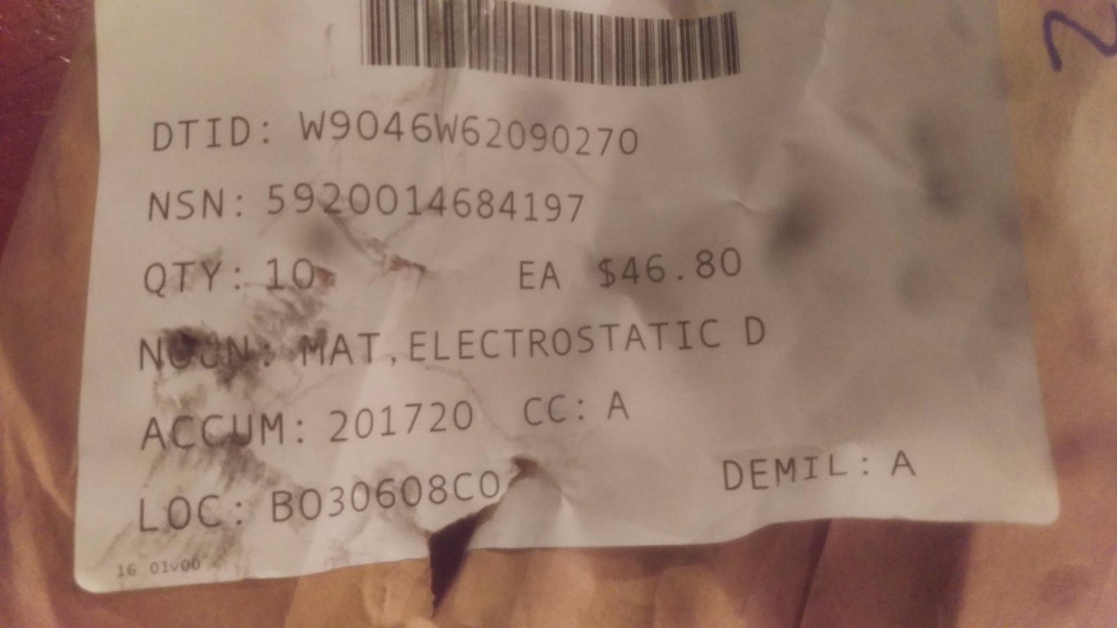 MIL-SPEC EMP Proof Electromagnetique Antistatic Mat Workstation Prepper 10 "x 23" Les taches proviennent de ma camera stupide. Ca s'est juste casse. Tapis propre. Ceci est ramasse lors d'une vente aux encheres Govt. Je ne sais pas pour quoi vous pouvez utiliser cela. Anti-statique - utilise dans les reservoirs
