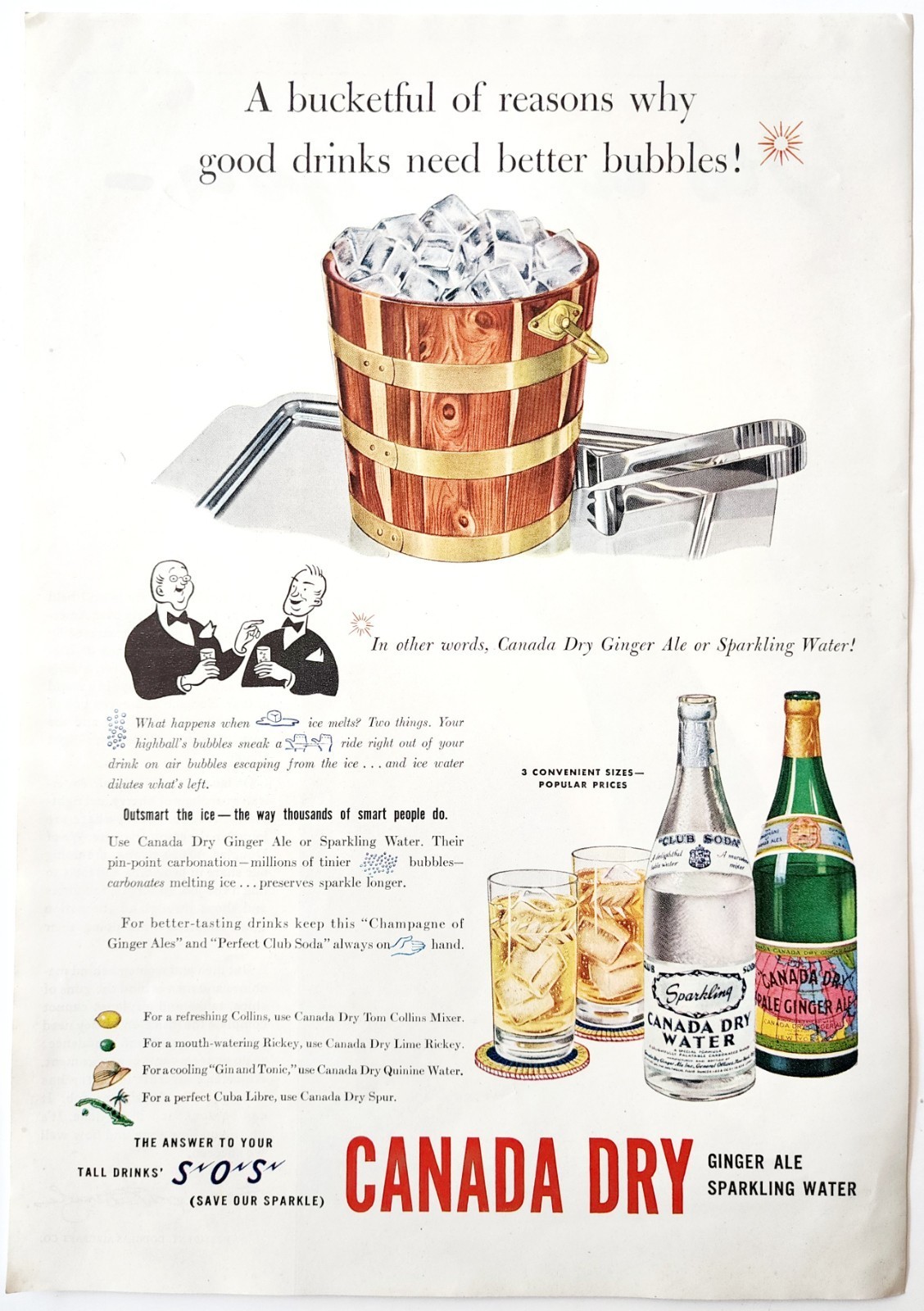 1942 Canada Dry Sparkling Water Ginger Ale Advertisement Soda Pop E90G1