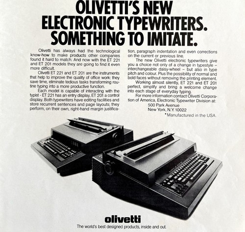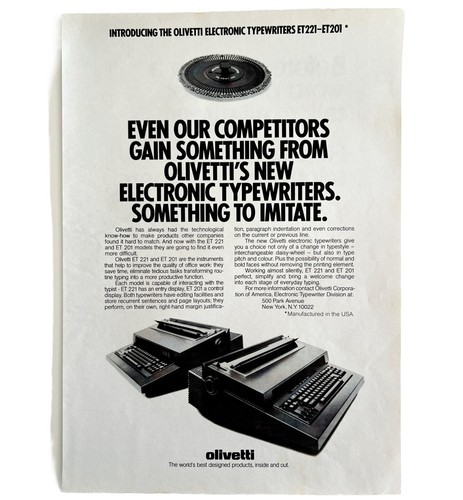 Olivetti ET 221 Typewriter 1979 Advertisement Vintage Office Technology DWKK7