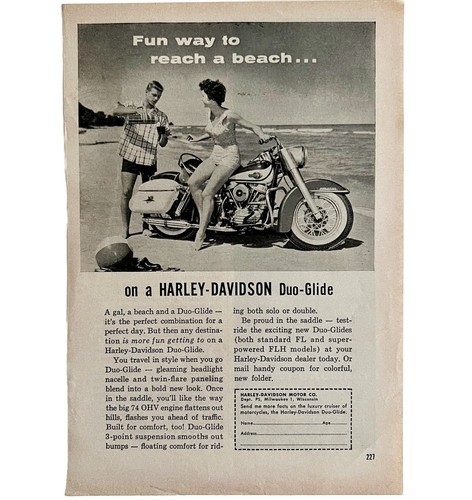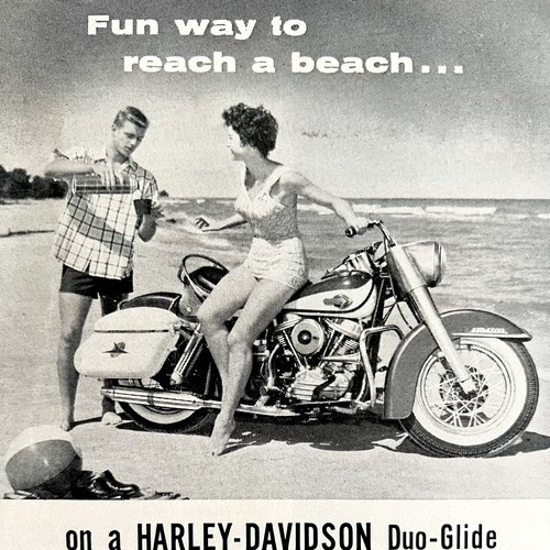Harley Davidson Duo Glide Advertisement 1960 Motorcycle Tag The Beach LGBinHD2