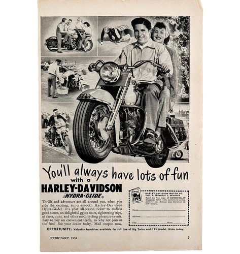 Harley Davidson Hydra Glide Advertisement 1951 Motorcycle Lots Of Fun LGBinHD2