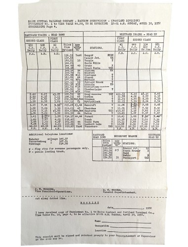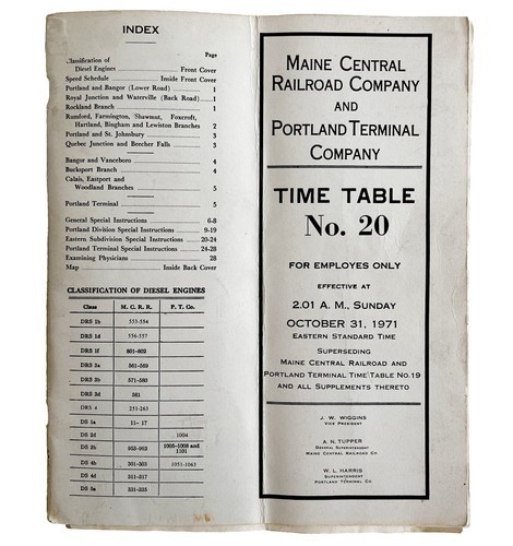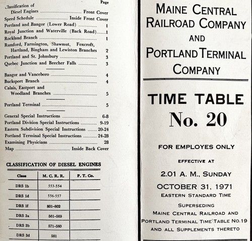 Maine Central Railroad Portland Terminal Co Employee Time Table 1971 DWY1B