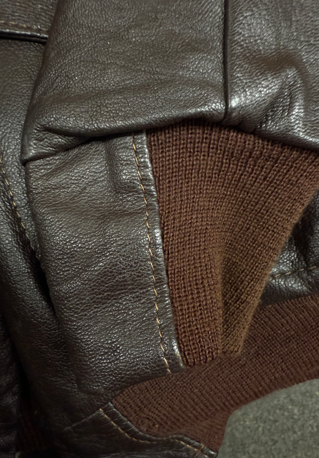 Excellent vintage condition. No flaws noted. Shearling interior is super clean, leather is beautifully broken in, zipper works smoothly.