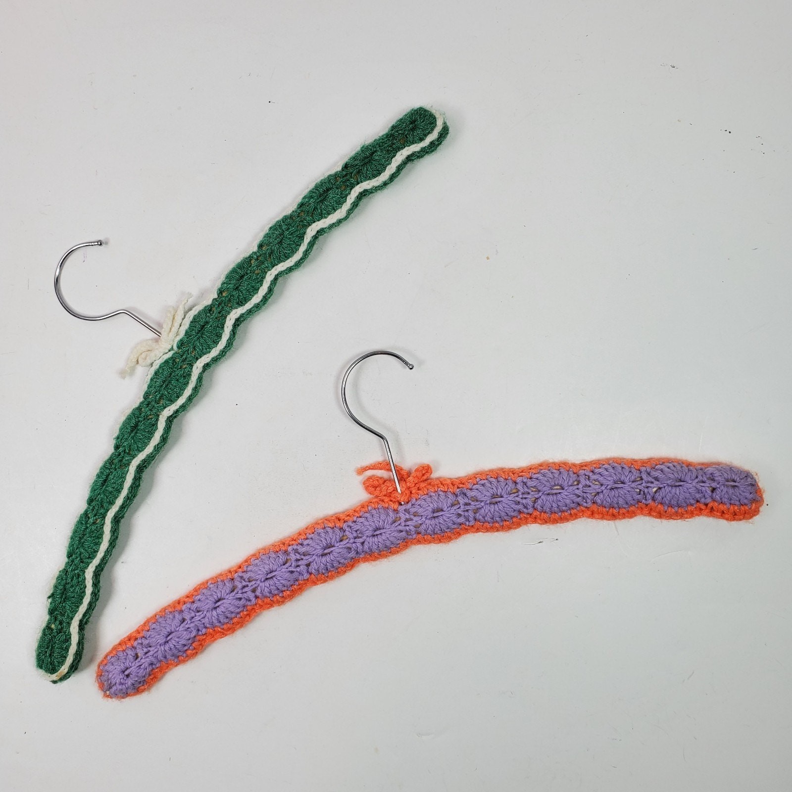 Vintage Crochet Wire Wood Clothes Hangers SET OF 2 Multicolor