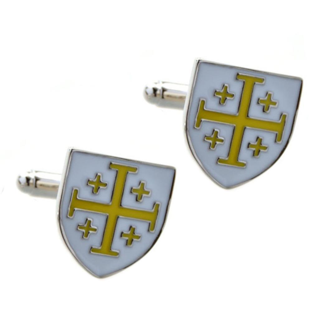 KNIGHTS TEMPLAR CUFFLINKS White Yellow Shield Freemasonry Masons NEW w GIFT BAG