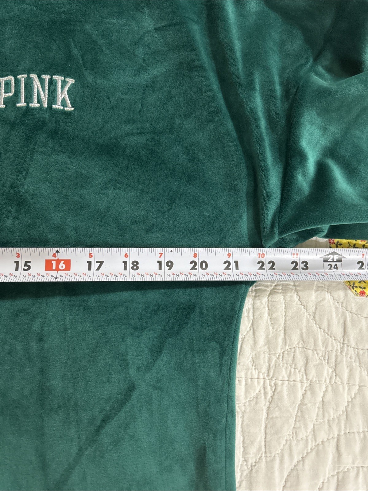 Victorias Secret PINK Varsity green Velour Sweatshirt Crew Neck Spirit Jersey