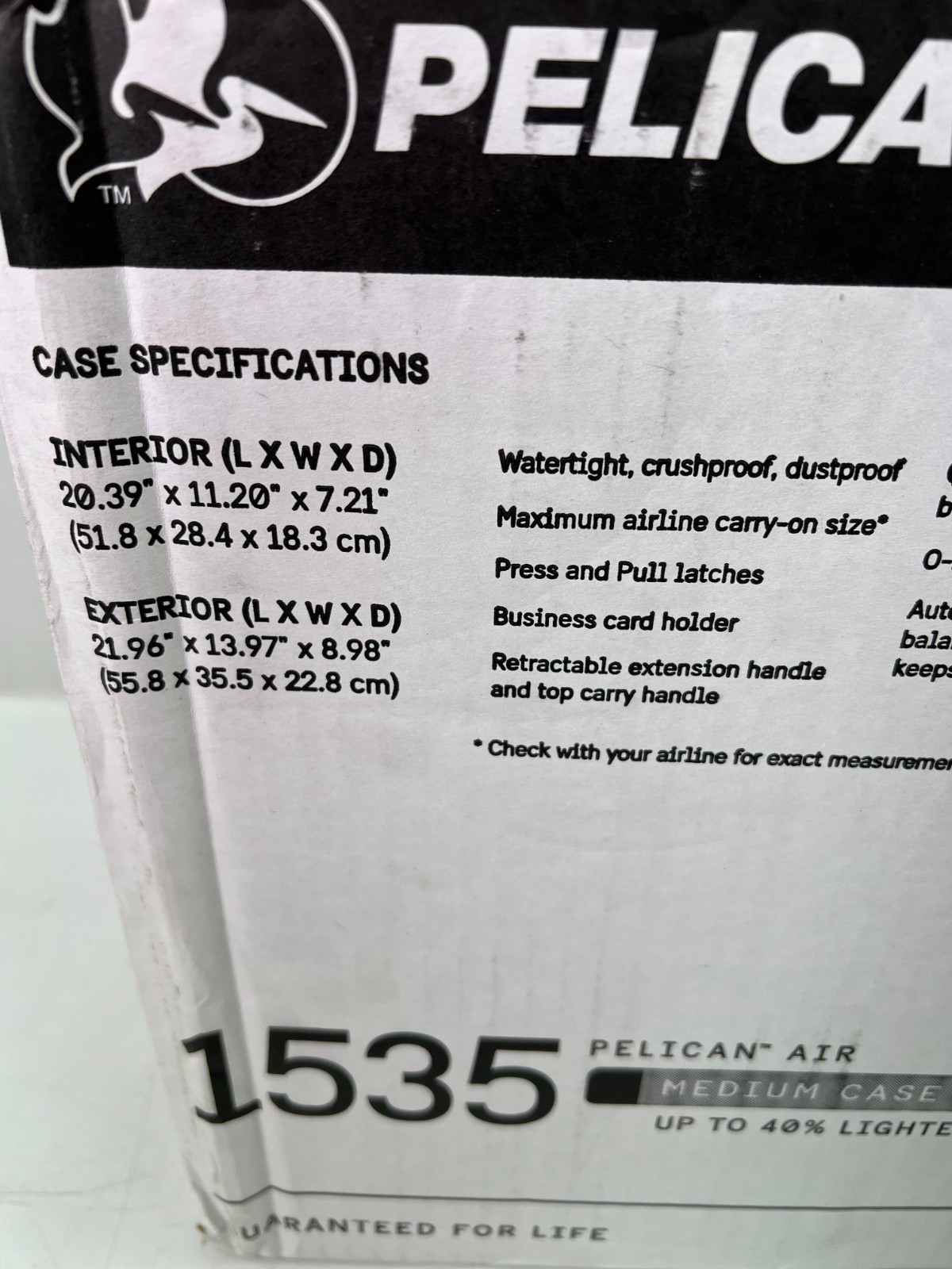 This Listing is for a NEW Pelican Air 1535 Wheeled Medium Case Check in Protector Case Waterproof.