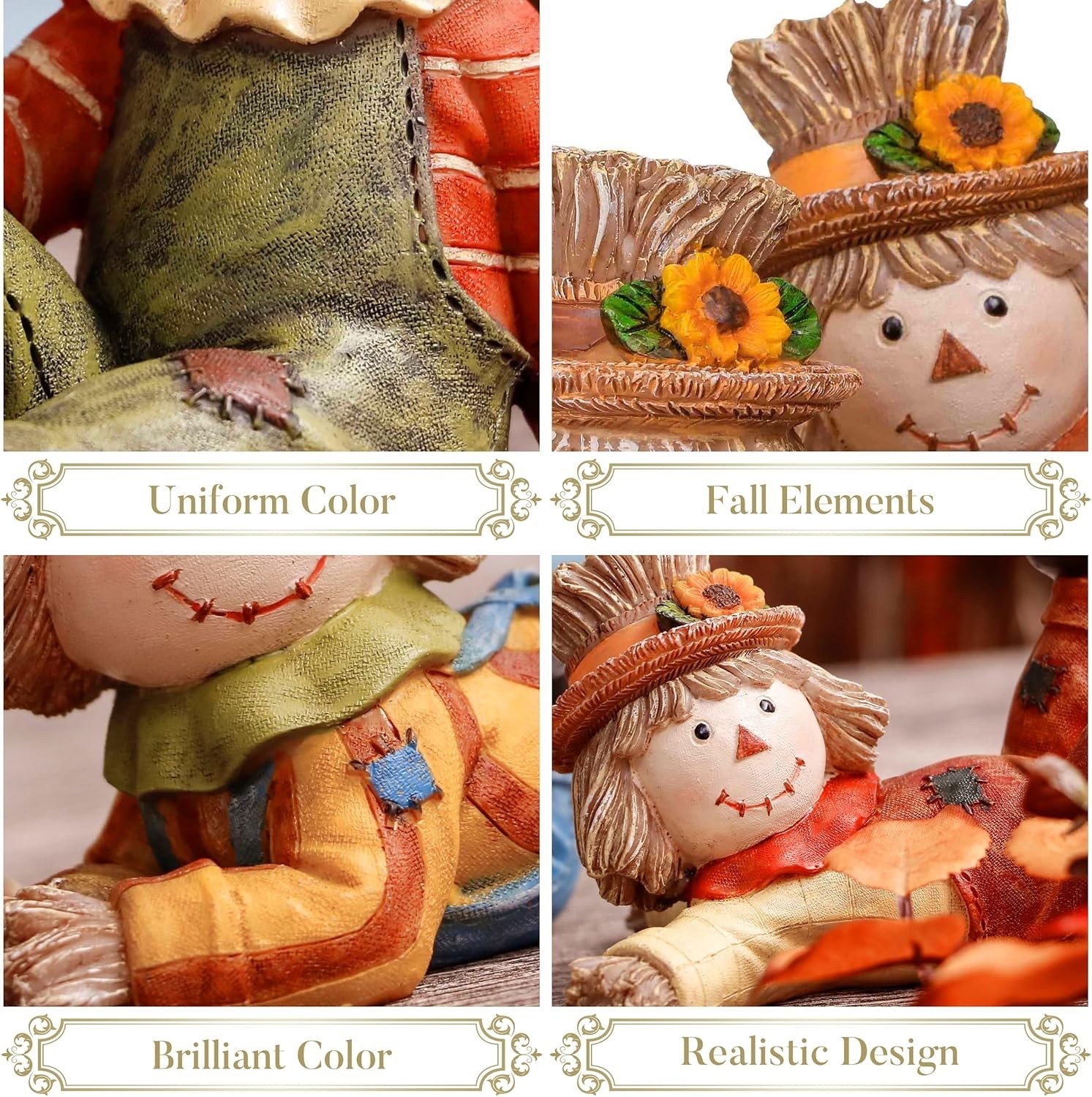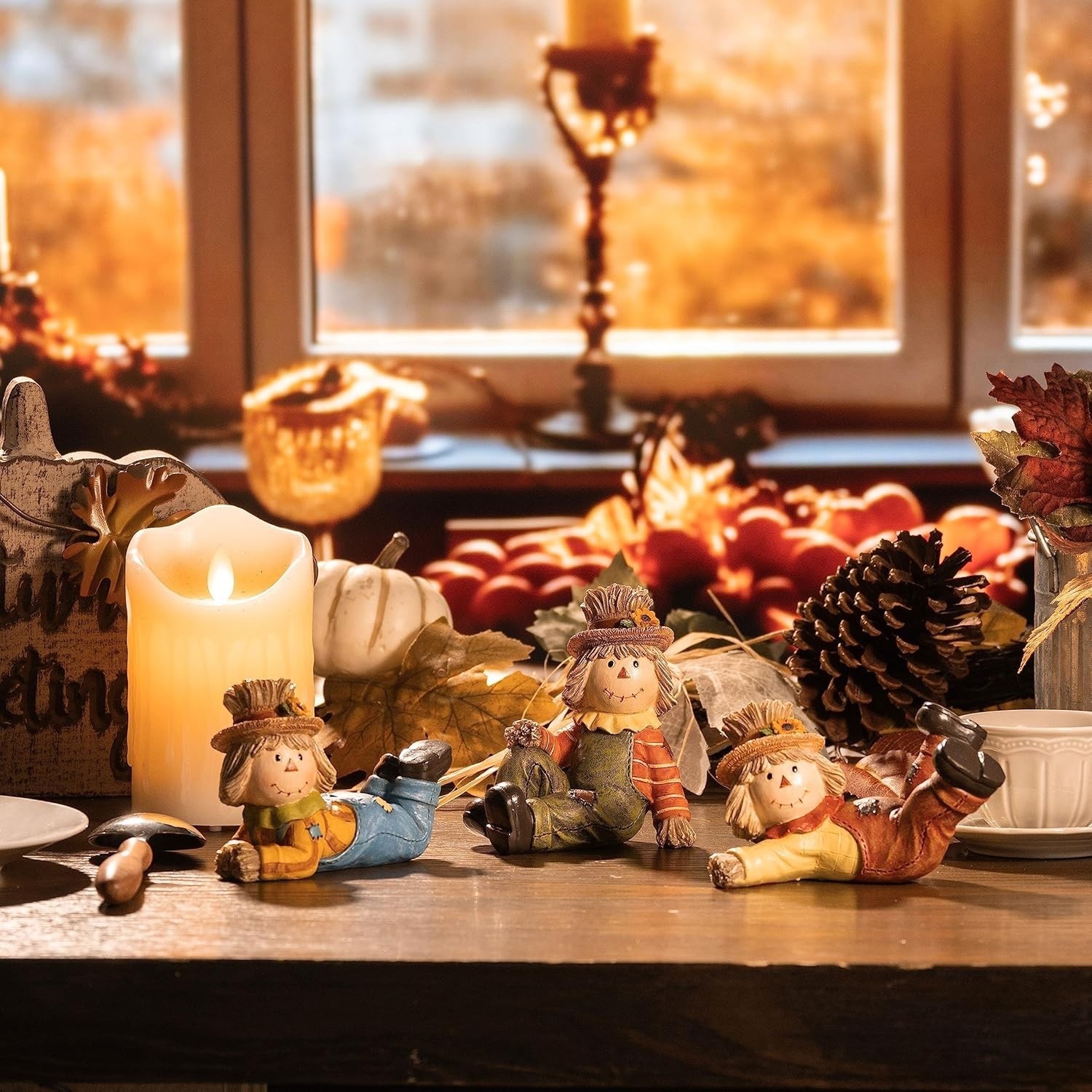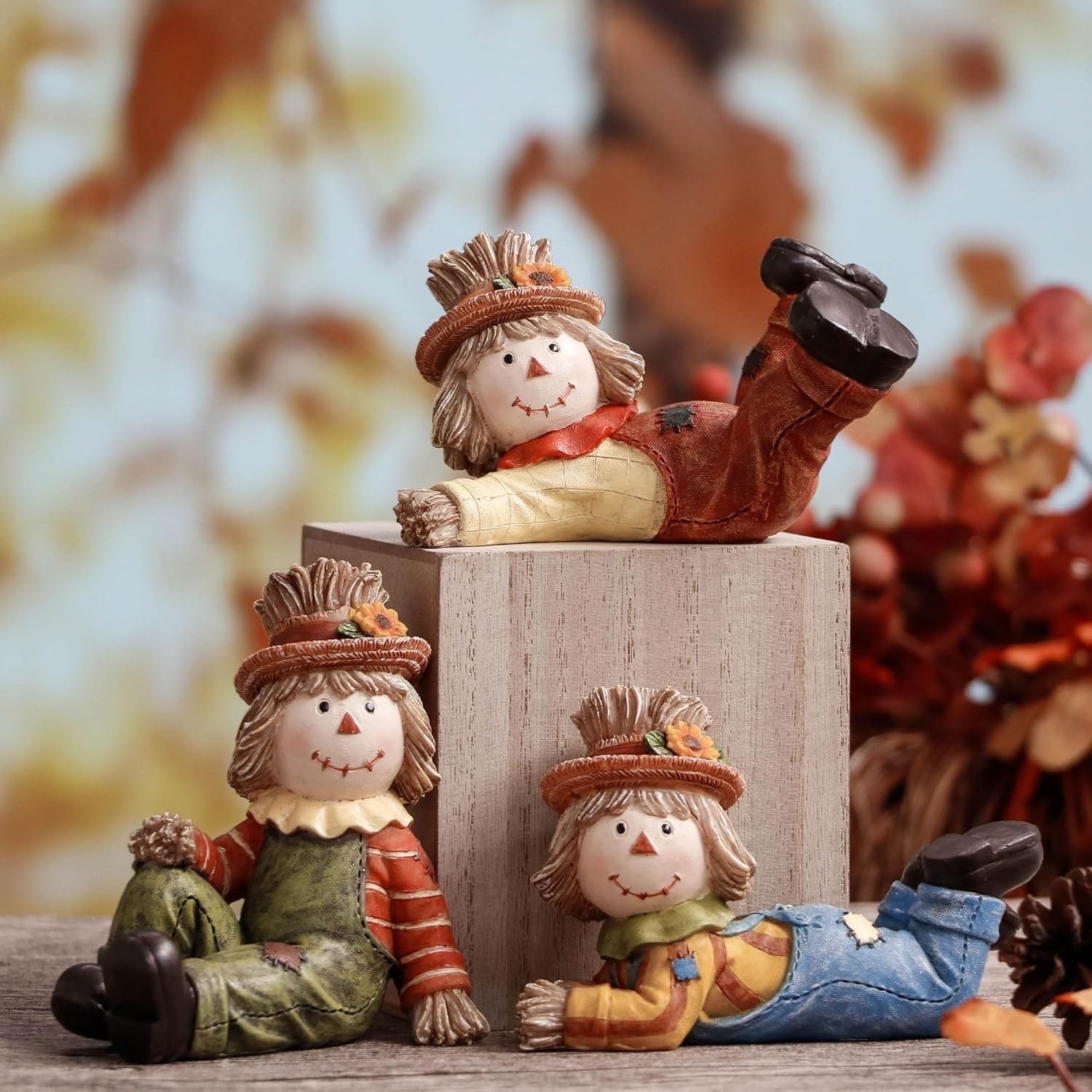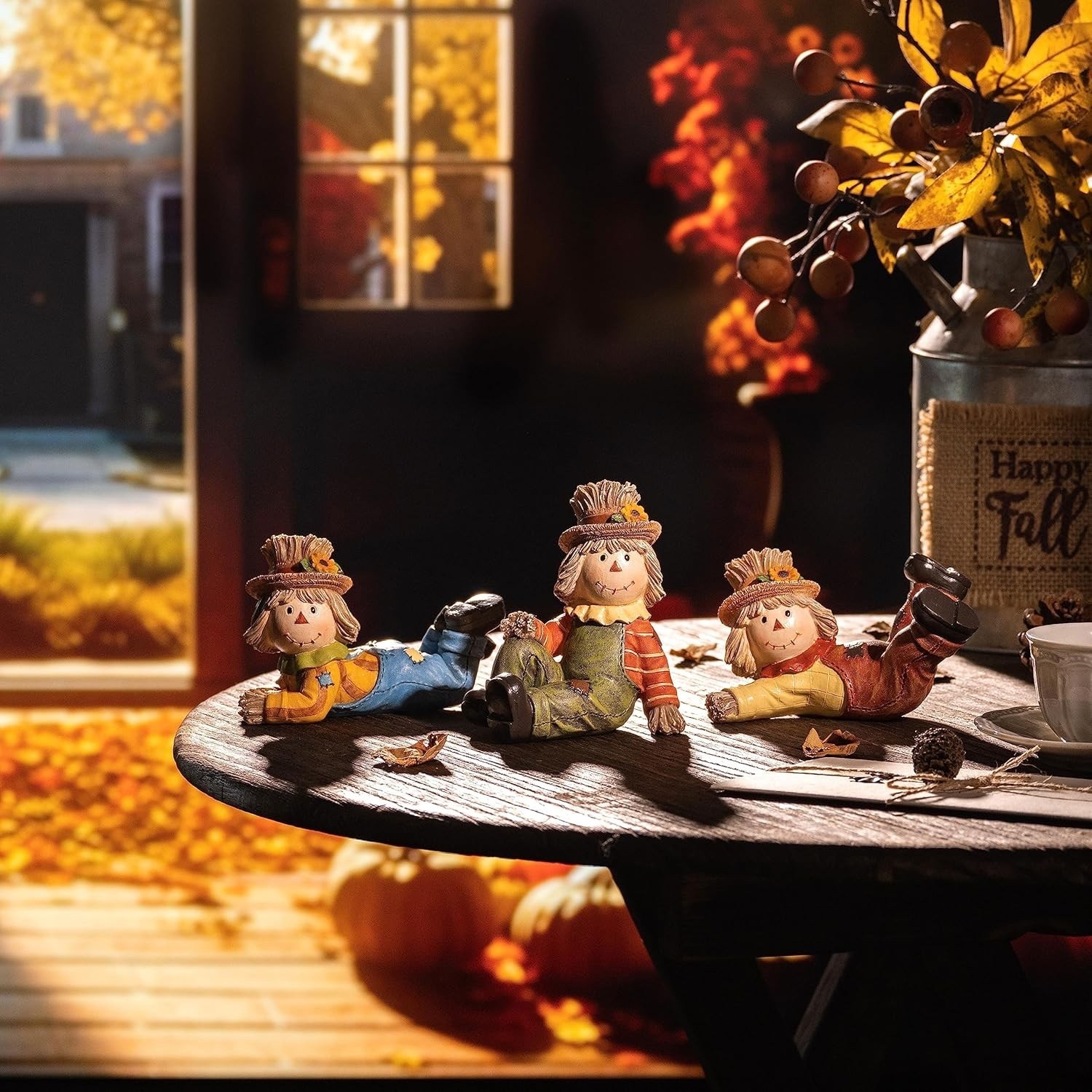 Set of 3 Fall Harvest Scarecrow Figurine Statue Thanksgiving Autumn Table Decor