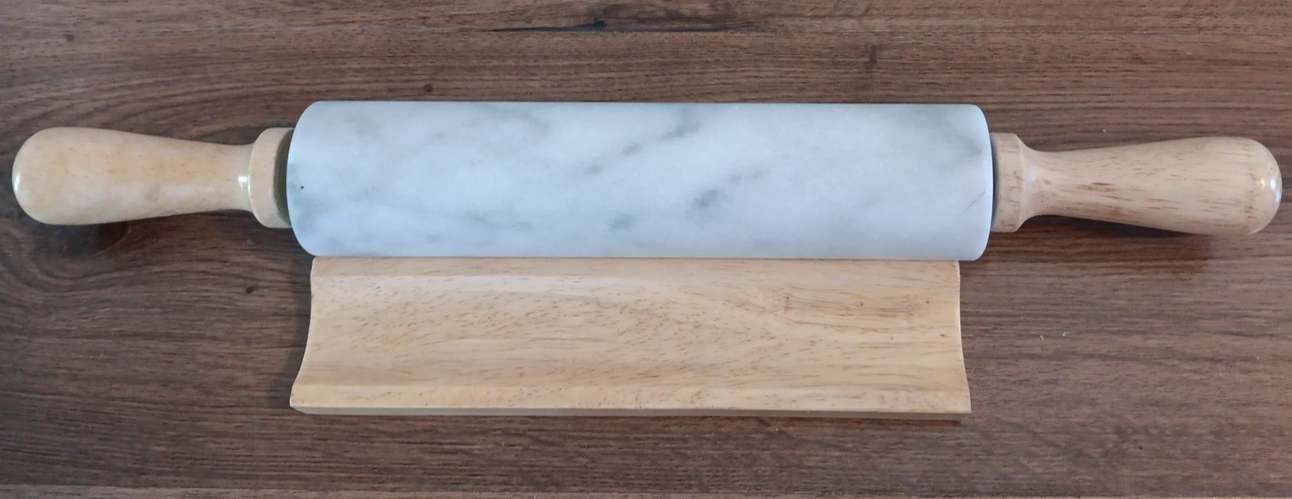 Marble Rolling Pin Wooden Handles & Wooden Storage Cradle