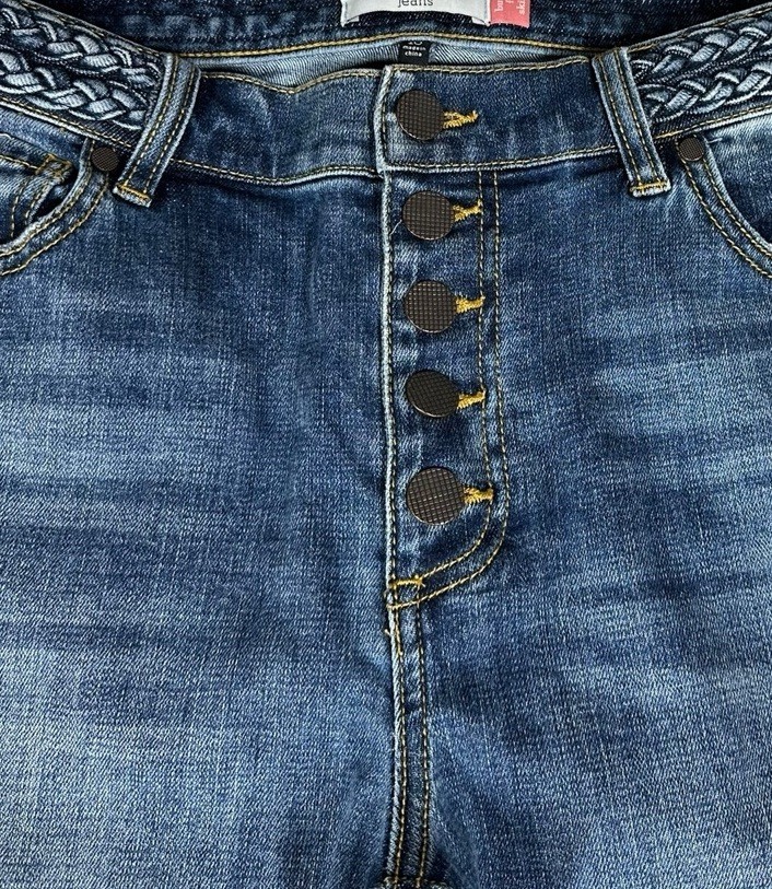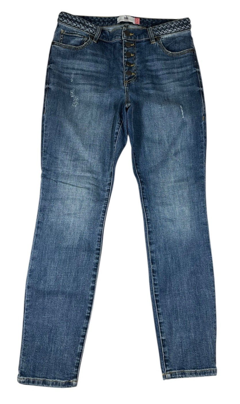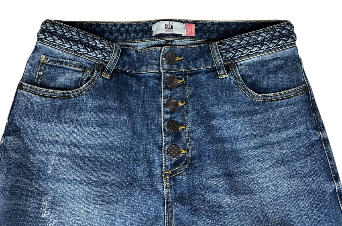 Cabi Mia Button Fly Skinny Jeans Braided Waist Womens Size 10 Stretch #5694