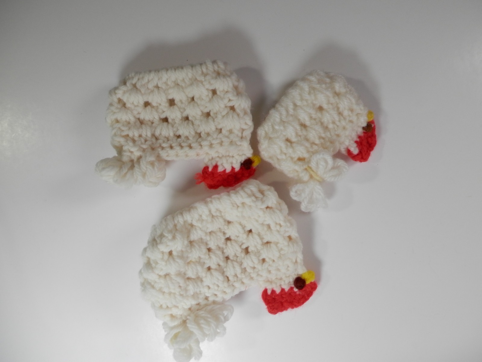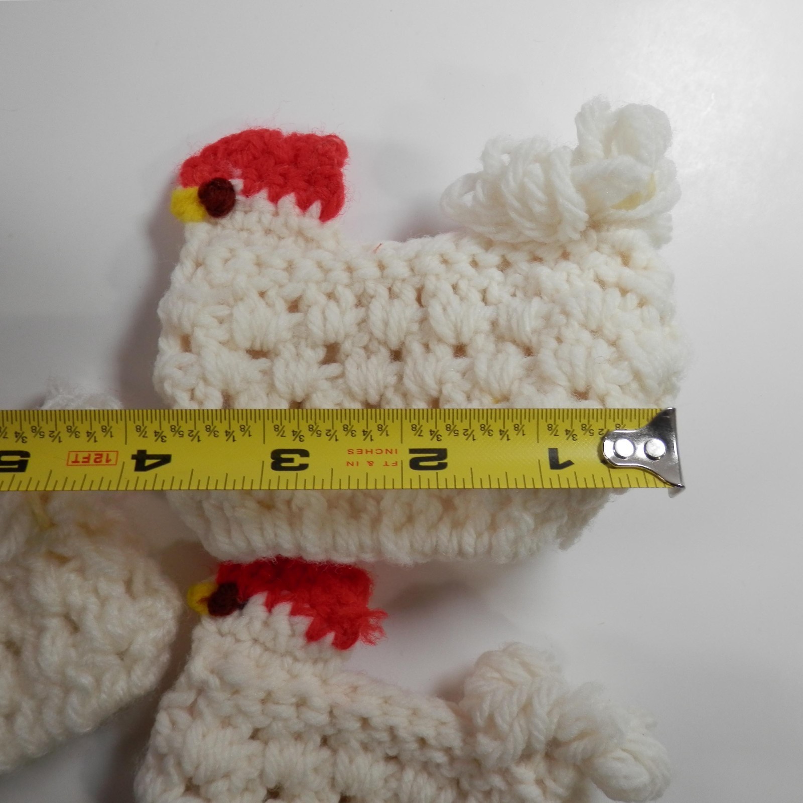 Vtg Handmade Crochet Knit White Chicken Plush Cozies Farm Easter Cottage 4"