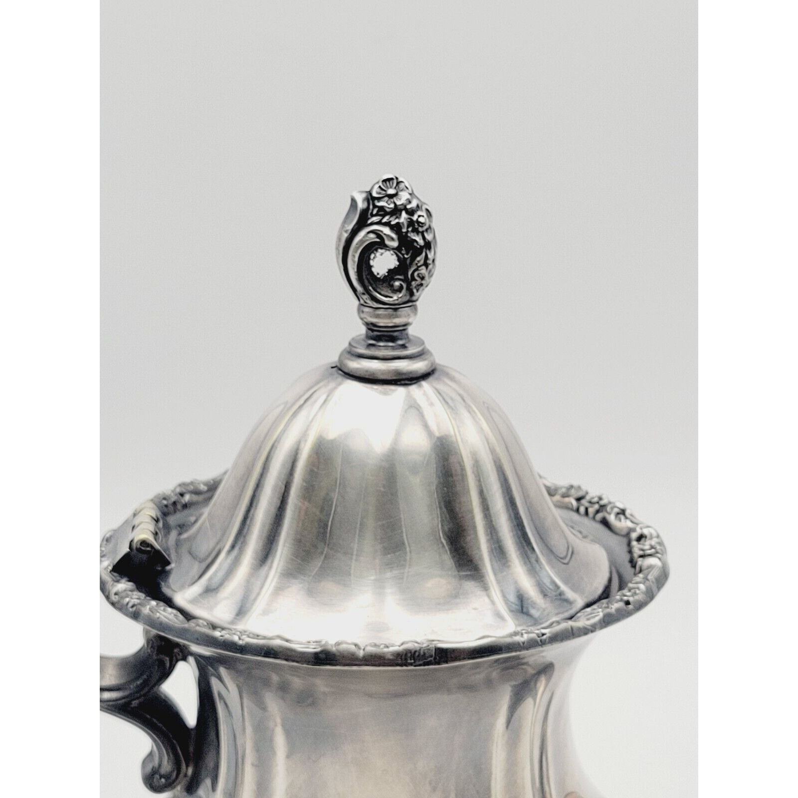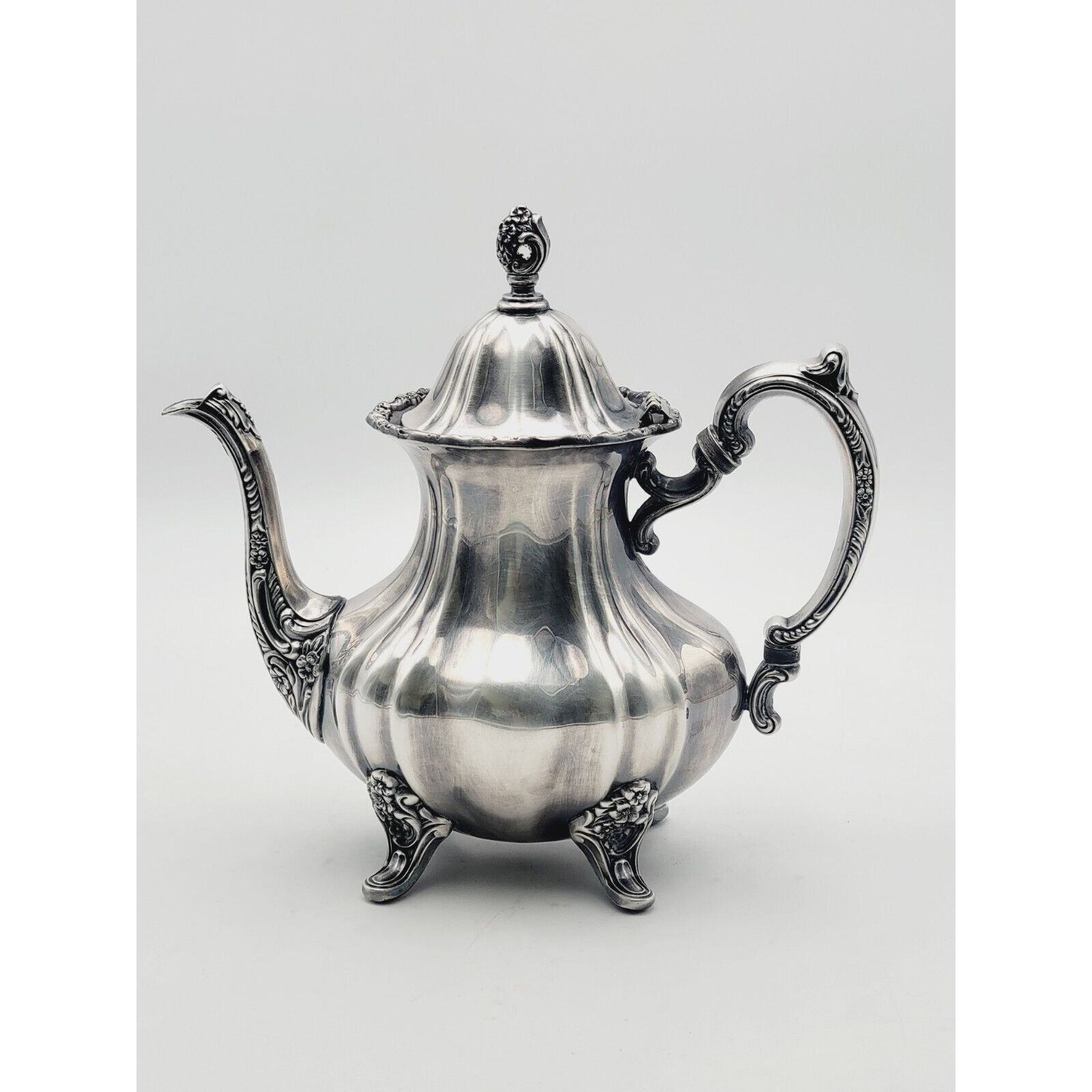 This vintage silverplate teapot is a beautiful addition to any collection. Made by Poole Silver, it features the Lancaster Rose pattern and stands at 10 inches tall. The Victorian style teapot is composed of high-quality silver and is perfect for any tea service setting. The intricate design and fine craftsmanship make it a valuable item for collectors and enthusiasts alike.