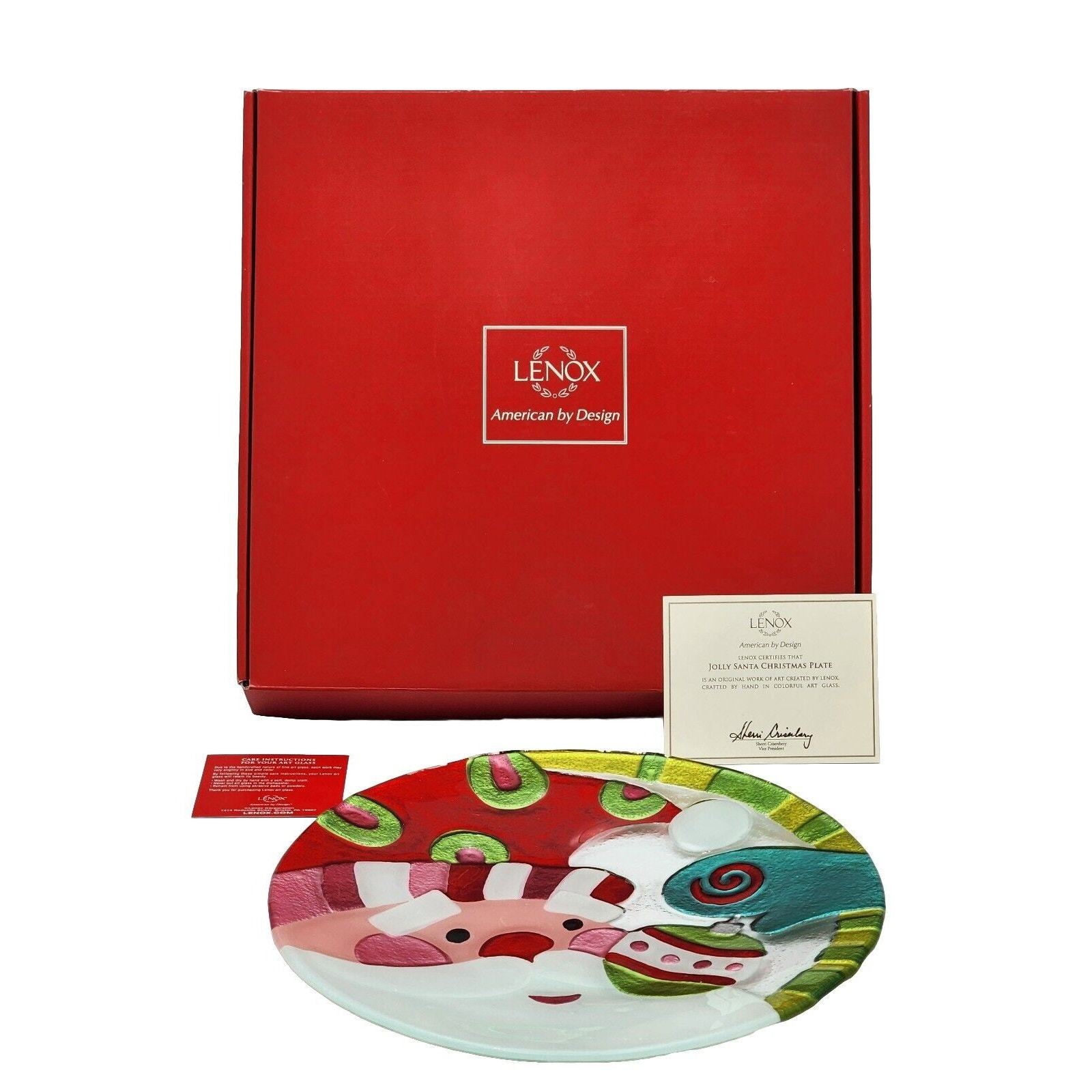 Lenox Jolly Santa Christmas Plate Glass Fusion Hand Created VTG In Original Box