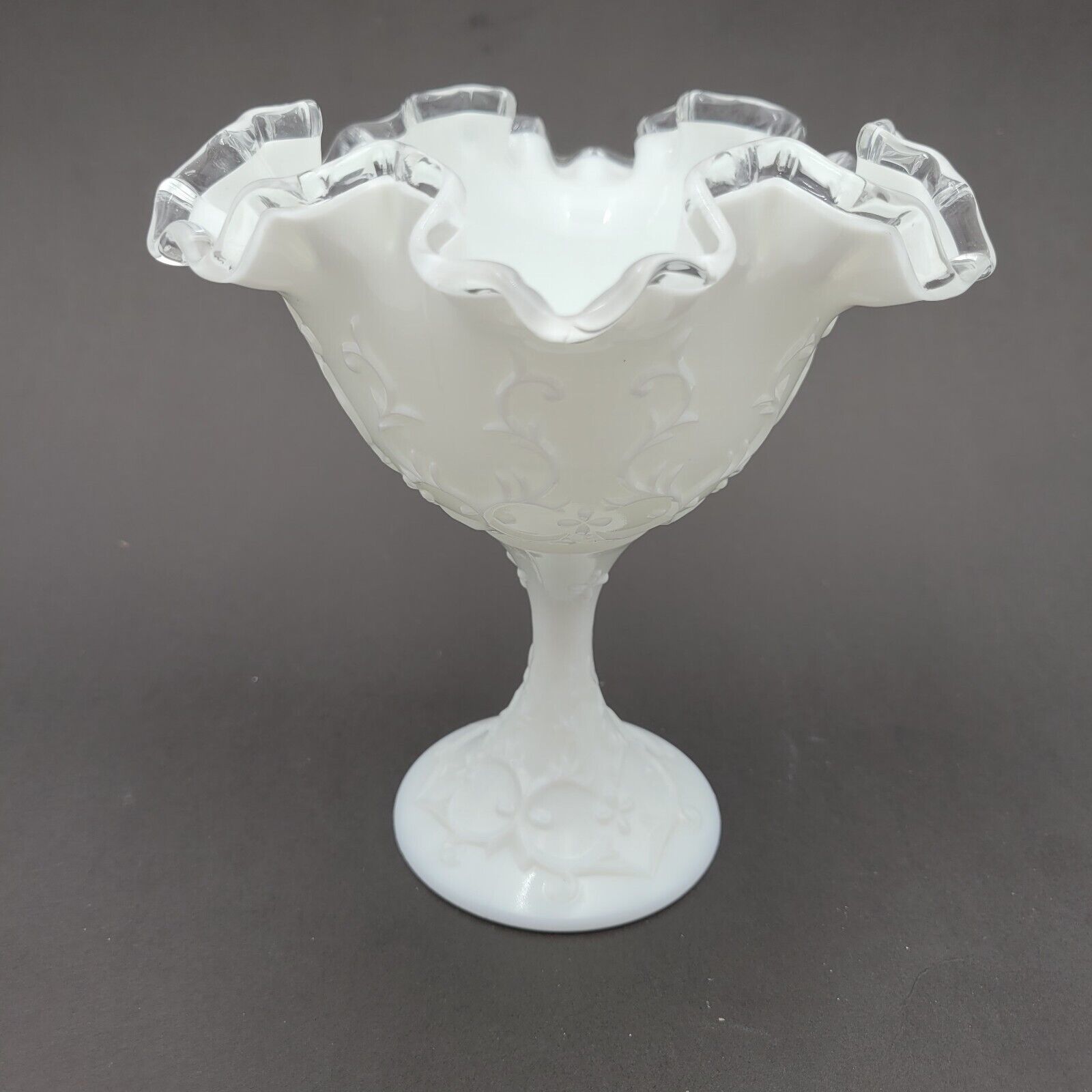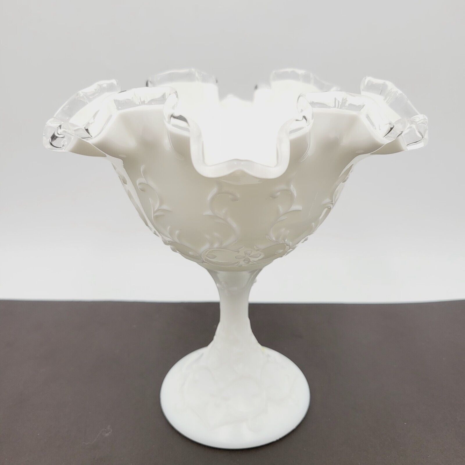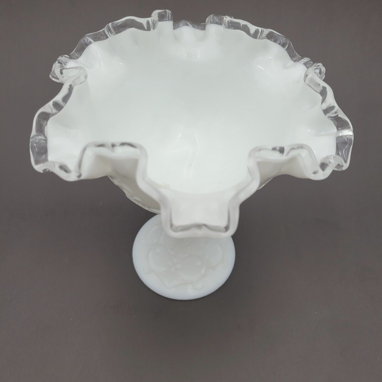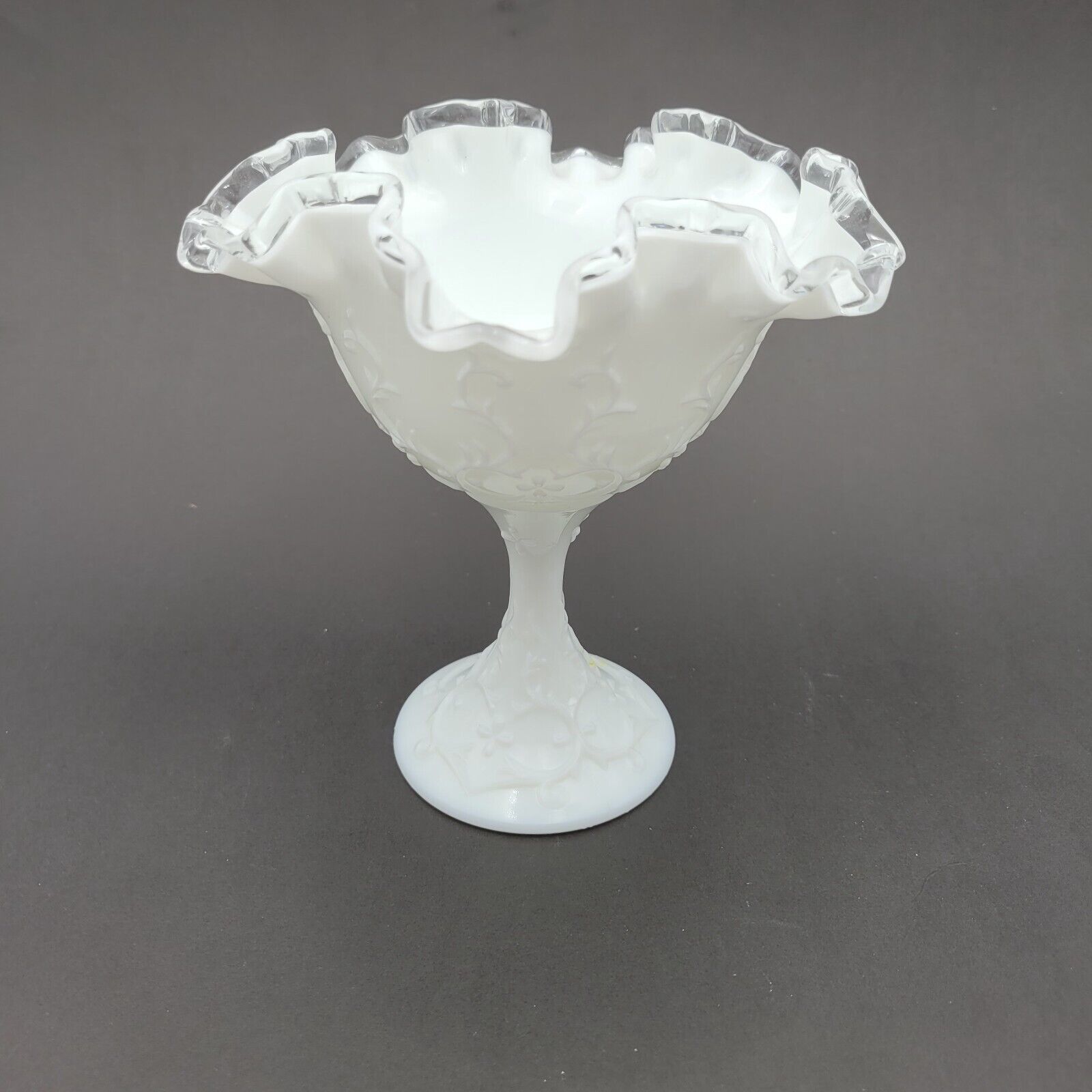 Fenton Silver Crest Spanish Lace White Milk Glass Compote Candy Dish Vintage