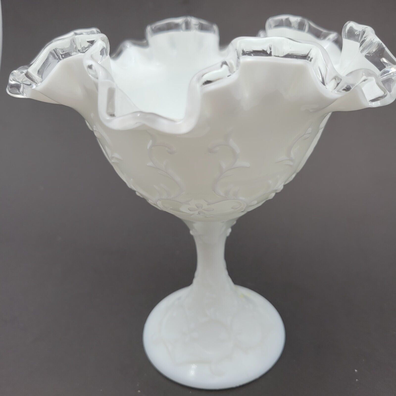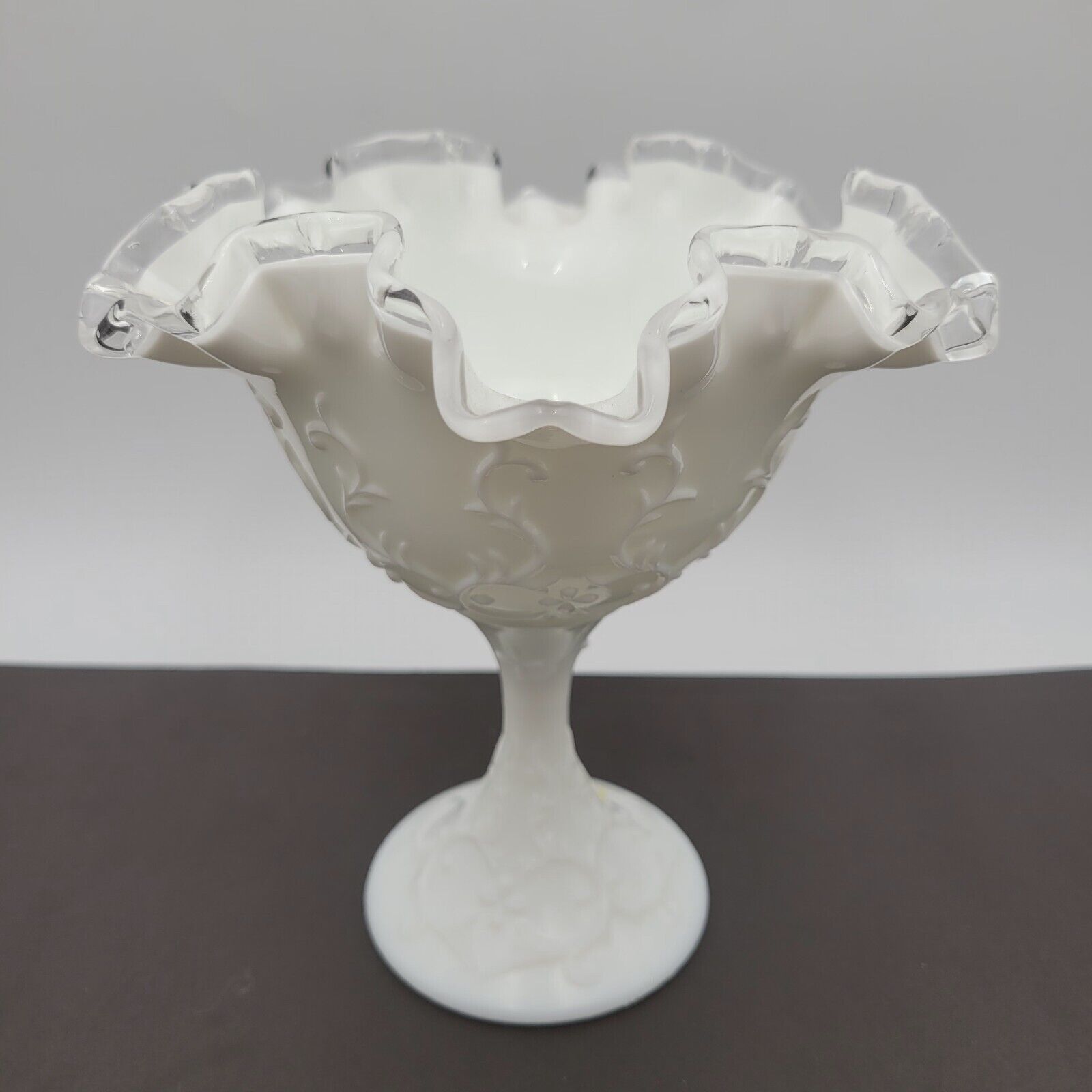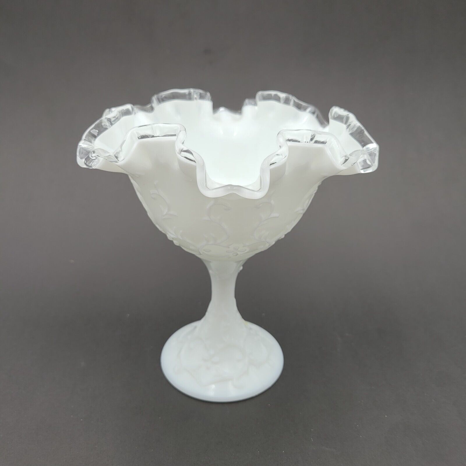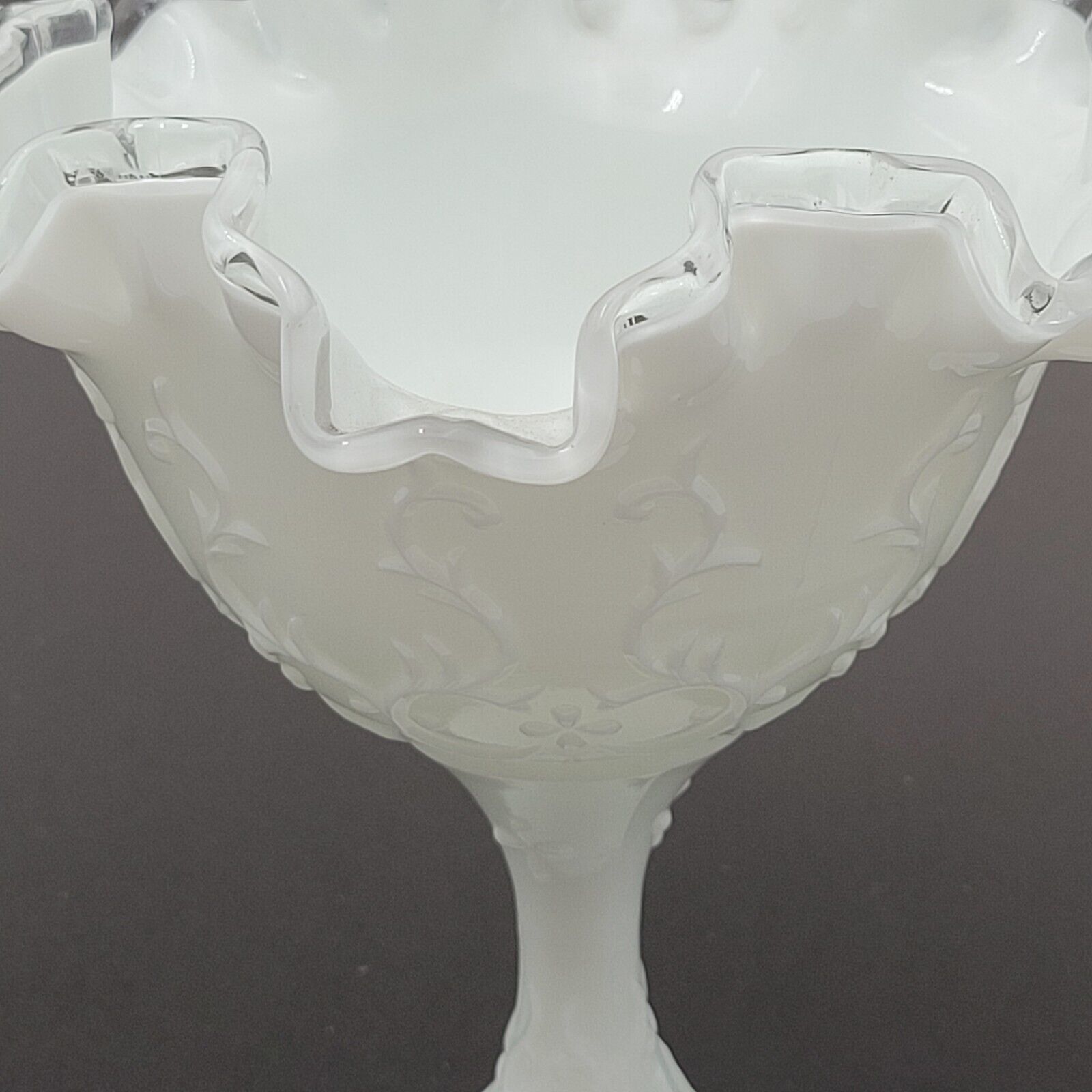 Fenton Silver Crest Spanish Lace White Milk Glass Compote Candy Dish Vintage