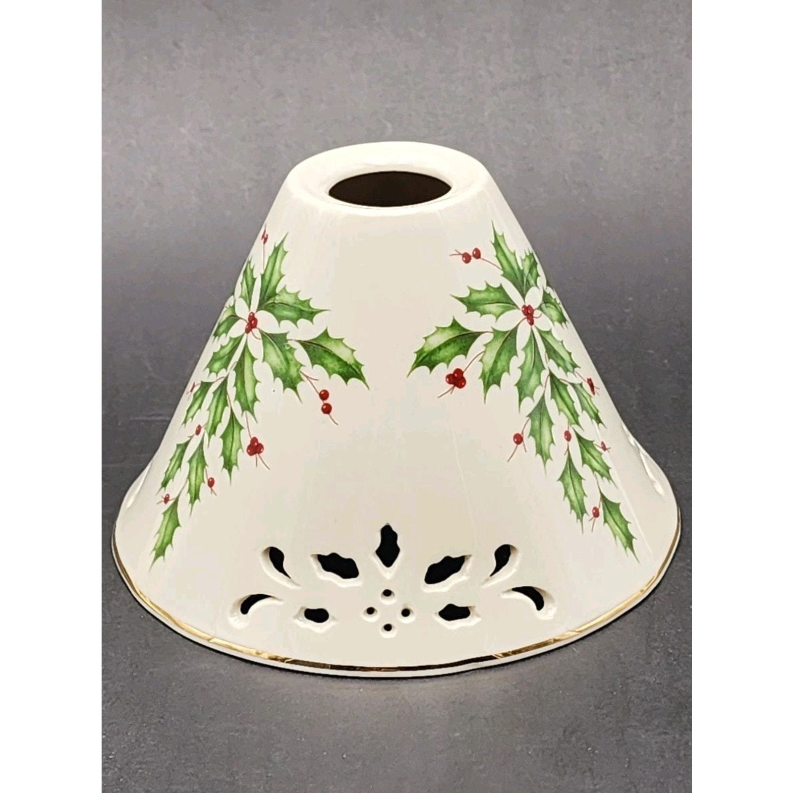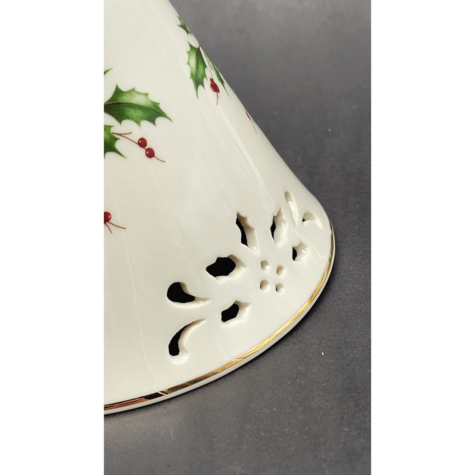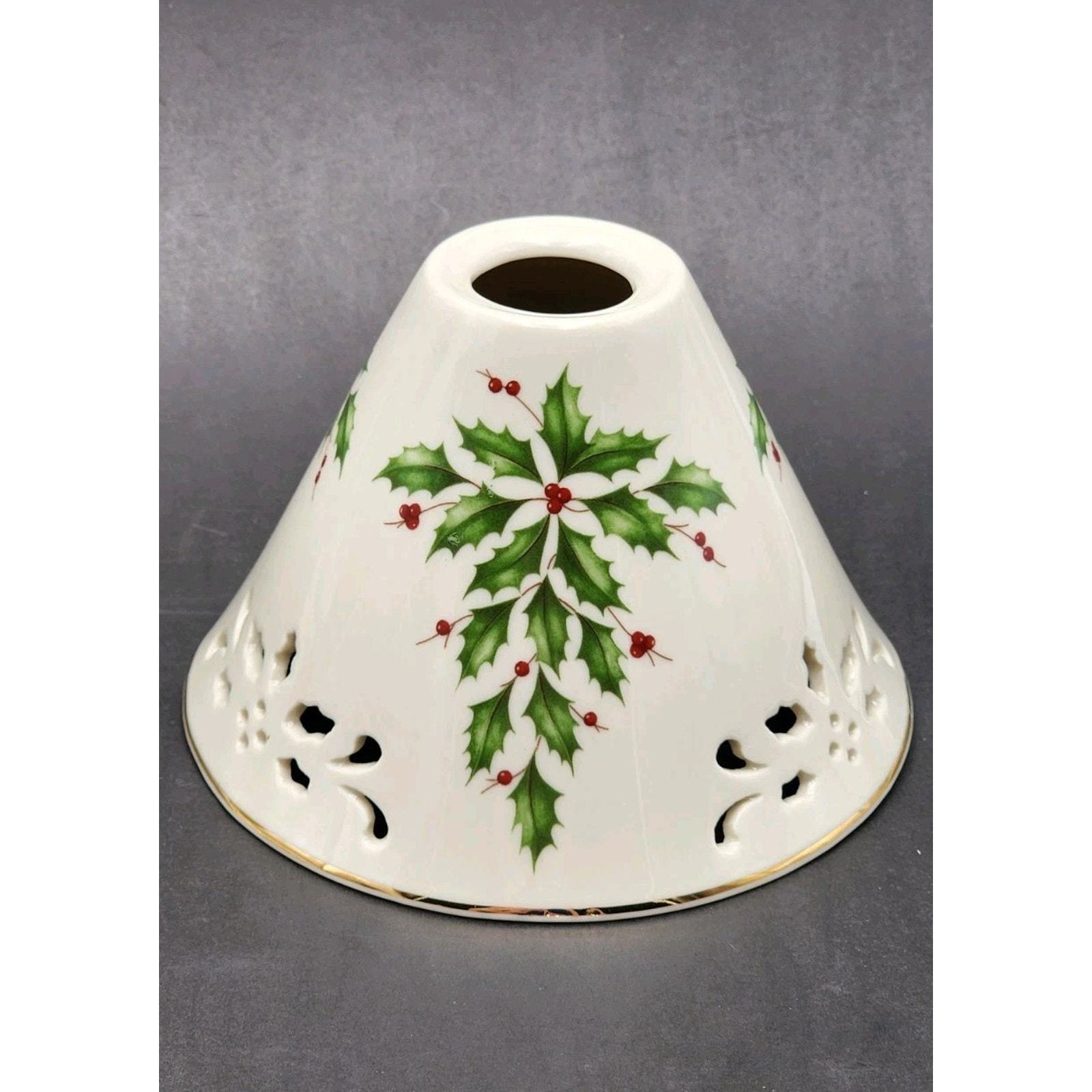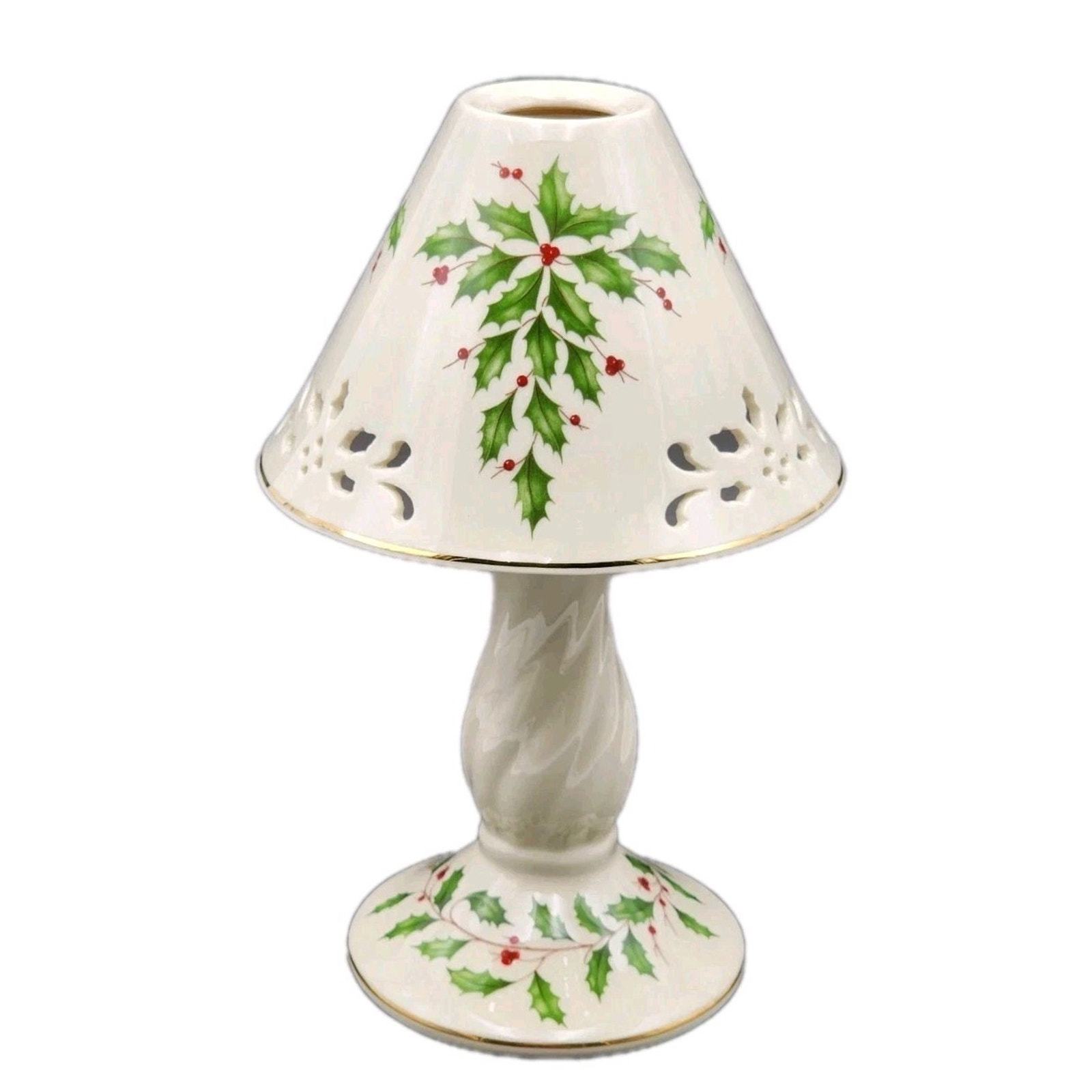 Lenox Holiday Holly Porcelain Tea Light Candle Lamp Pierced Shade Christmas Gold