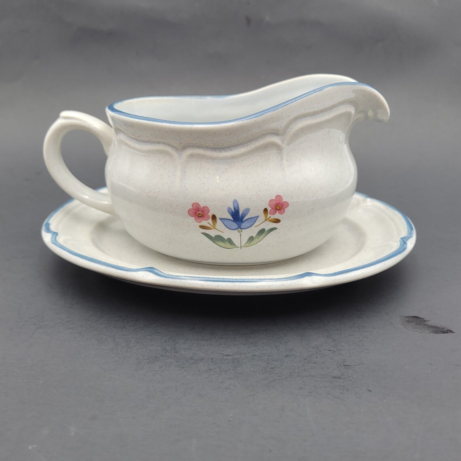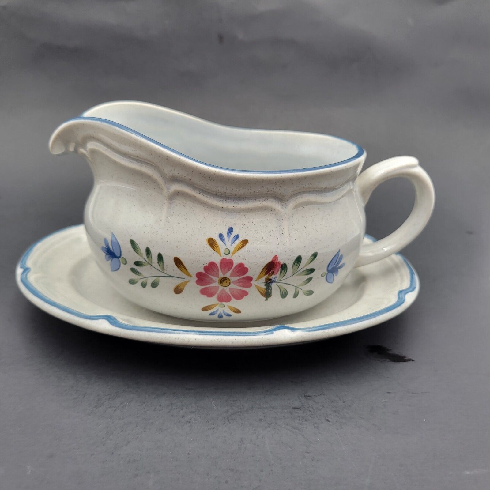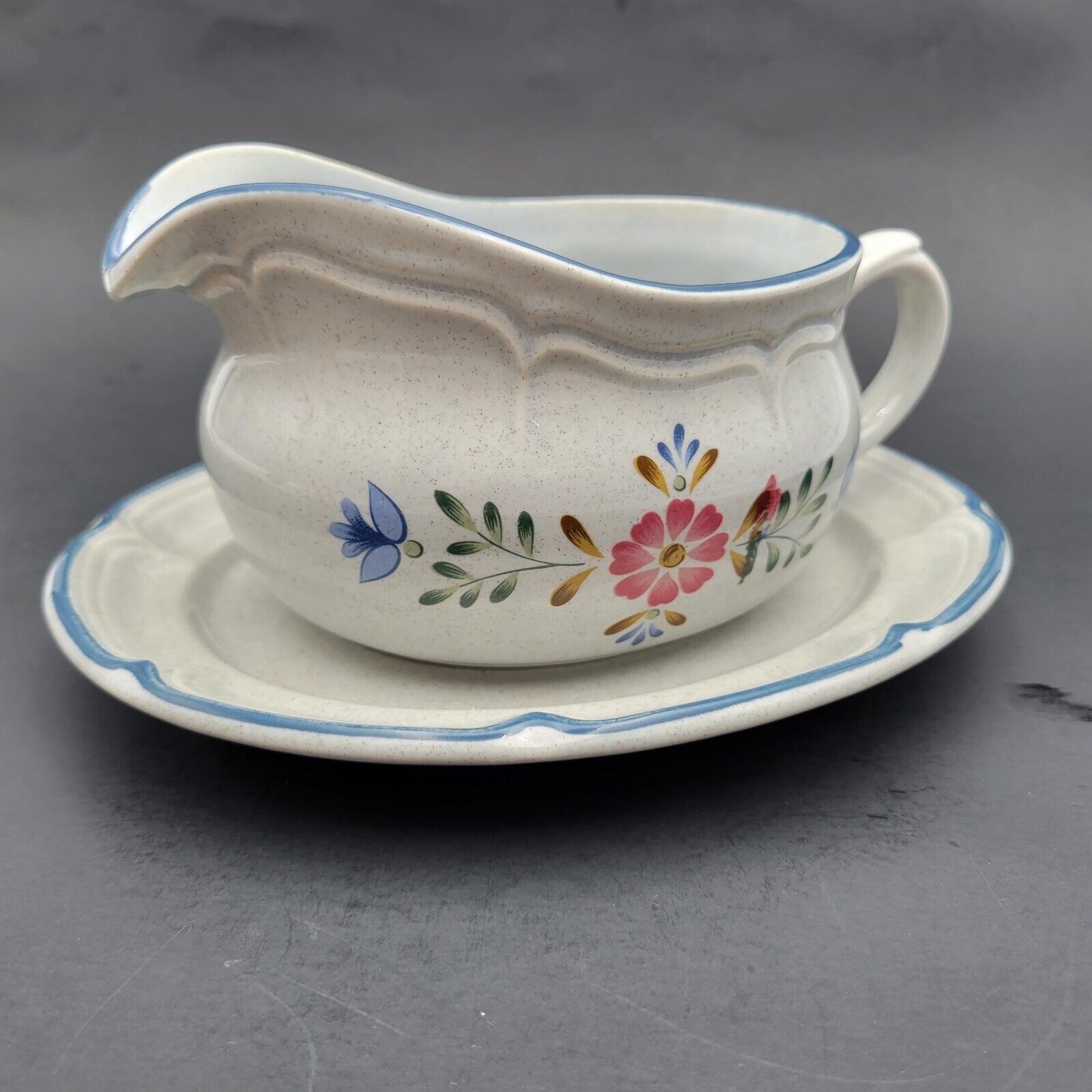 International Stoneware Gravy Boat With Under Plate Heritage Patchwork vtg Japan