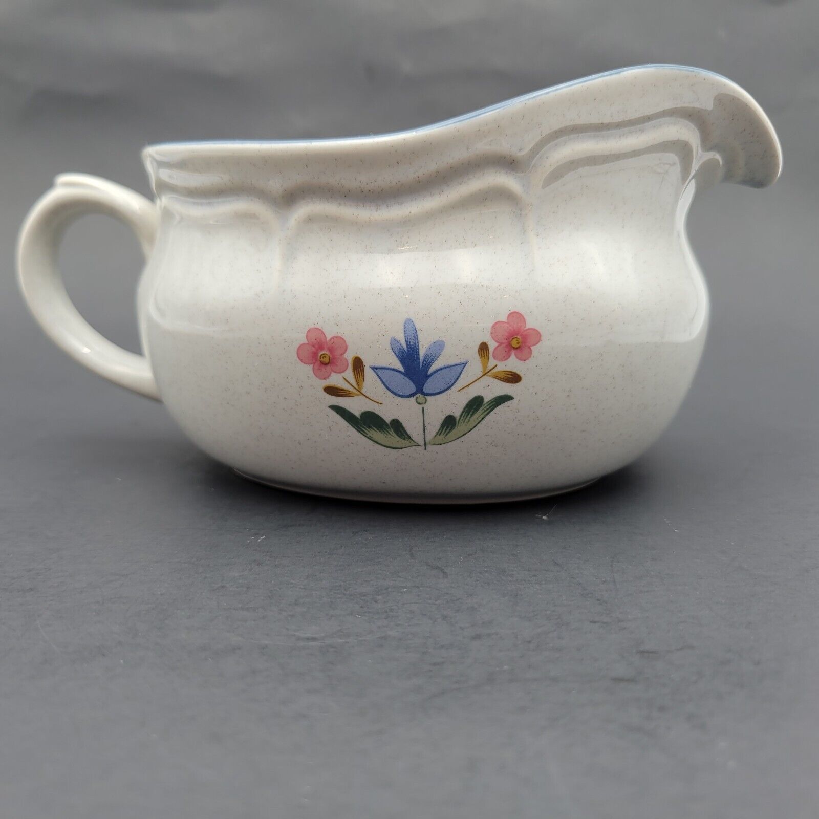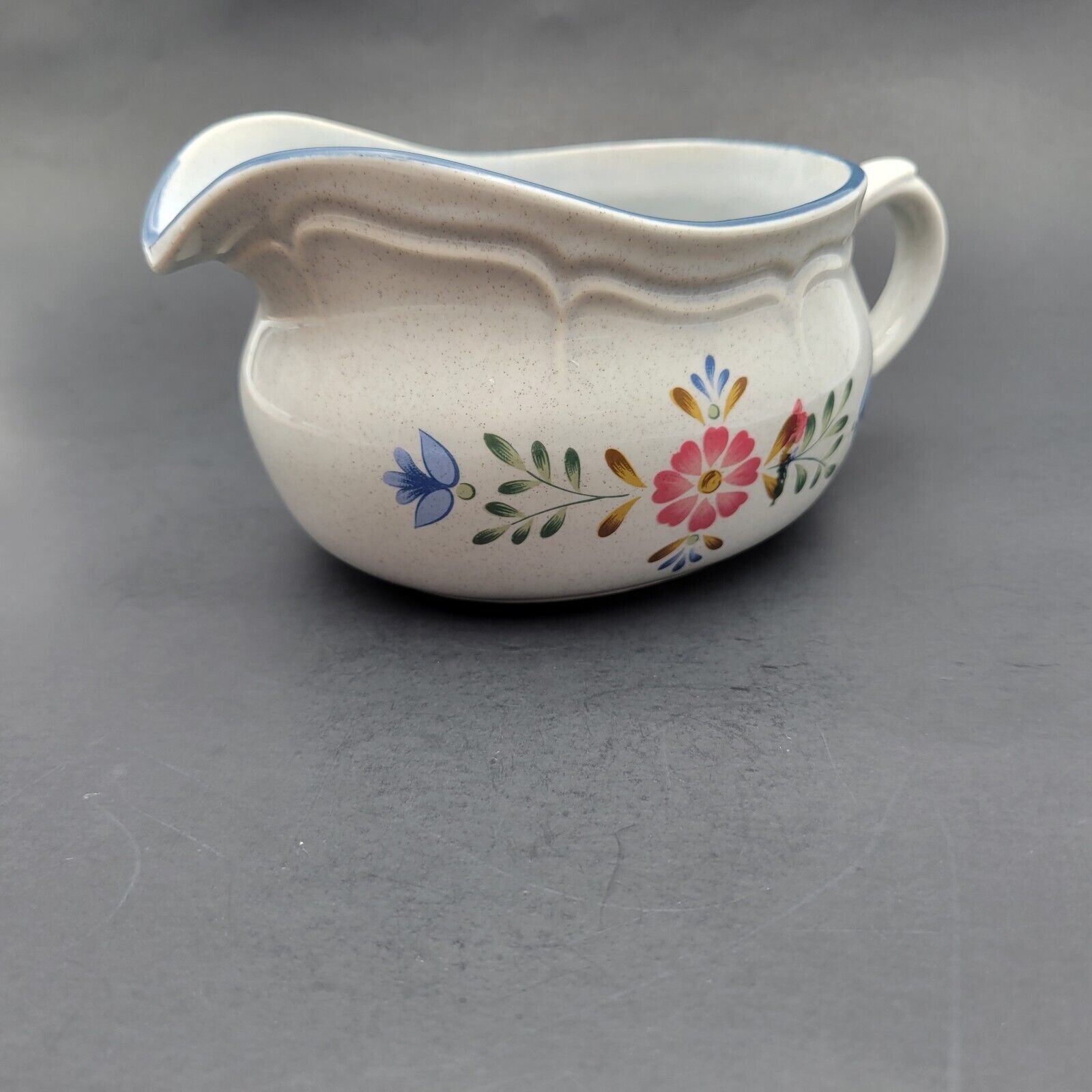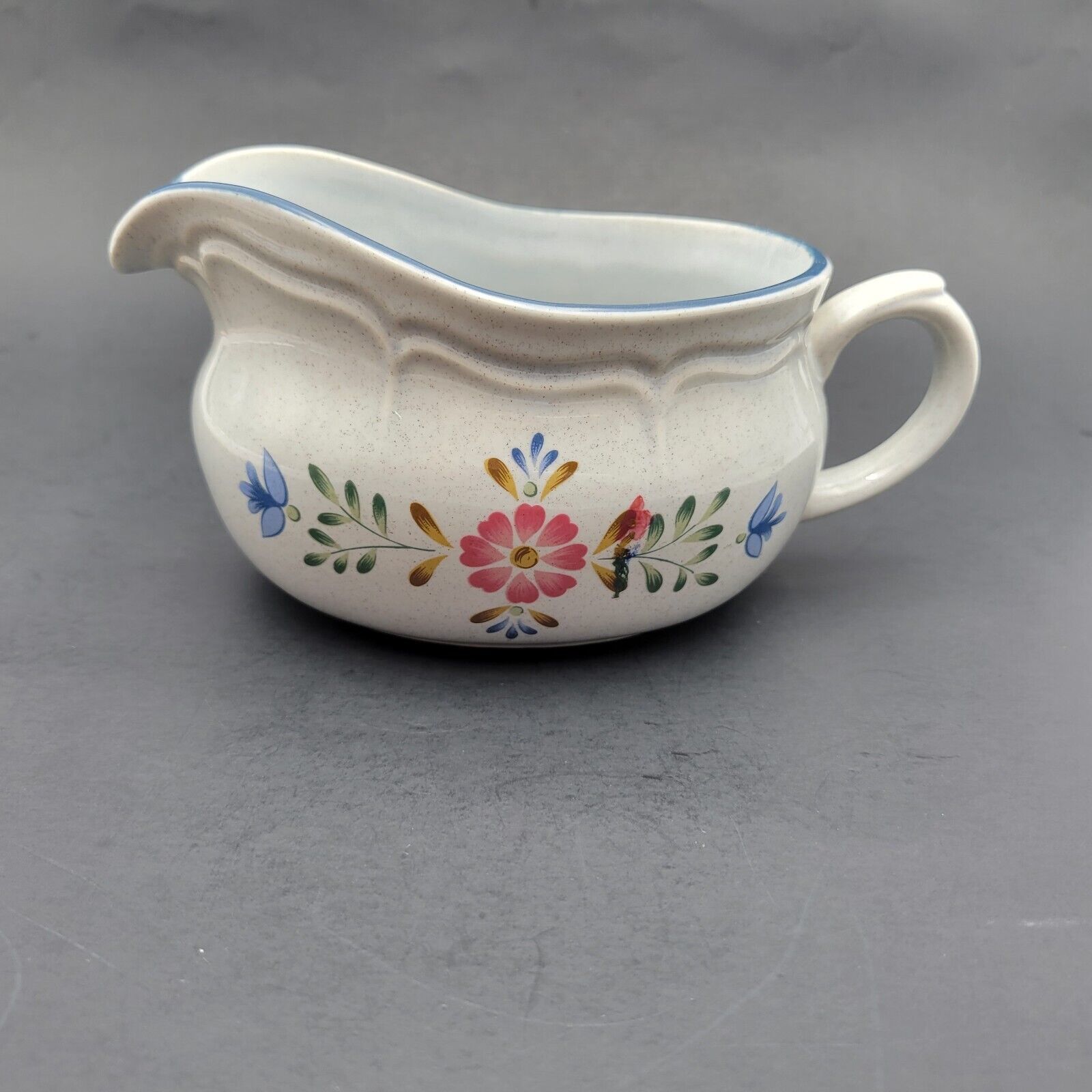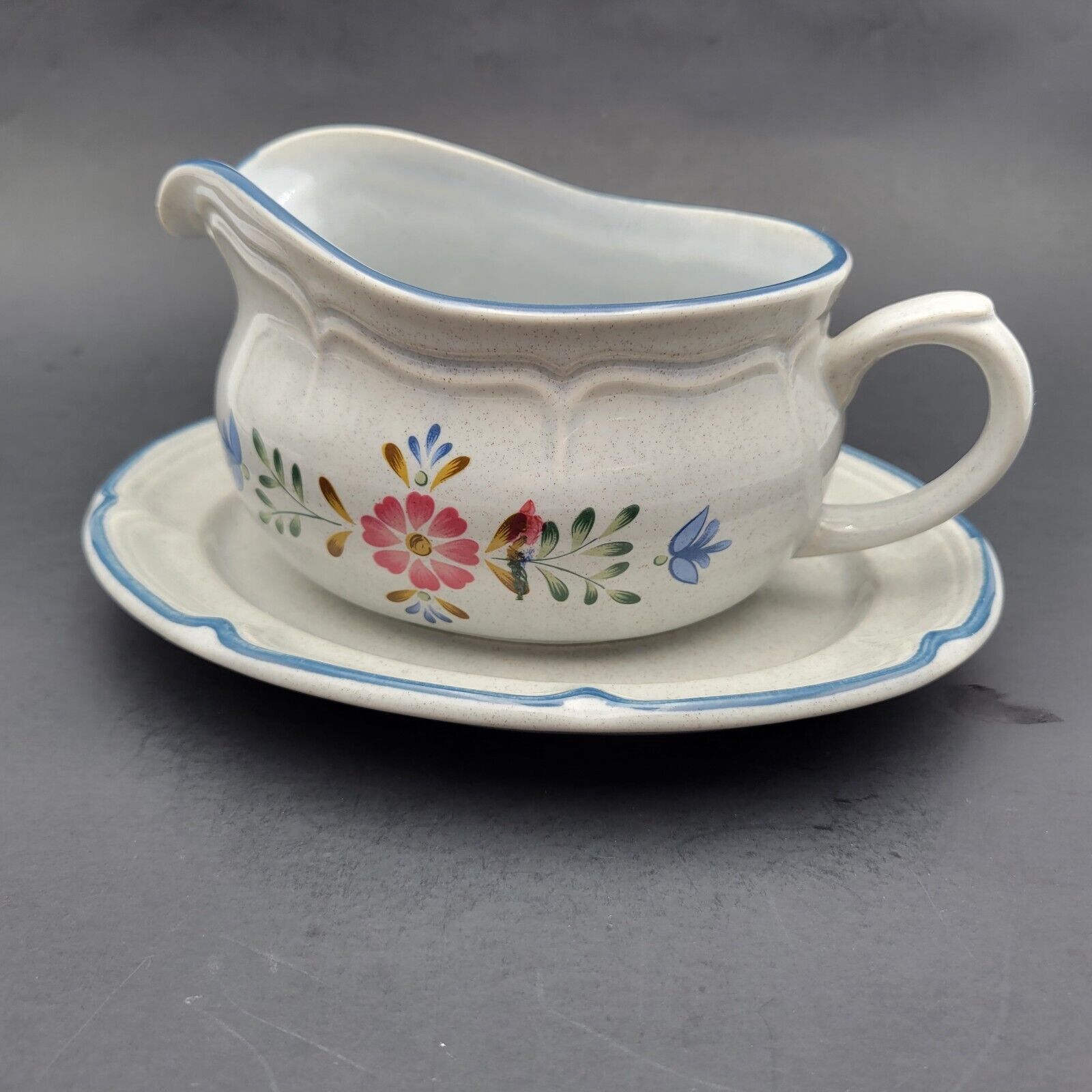 International Stoneware Gravy Boat With Under Plate Heritage Patchwork vtg Japan
