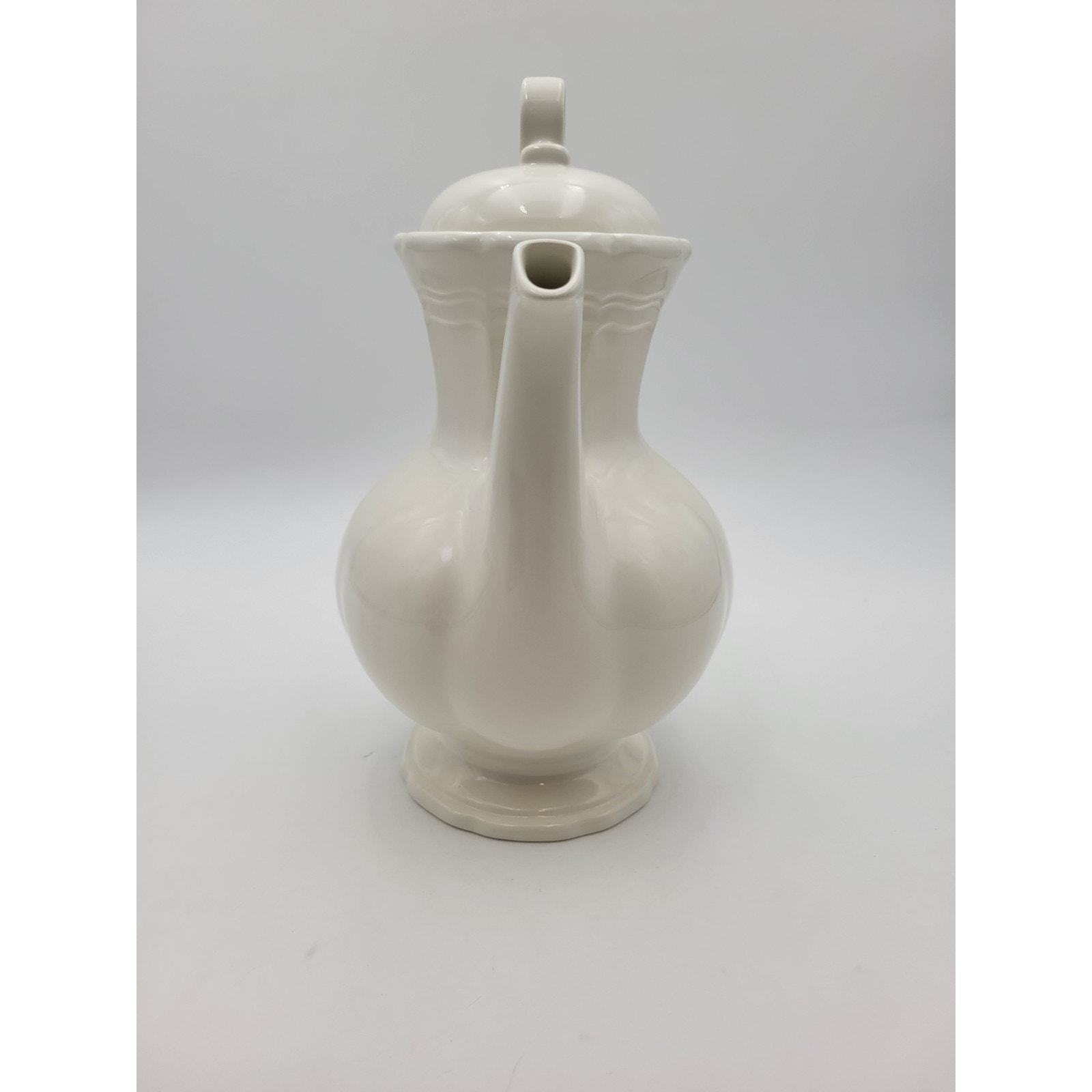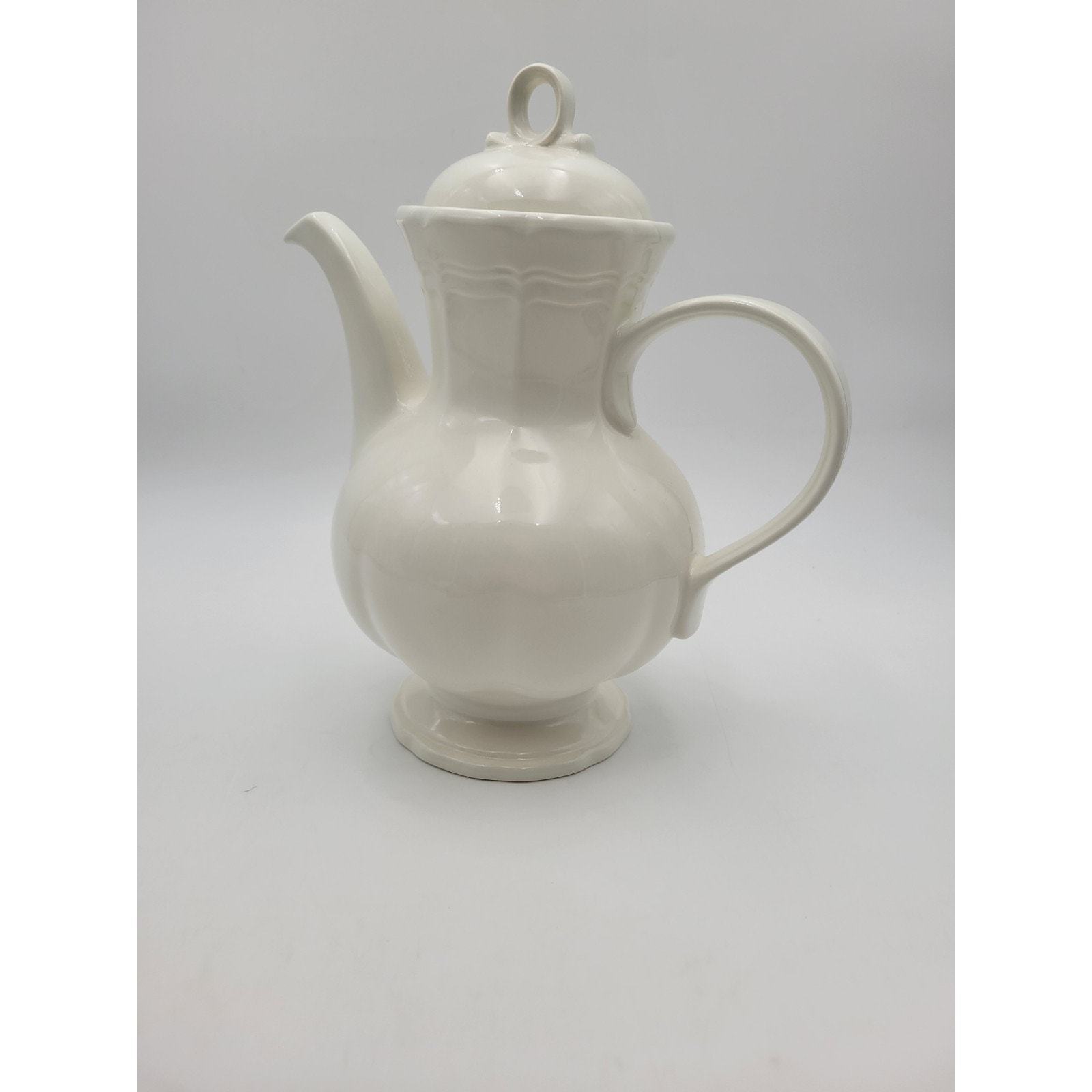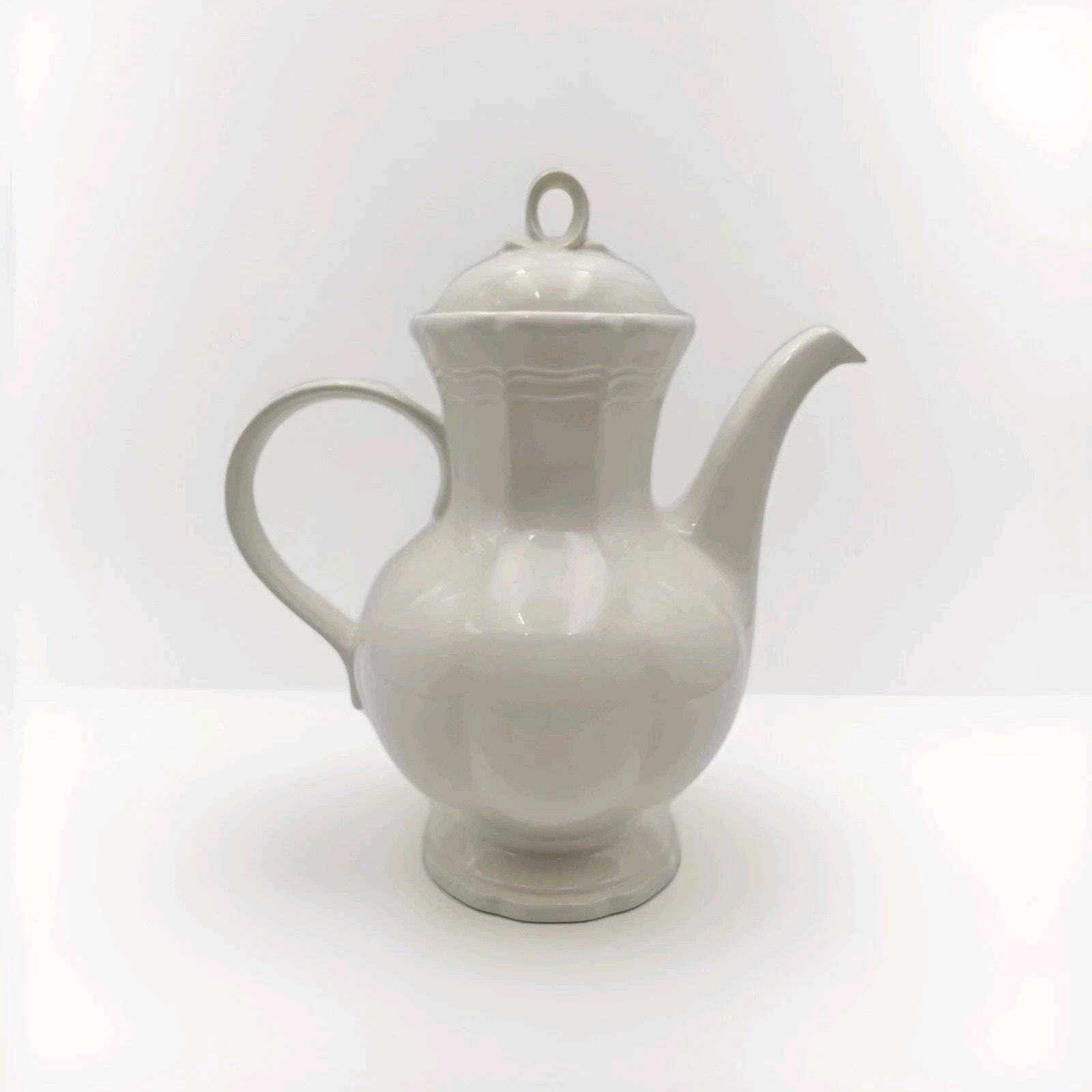 The Vtg Mikasa French Countryside 8 Cup Coffee Pot With Lid F9000 is a vintage ceramic coffee pot featuring a classic white color and a charming French Countryside design. With a capacity of 8 cups, this microwave and dishwasher safe pot stands at 11.5 inches tall, making it both functional and stylish for serving coffee in your home. Made by the brand Mikasa, this decorative piece is a must-have for any tea and coffee enthusiast looking to add a touch of sophistication to their kitchen collection.