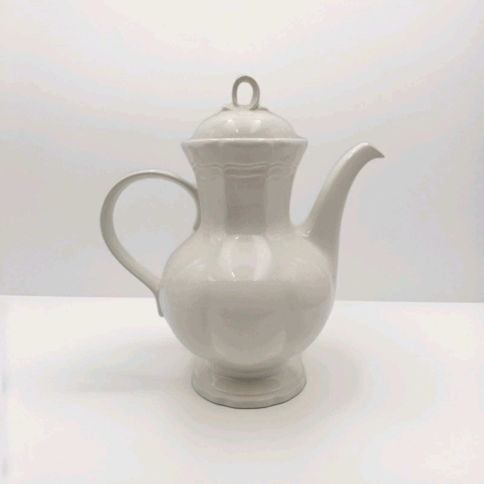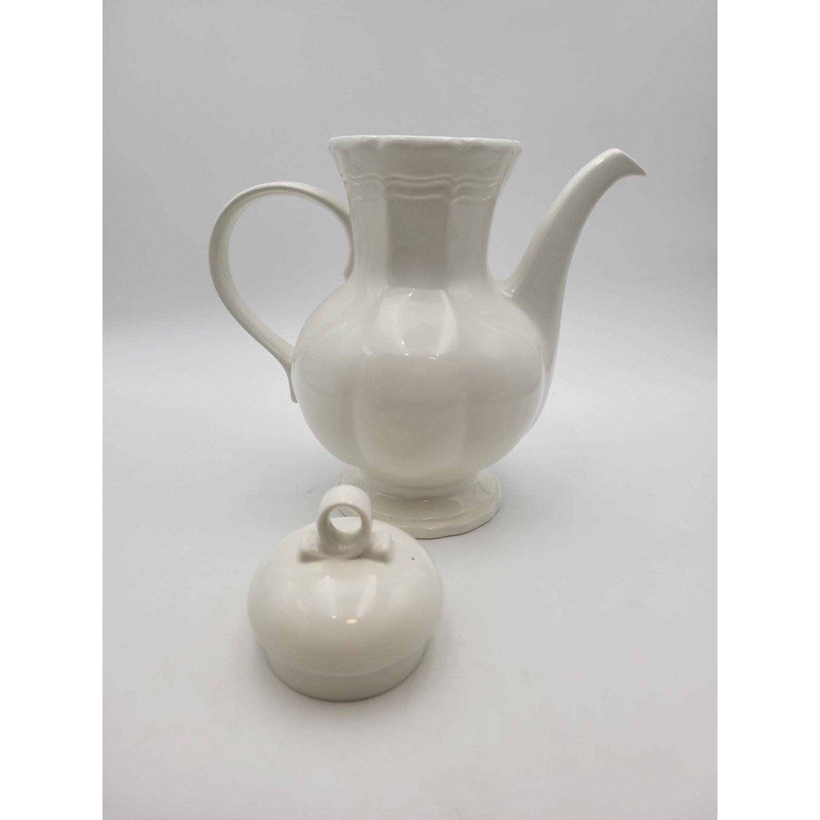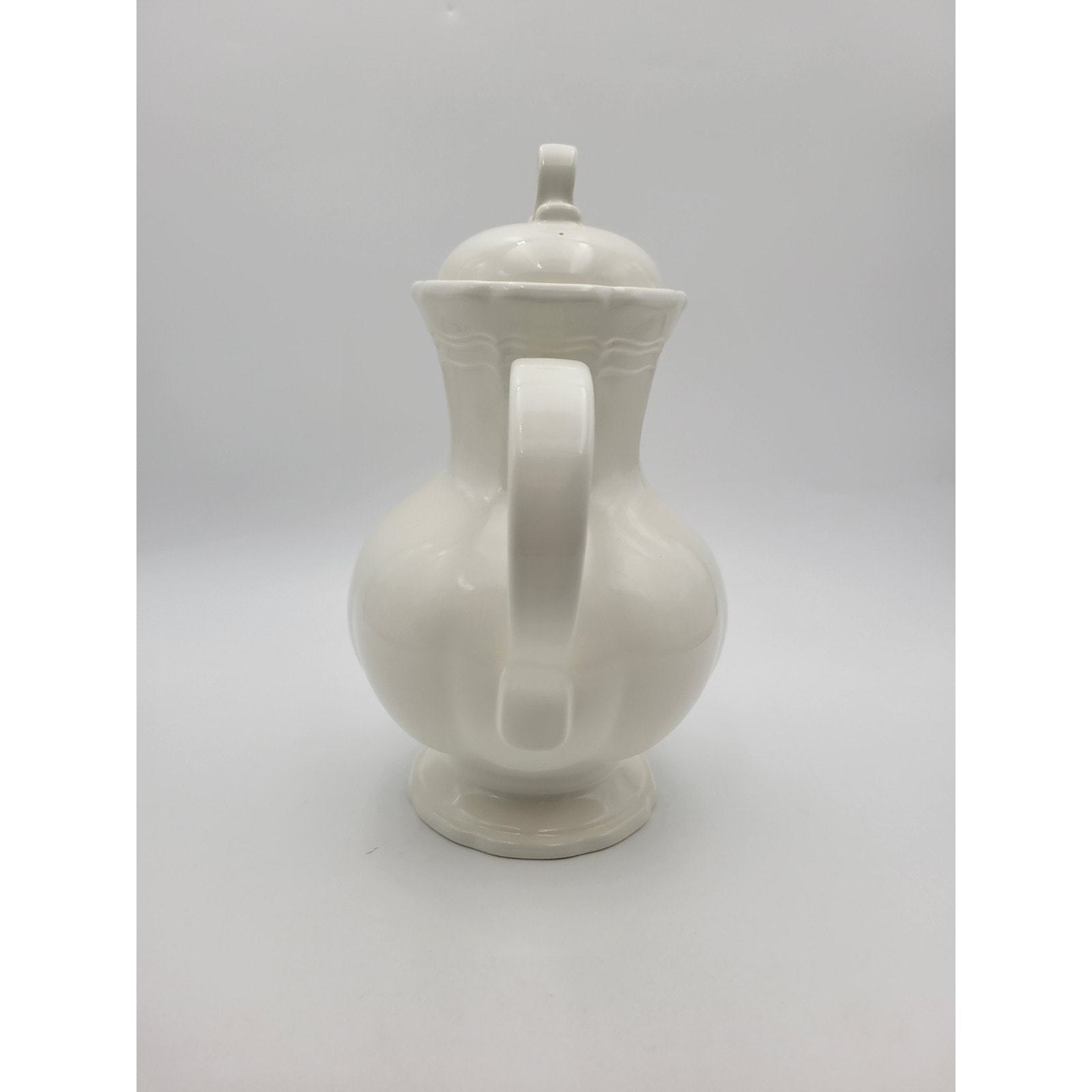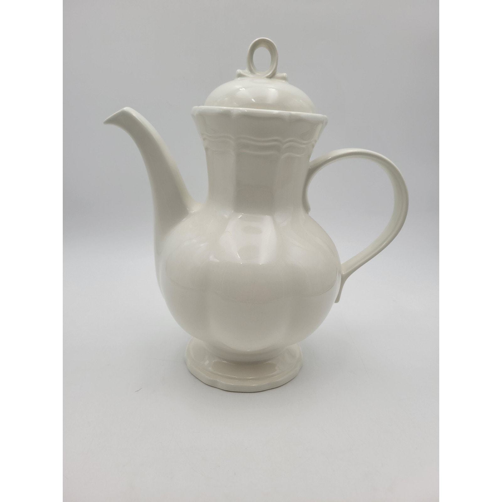 The Vtg Mikasa French Countryside 8 Cup Coffee Pot With Lid F9000 is a vintage ceramic coffee pot featuring a classic white color and a charming French Countryside design. With a capacity of 8 cups, this microwave and dishwasher safe pot stands at 11.5 inches tall, making it both functional and stylish for serving coffee in your home. Made by the brand Mikasa, this decorative piece is a must-have for any tea and coffee enthusiast looking to add a touch of sophistication to their kitchen collection.