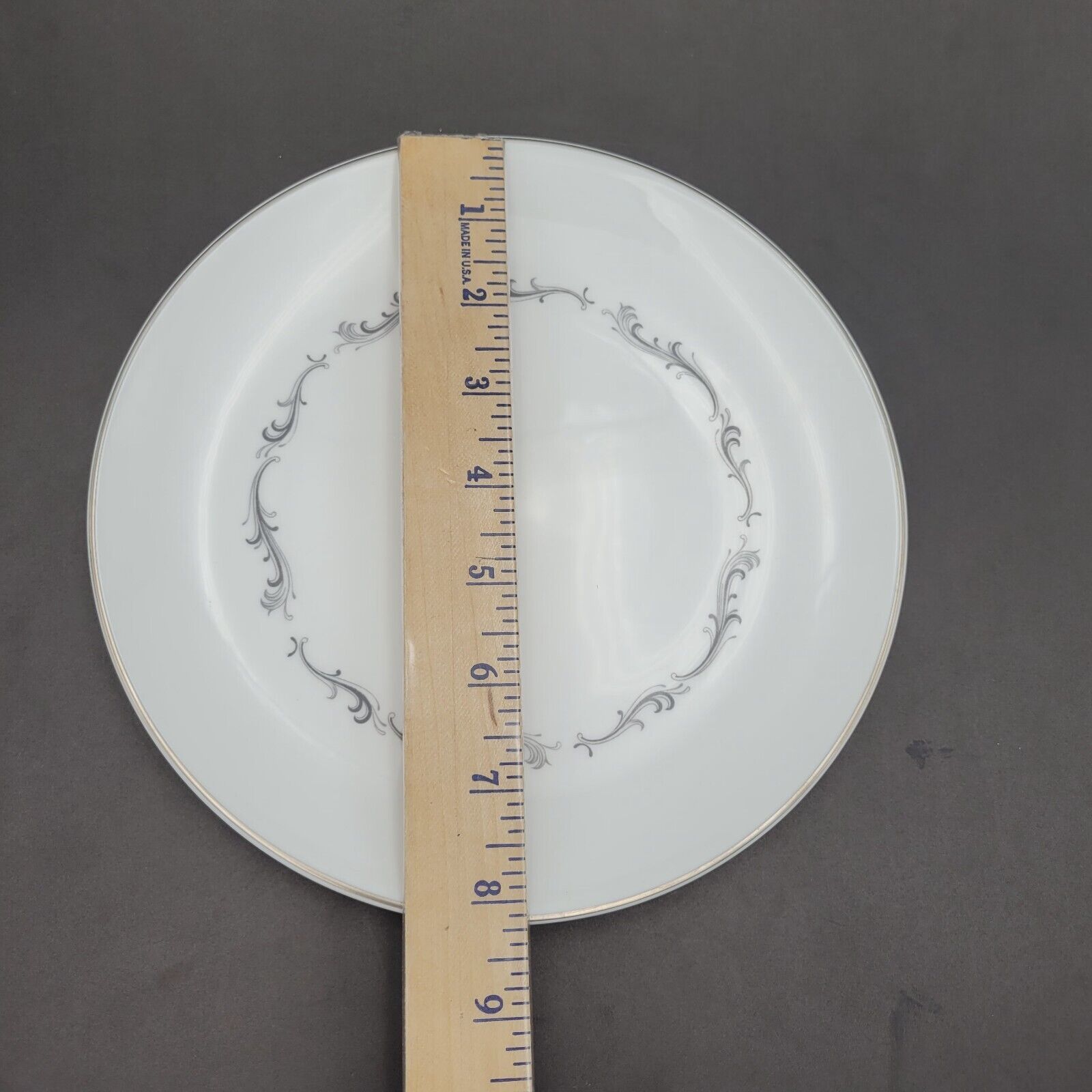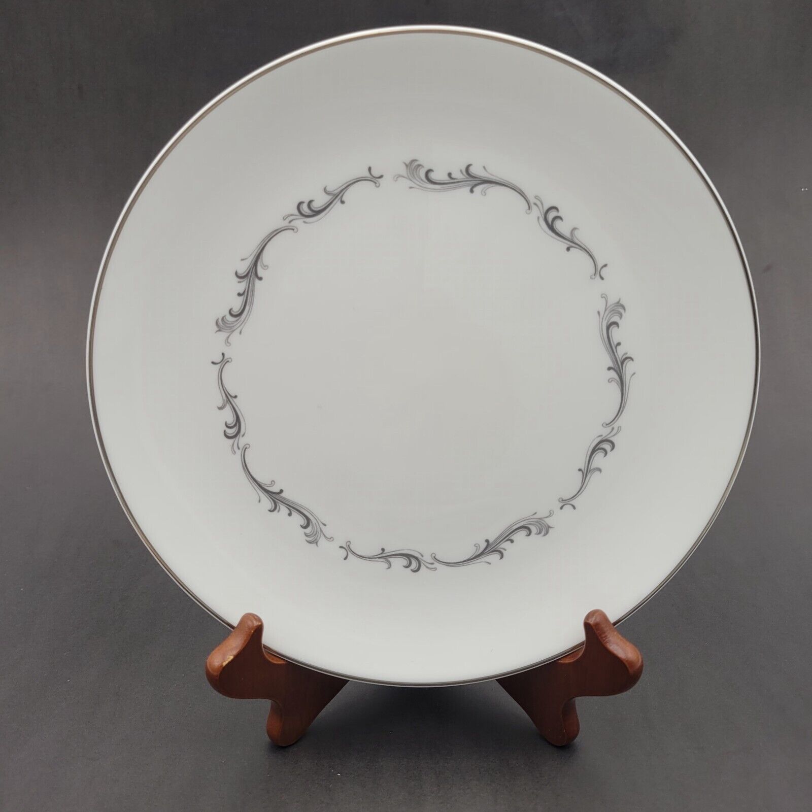 Add a touch of elegance to your dining table with these vintage Royal Doulton Bone China Salad Plates in the 'Coronet' pattern. Made in England, these 8-1/4" plates are perfect for serving salads or appetizers. The gray color adds a sophisticated touch to your table setting, and the set includes enough plates to accommodate your guests.