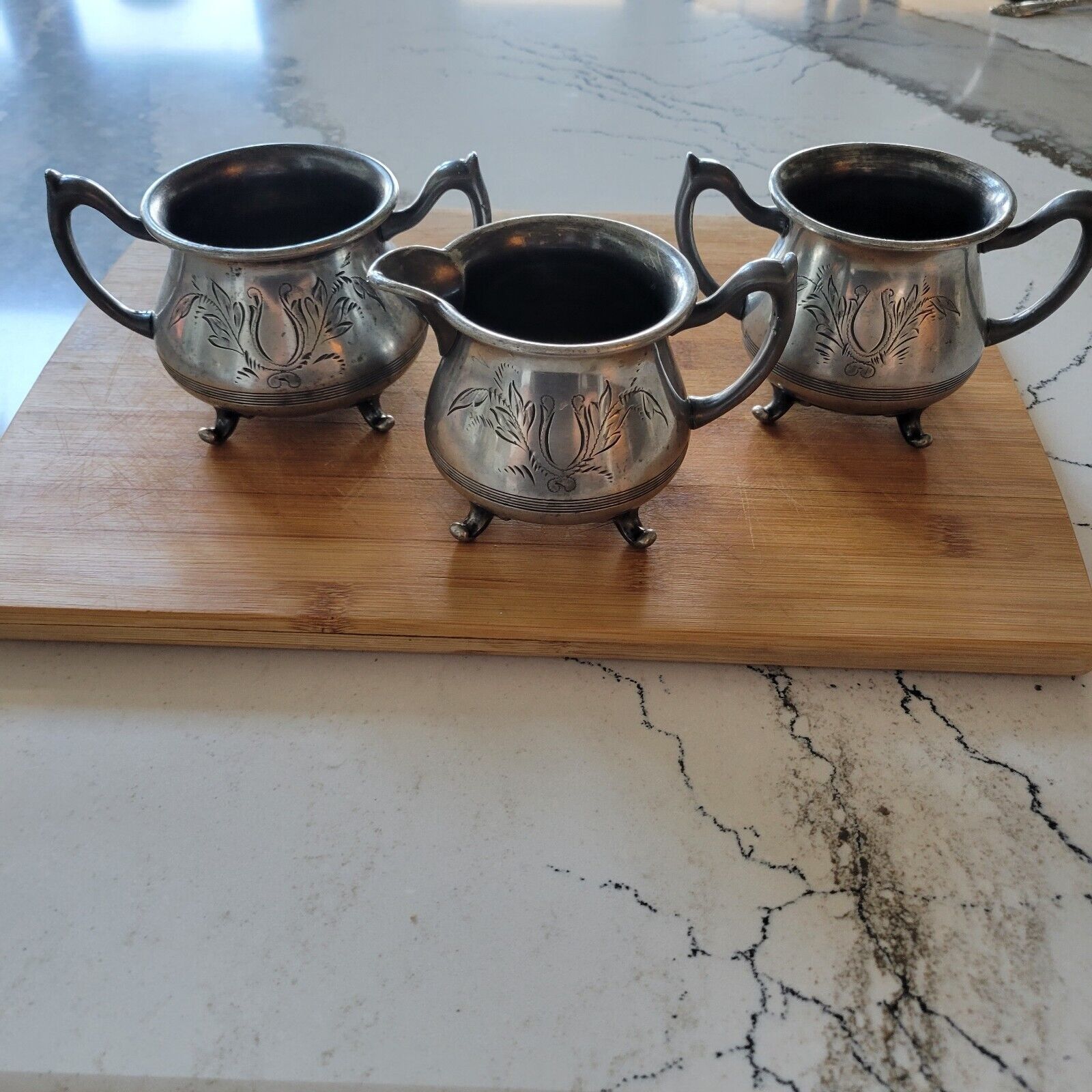 Vintage Beacon Silver Taunton Mass Quadruple Set of 3. Cream white brown sugar.