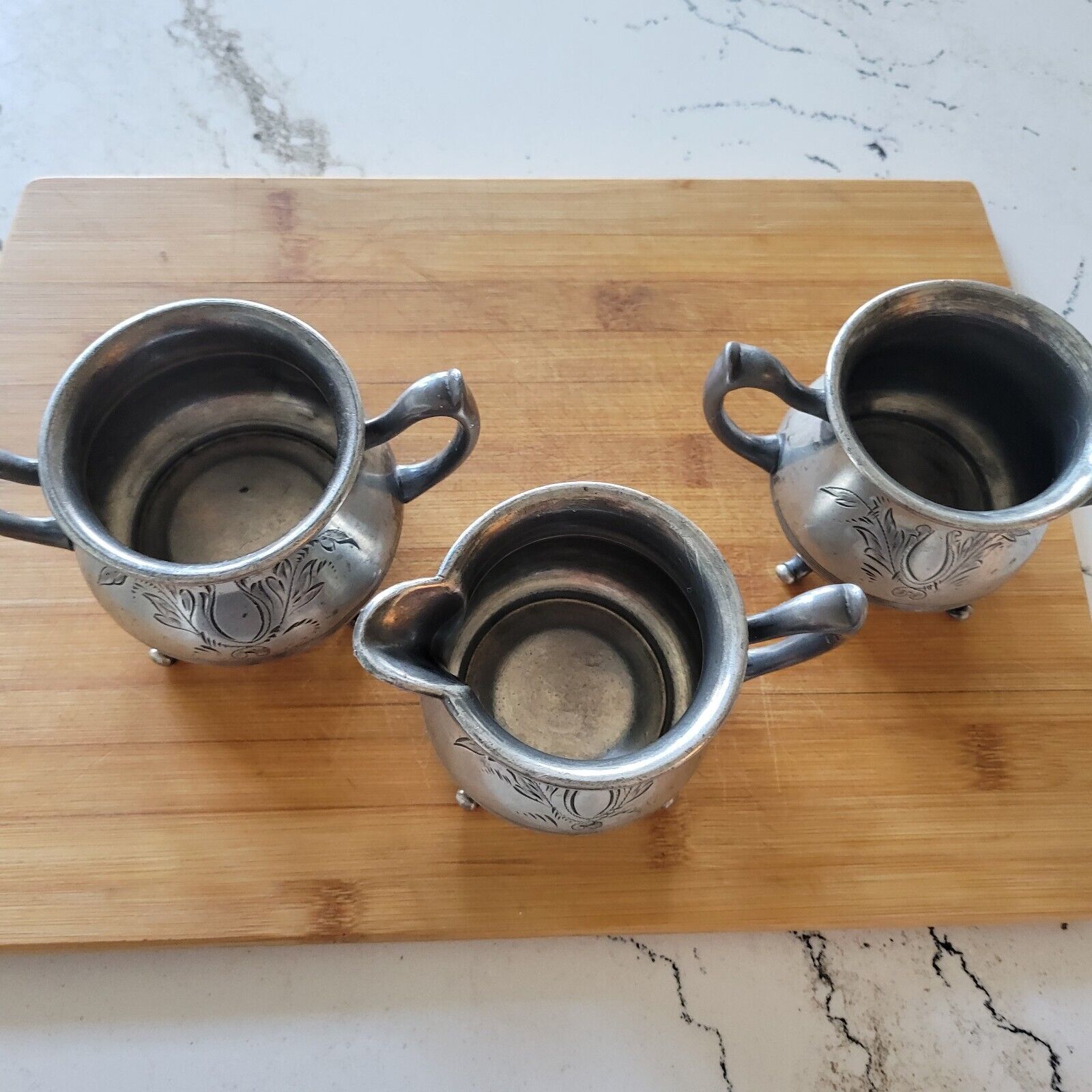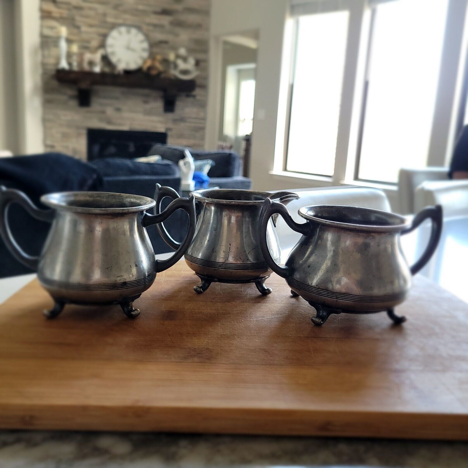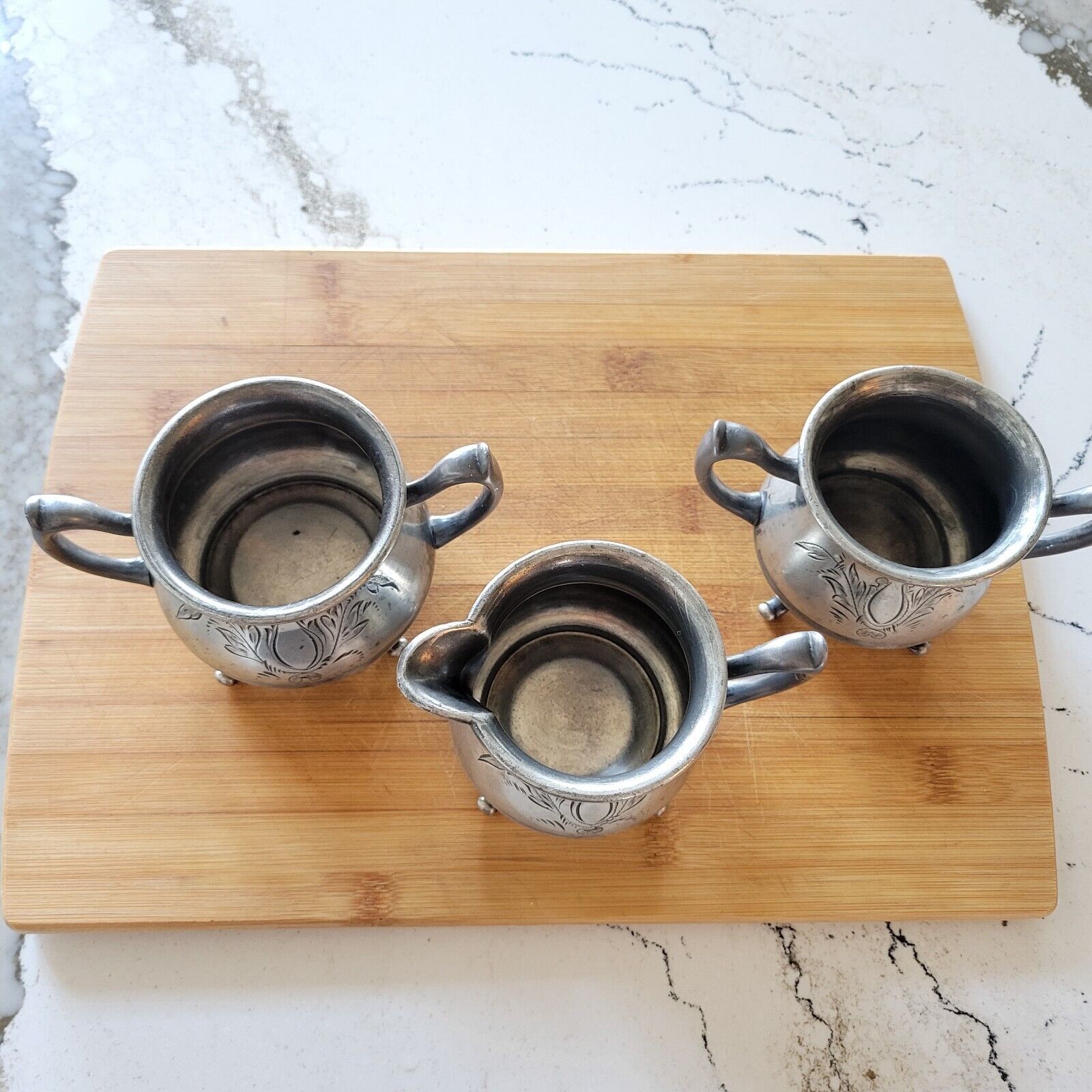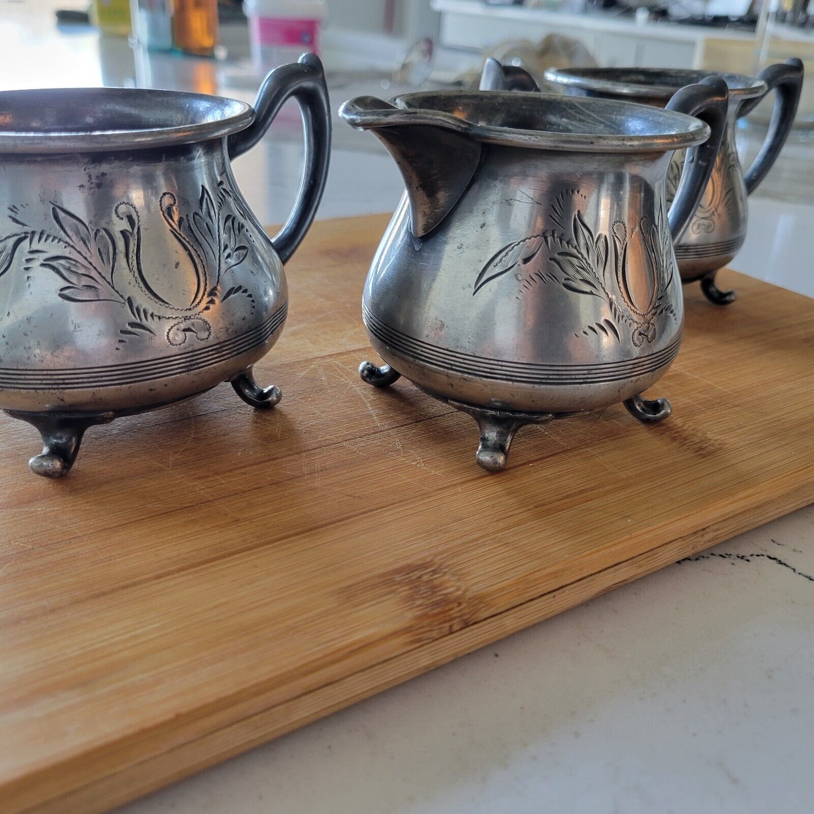Vintage Beacon Silver Taunton Mass Quadruple Set of 3. Cream white brown sugar