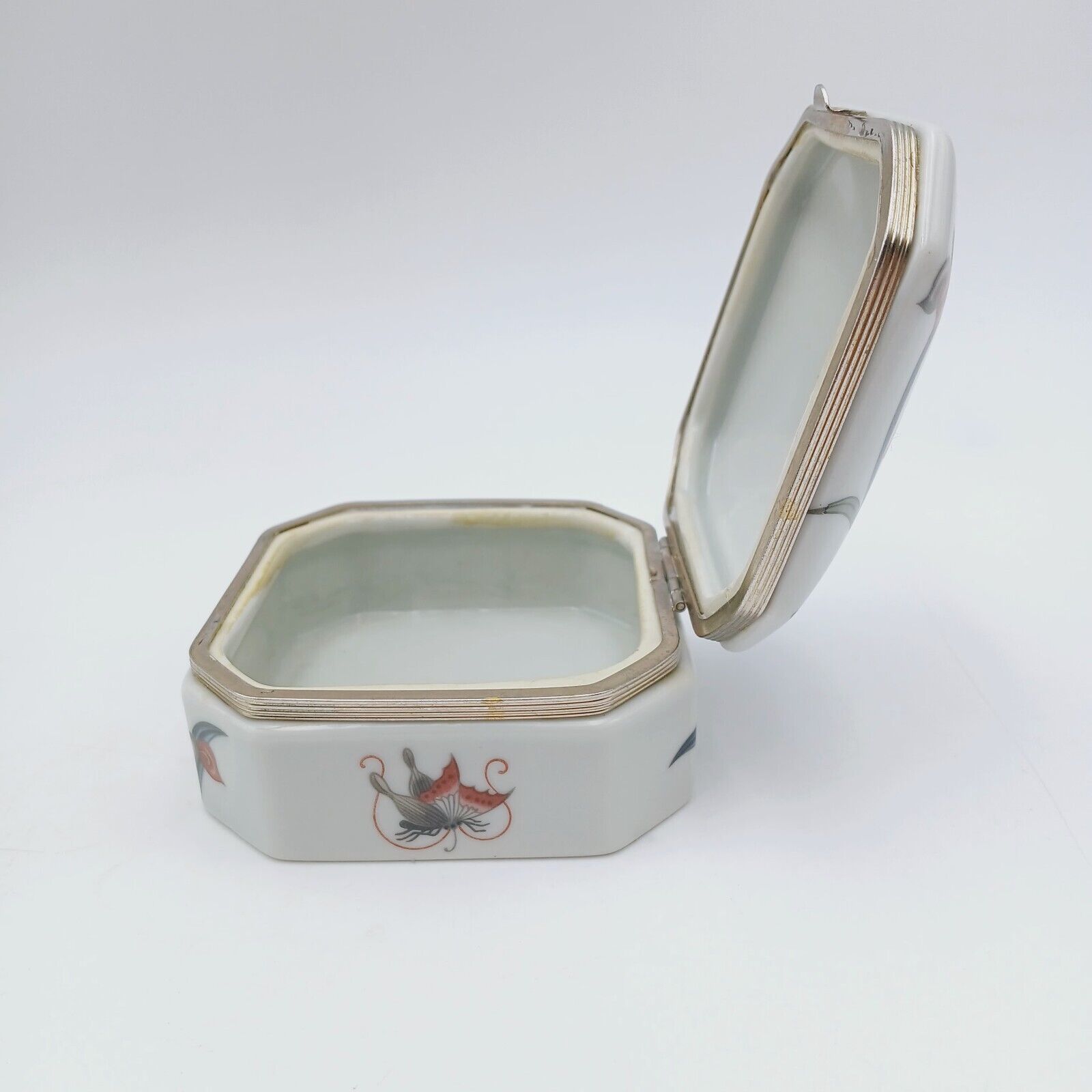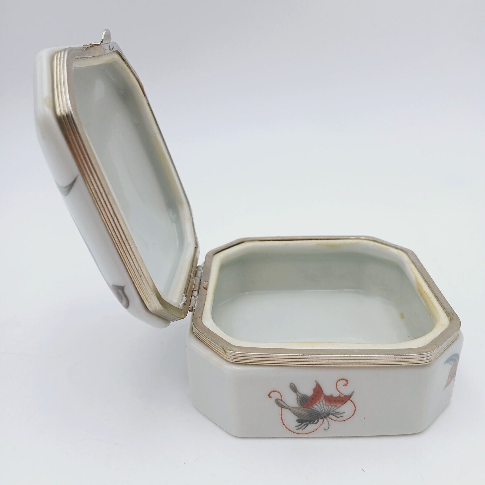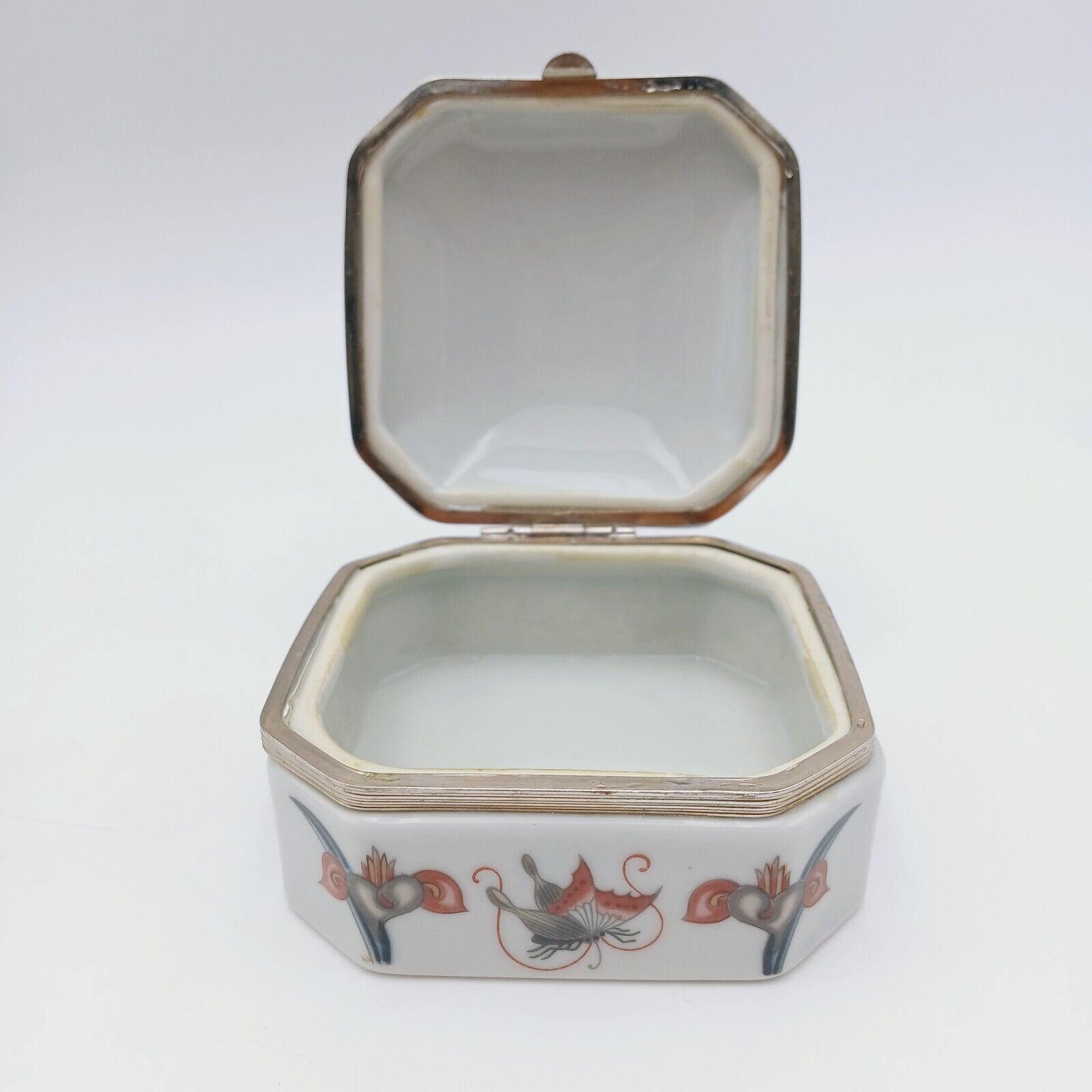 Vtg Neiman Marcus Floral Trinket Box Porcelain and Metal Made in Japan