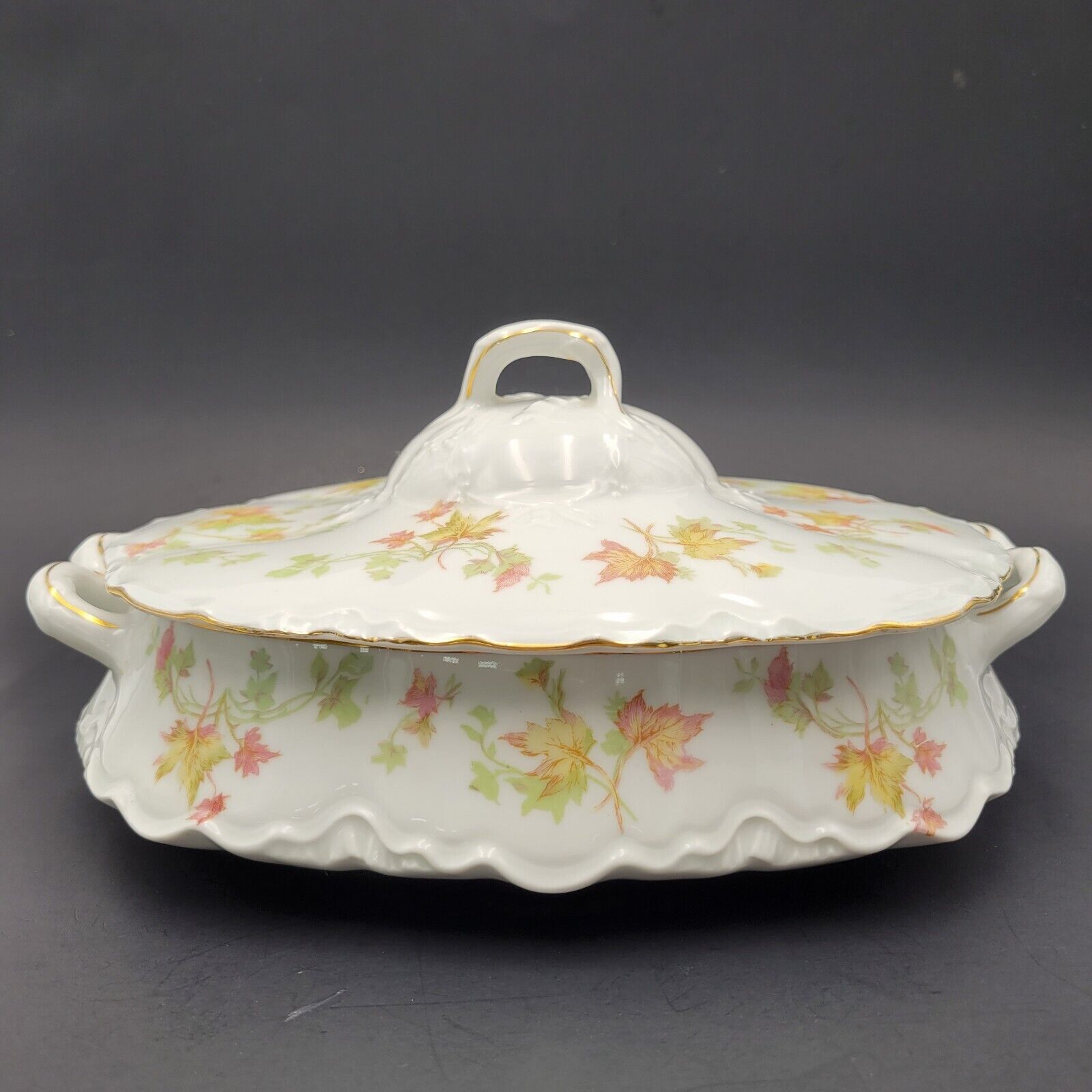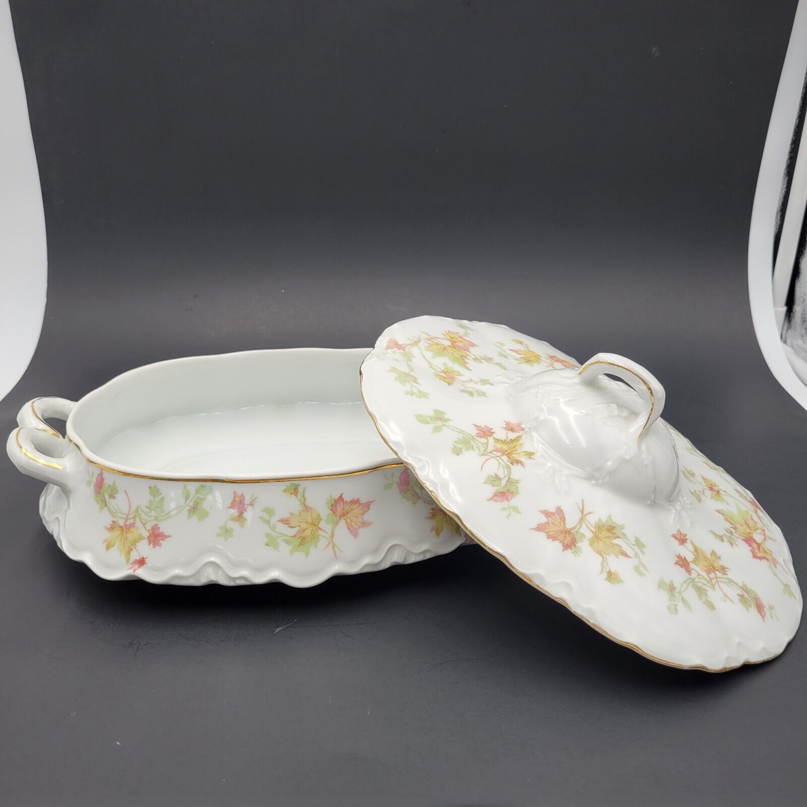 Antique Victorian Rosenthal Oval Covered Vegetable Bavaria Scallop Gold 1925