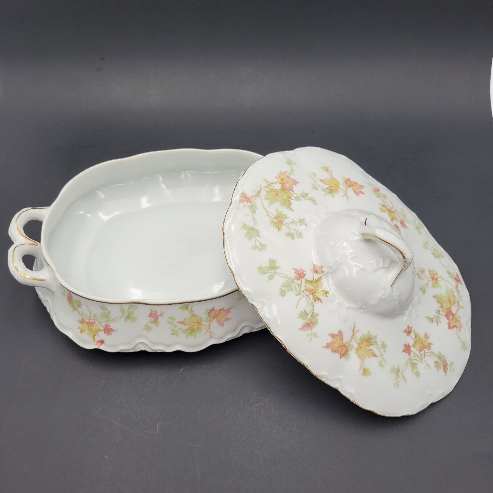 Antique Victorian Rosenthal Oval Covered Vegetable Bavaria Scallop Gold 1925.