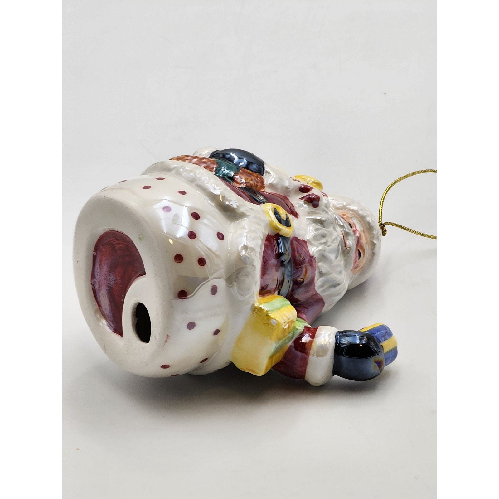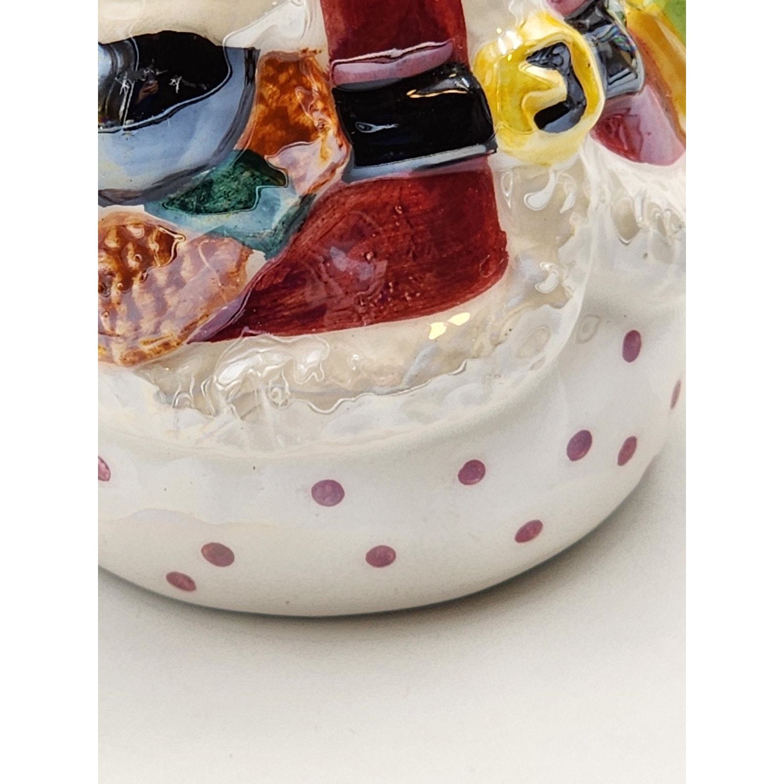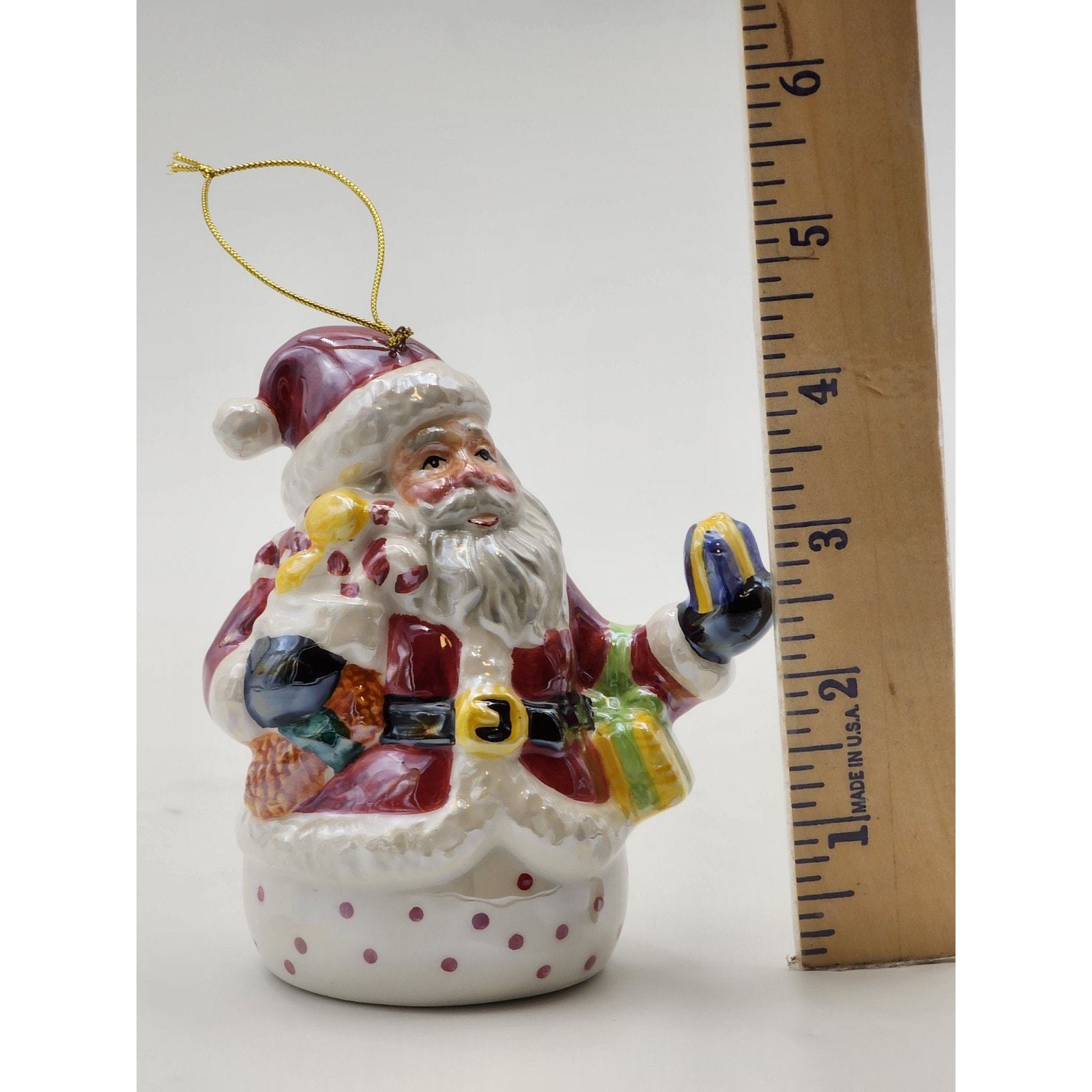 Vtg Iridescent Glazed Ceramic Santa with Presents Christmas Ornament