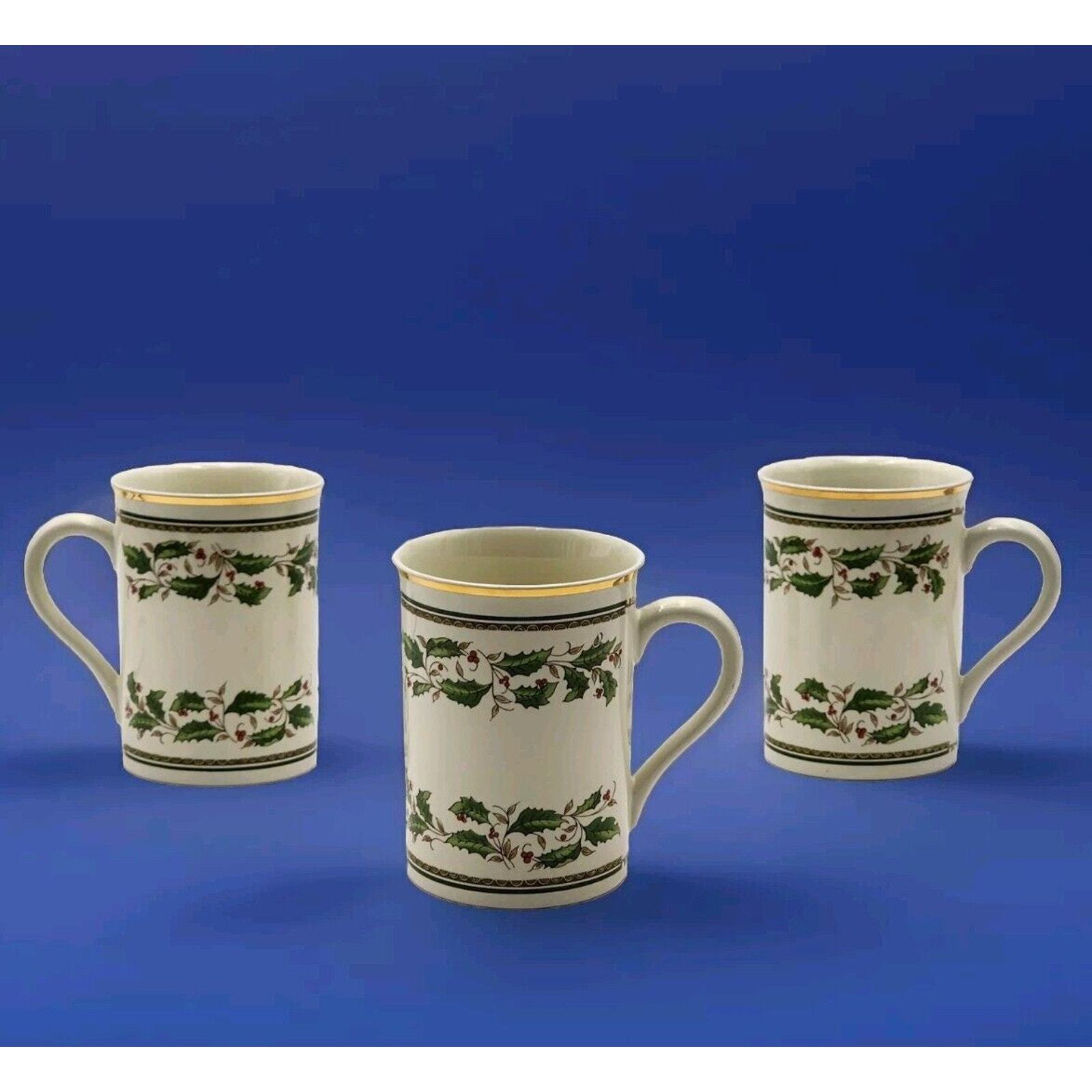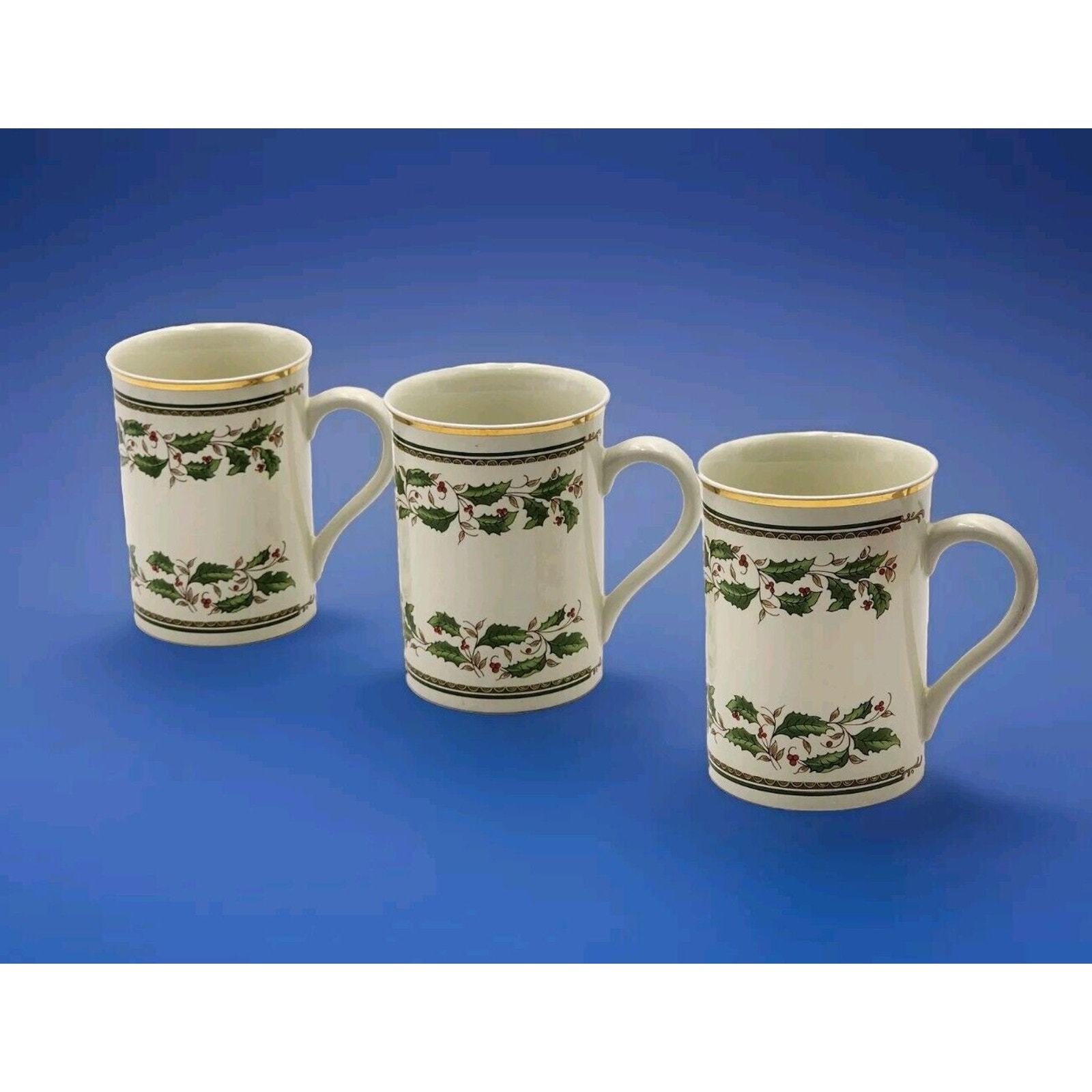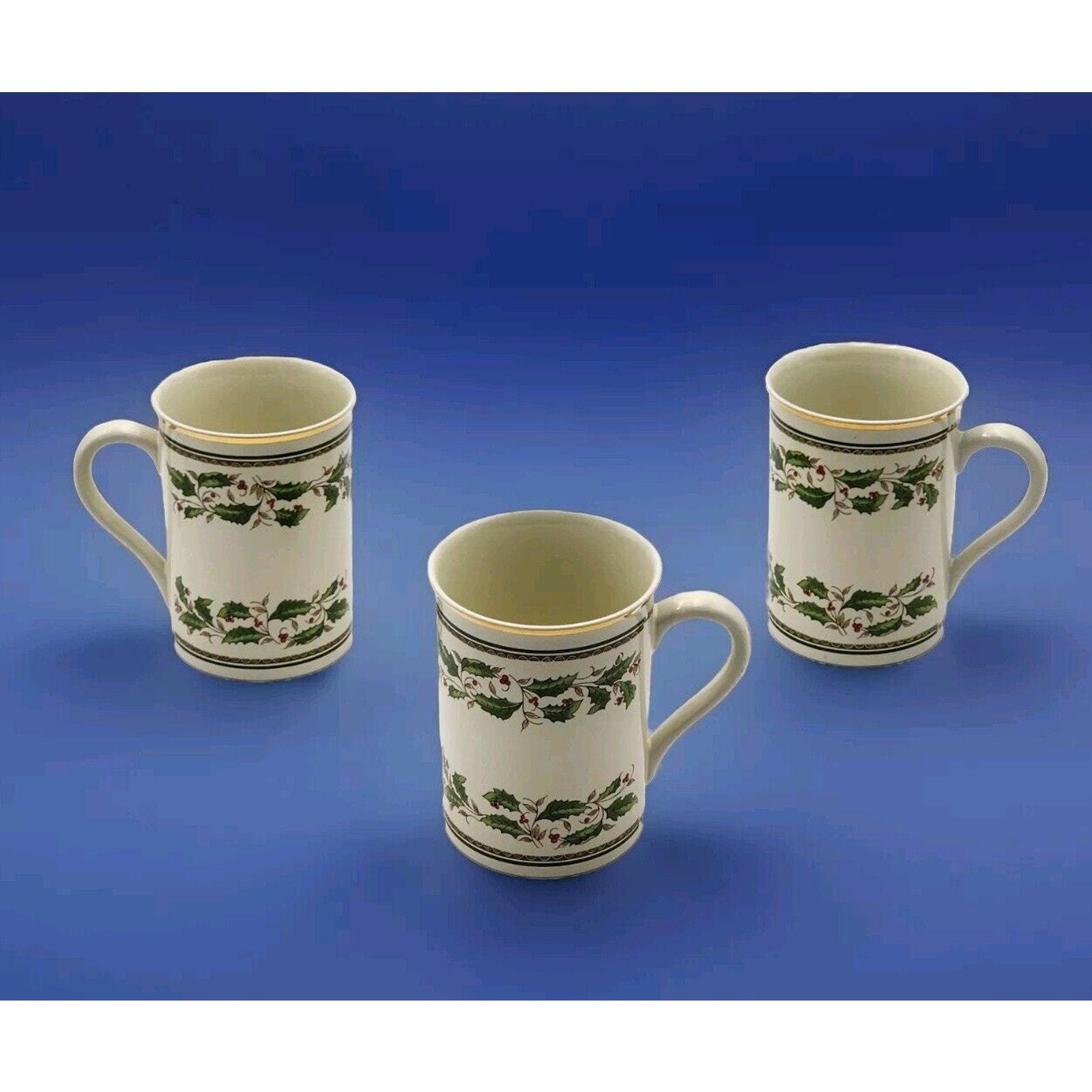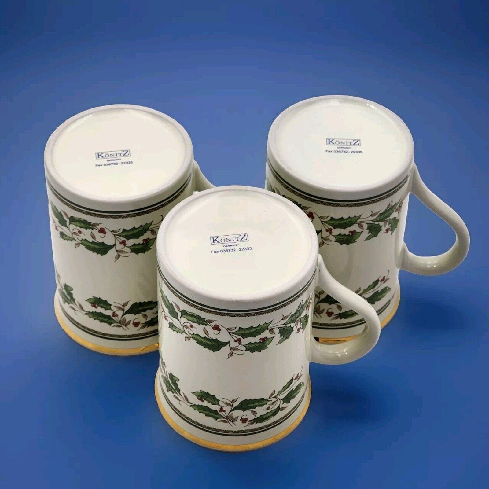 Set of 3 Konitz Germany Holly Holiday Home For The Holidays Porcelain Mugs 1994