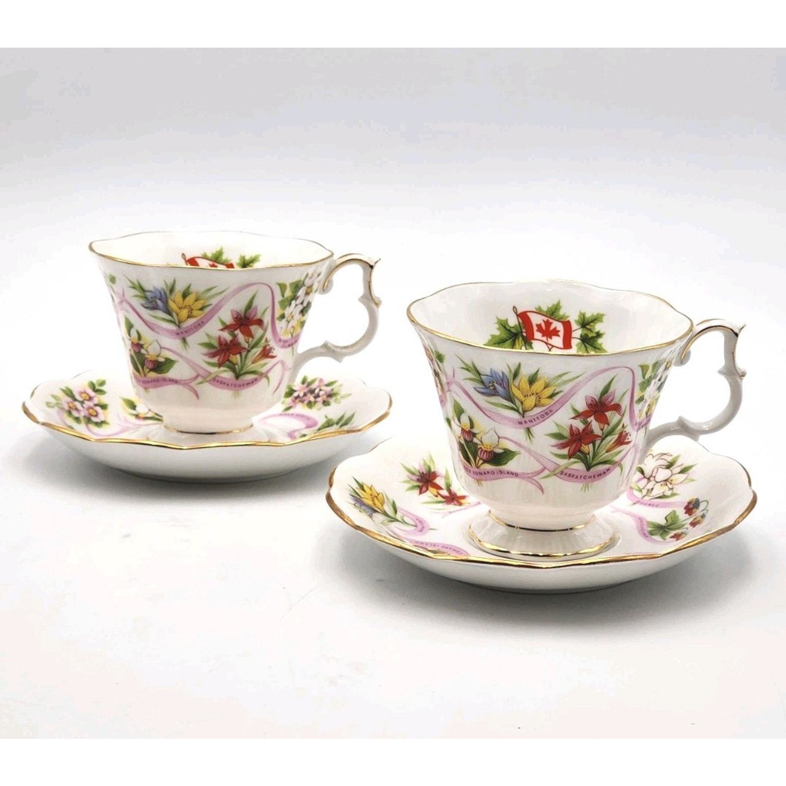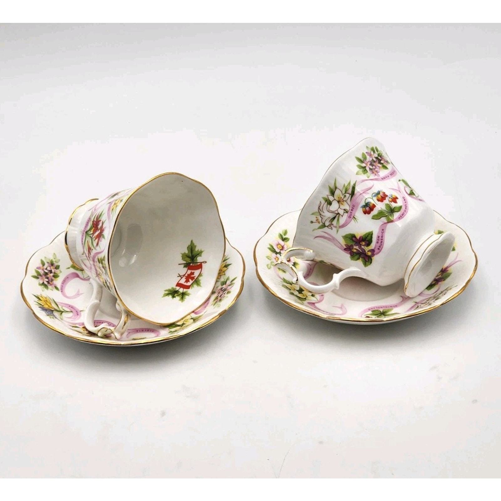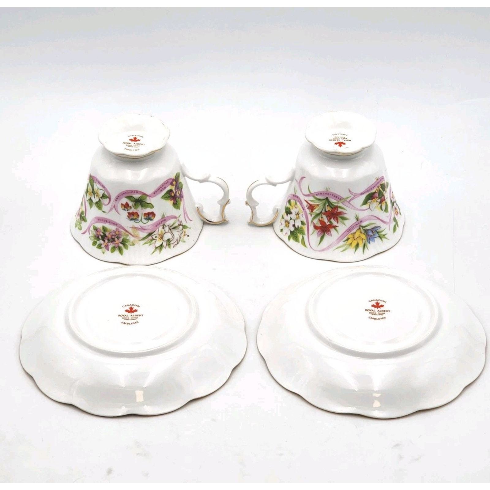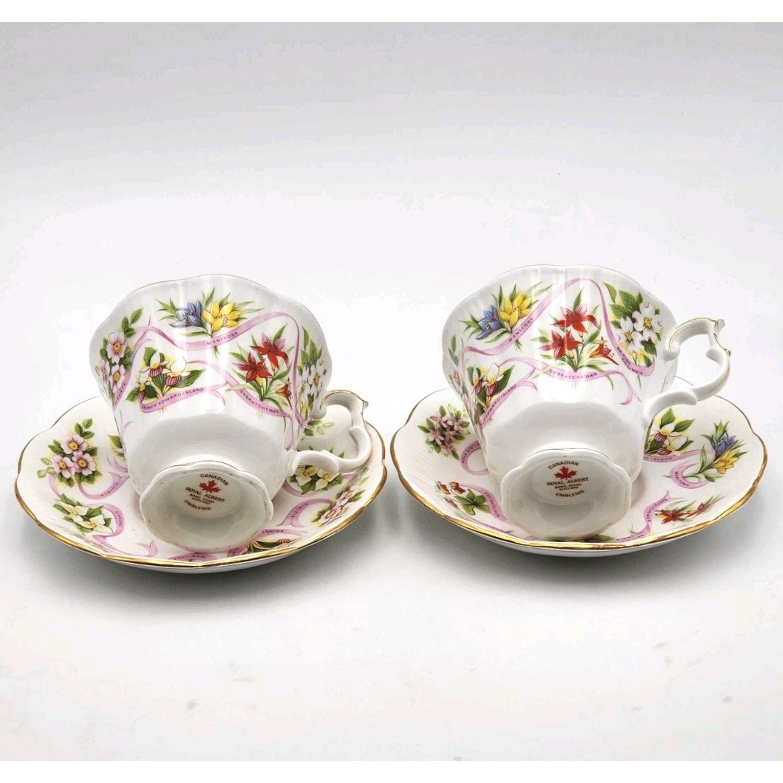 Royal Albert England Tea Cup & Saucer Canadian Emblems 2 Sets Province Flowers