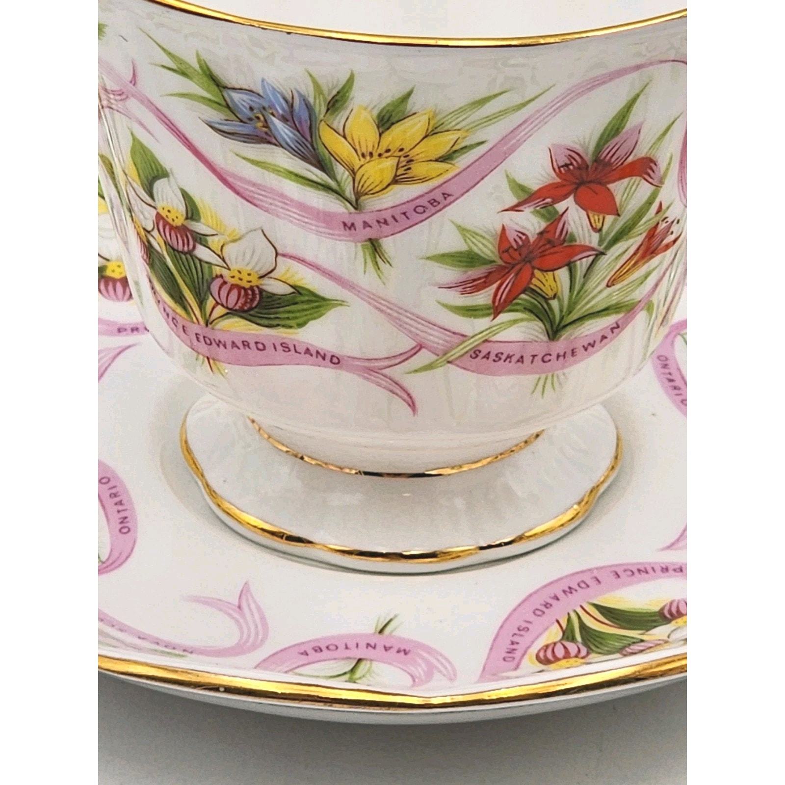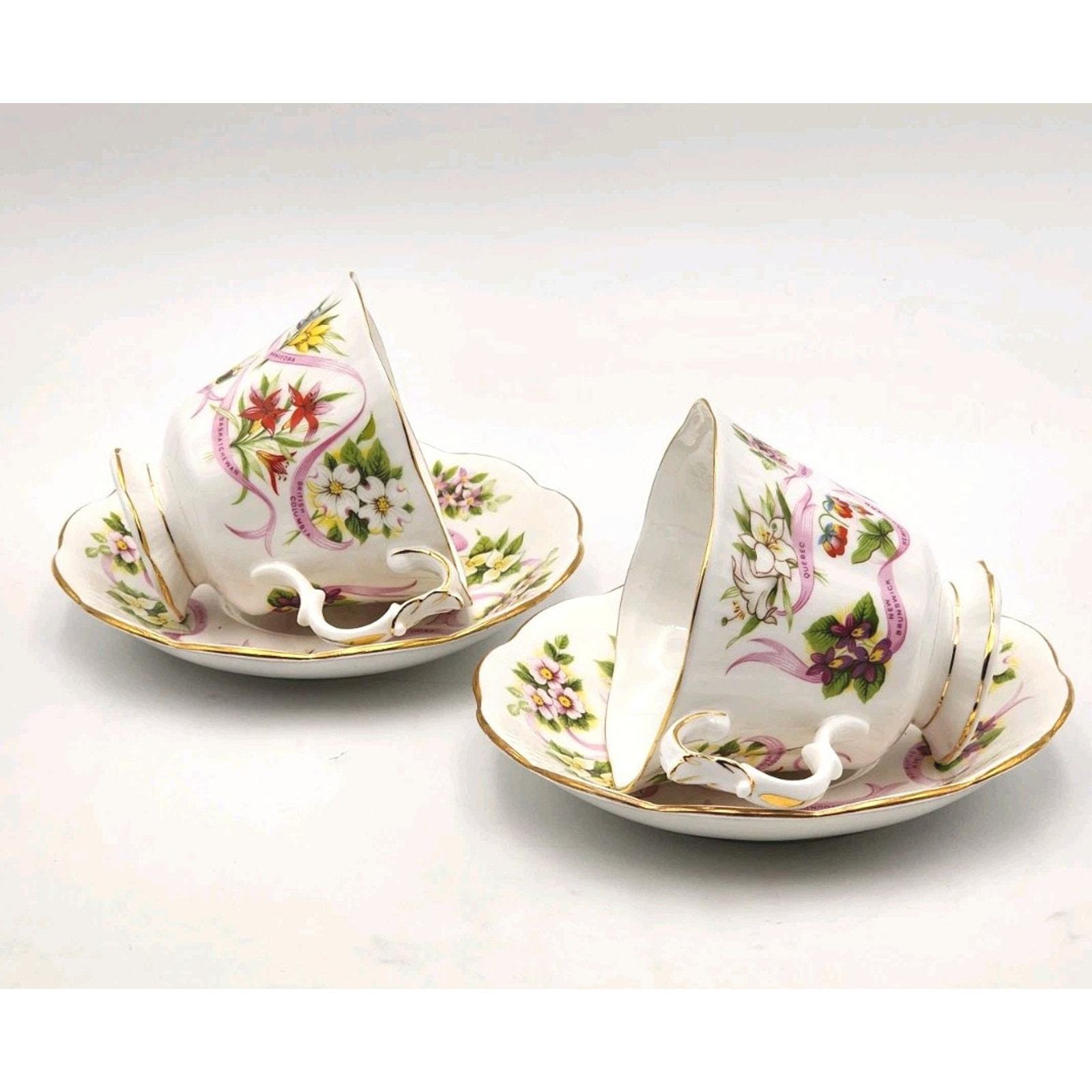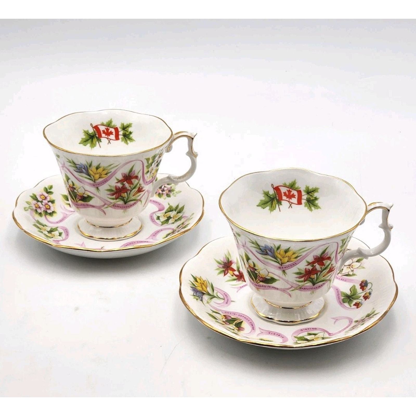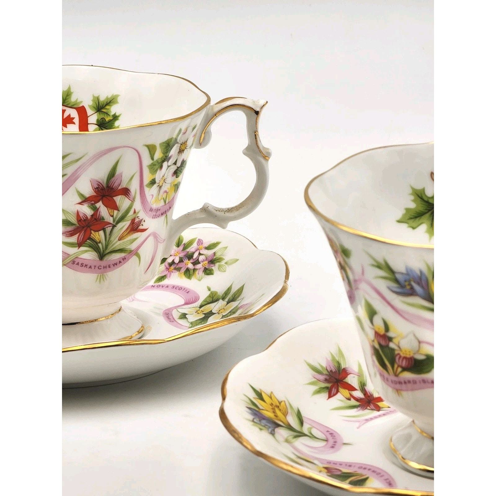 Royal Albert England Tea Cup & Saucer Canadian Emblems 2 Sets Province Flowers