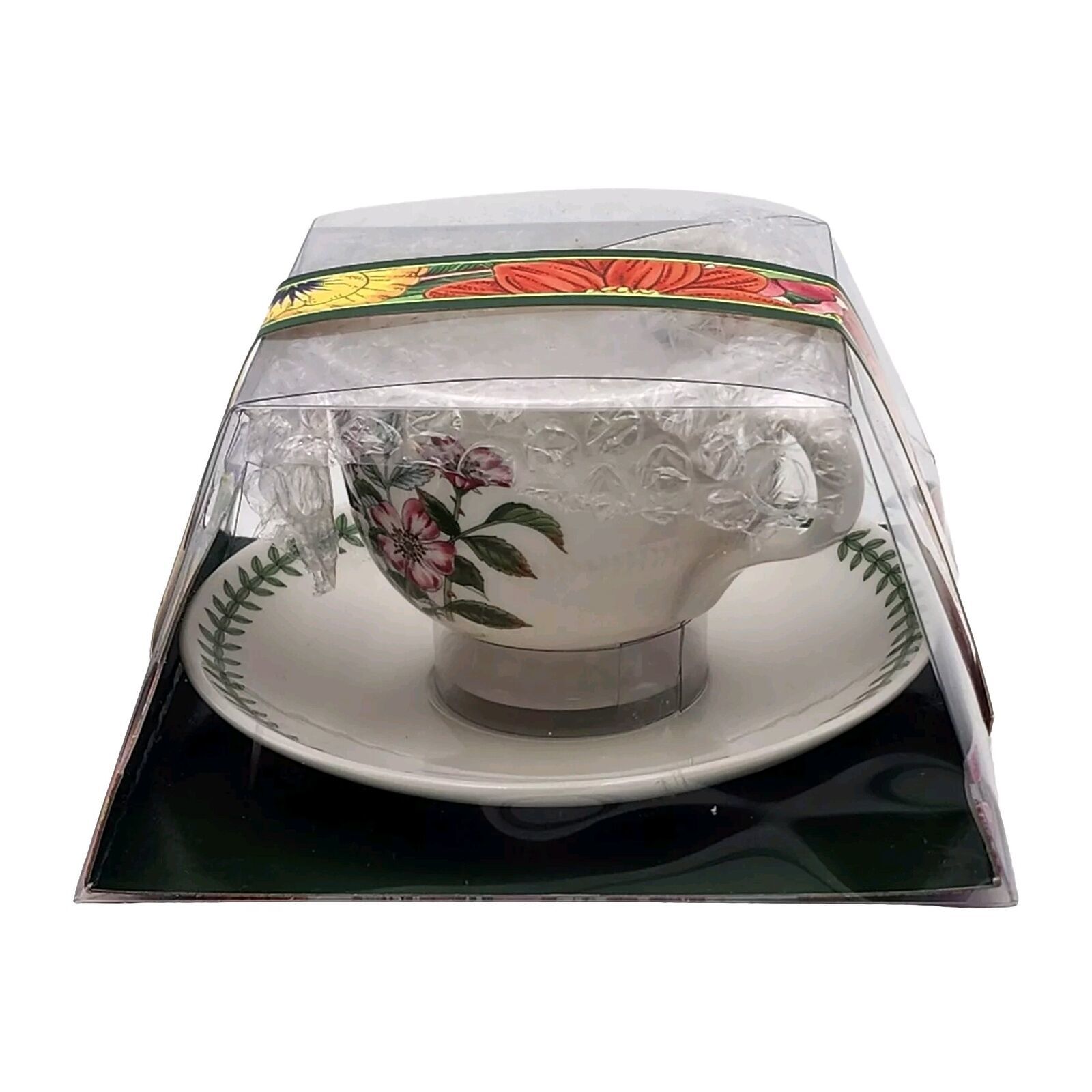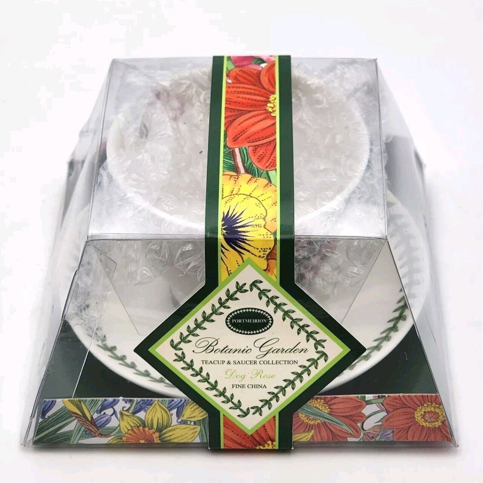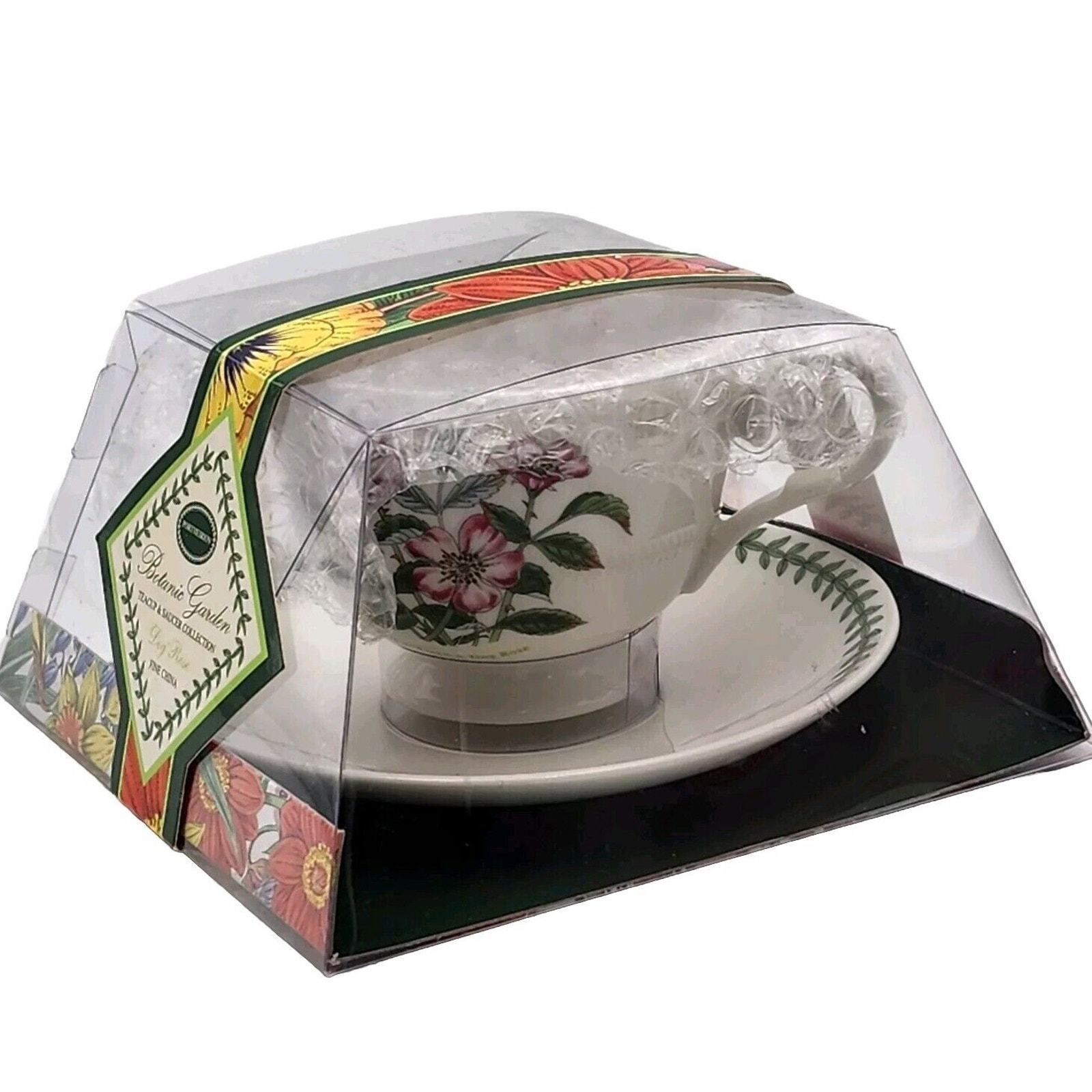 Portmeirion Botanic Garden Teacup & Saucer Dog Rose Brand New In Box Coffee Tea