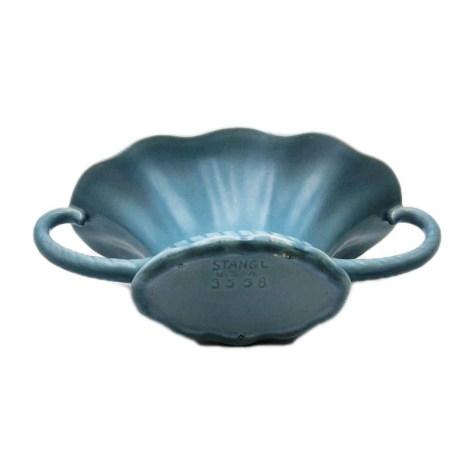STANGL Blue 11" Pottery Serving Bowl 2 Handles USA 3558 Vintage SHIPS Fast