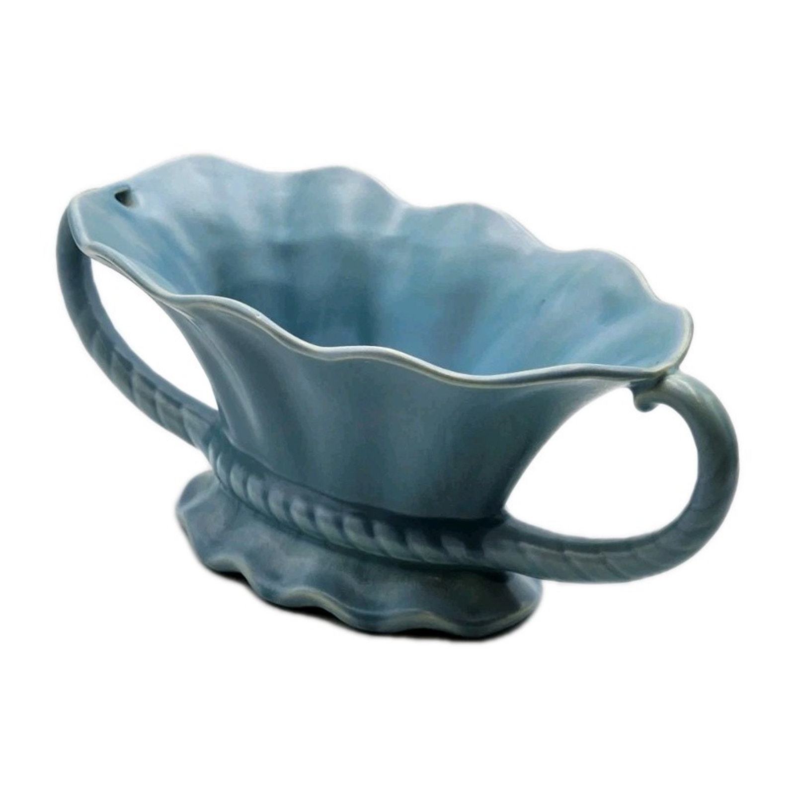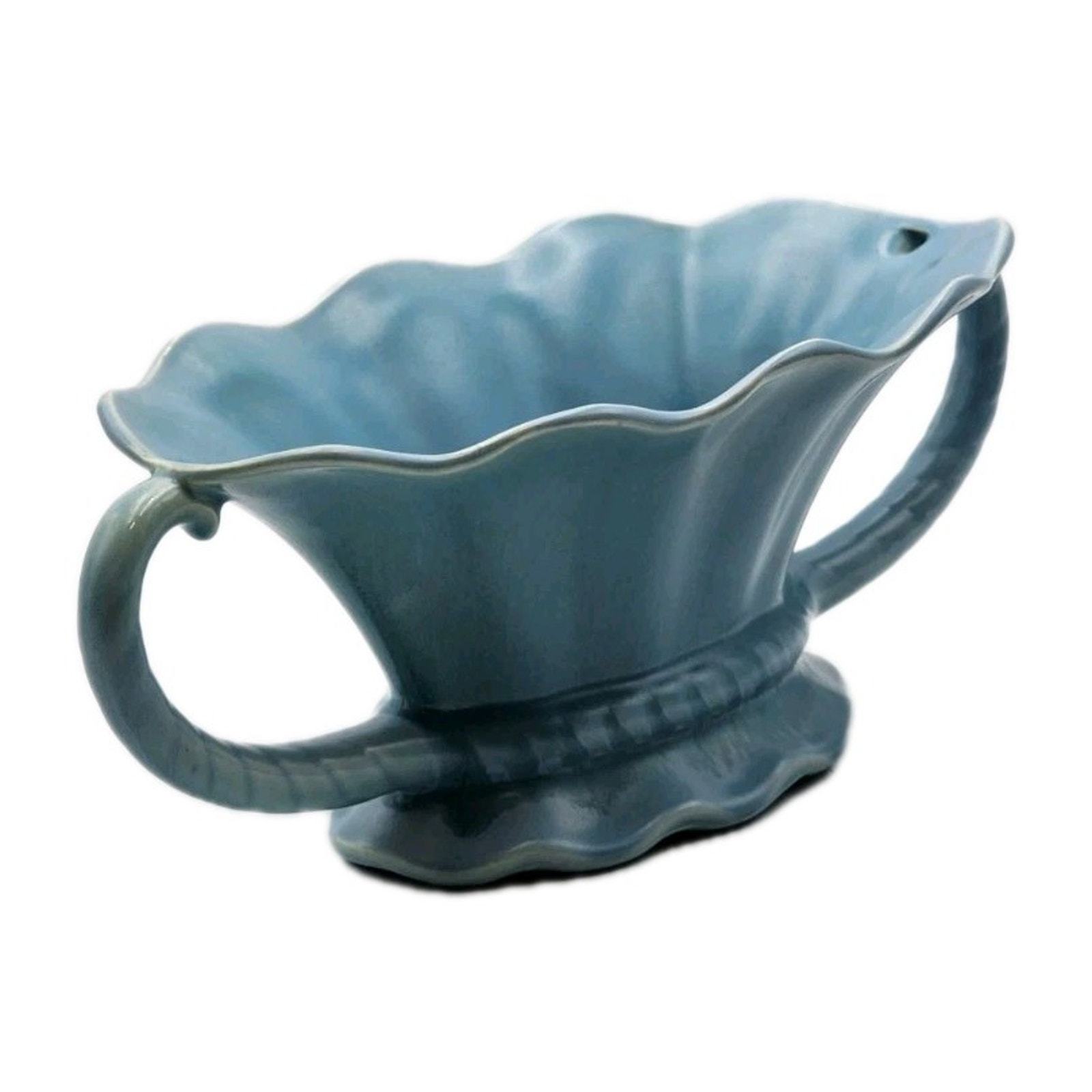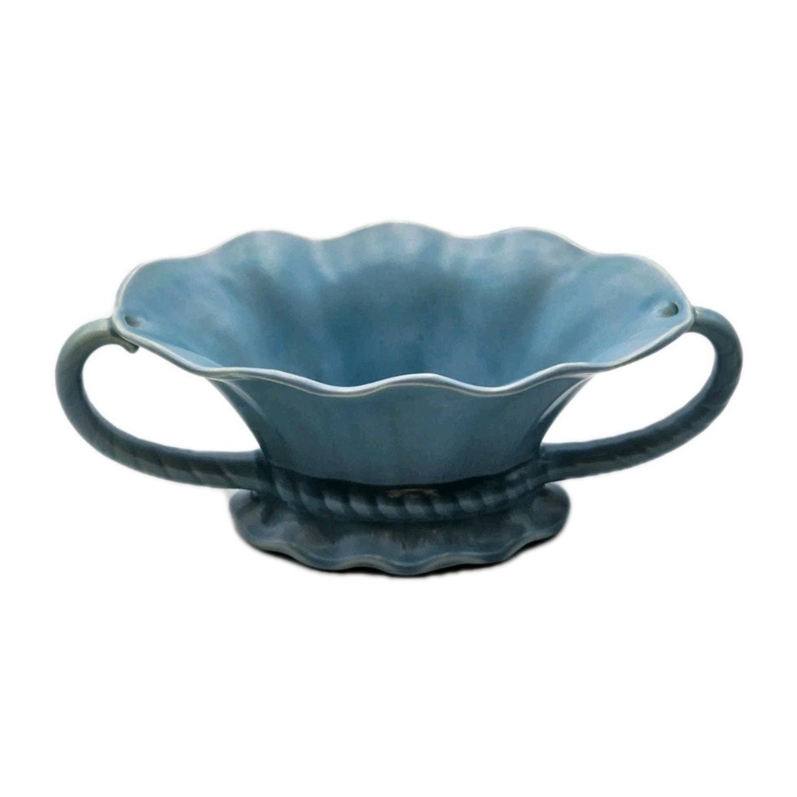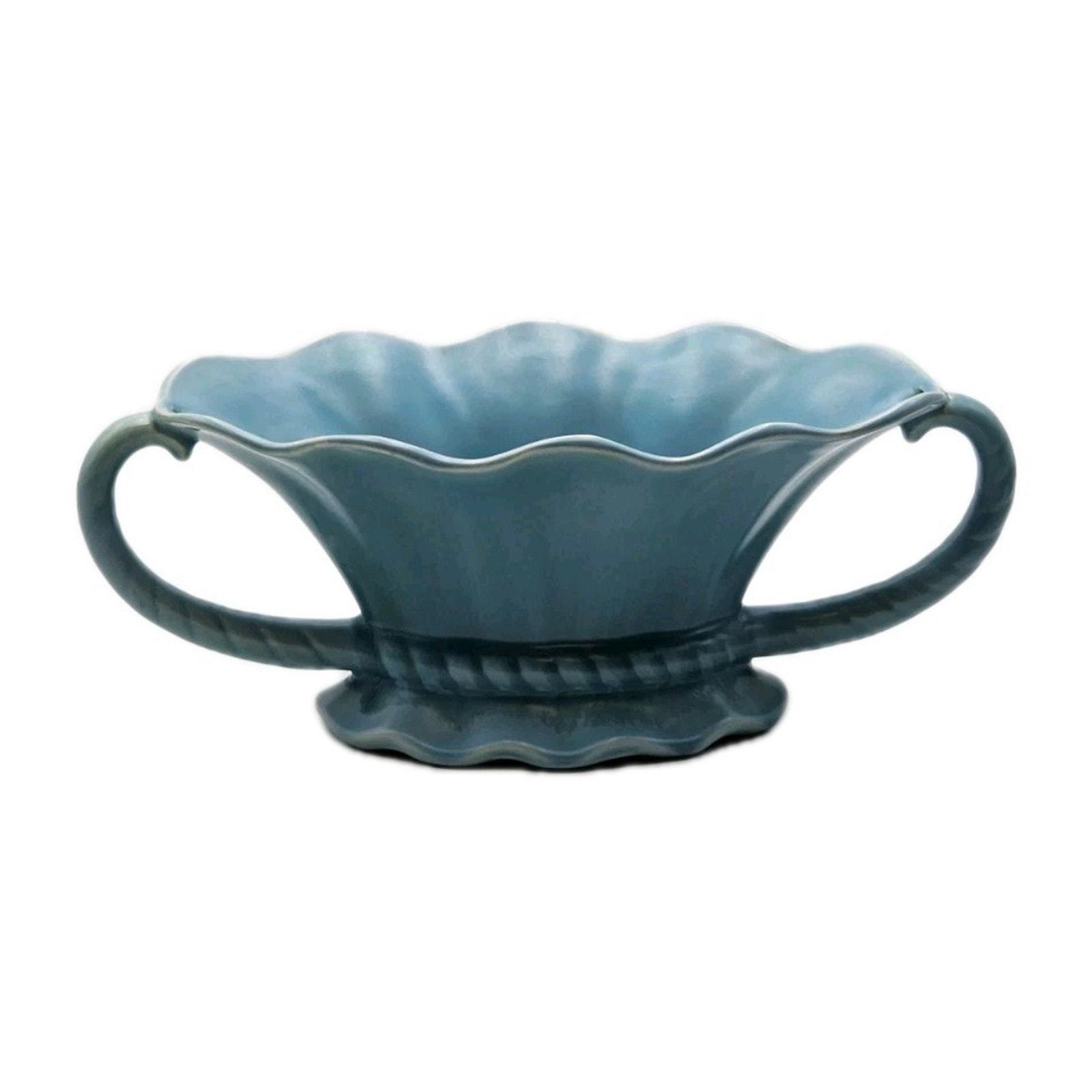 The STANGL Blue 11" Pottery Serving Bowl with 2 Handles is a vintage piece of American art pottery from the early 20th century. Made of clay and stoneware, this glossy blue bowl features a flower theme and a mid-century modern style. Handmade in the United States, this original Stangl piece is a unique and stylish addition to any dinnerware collection.