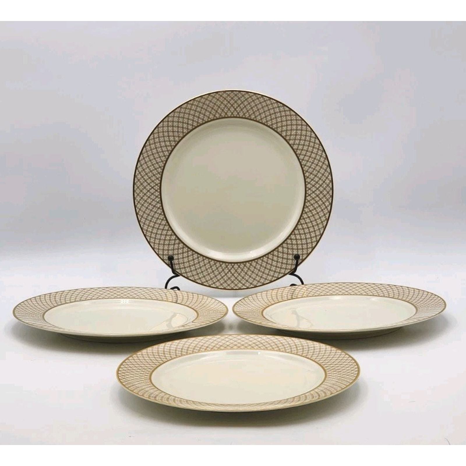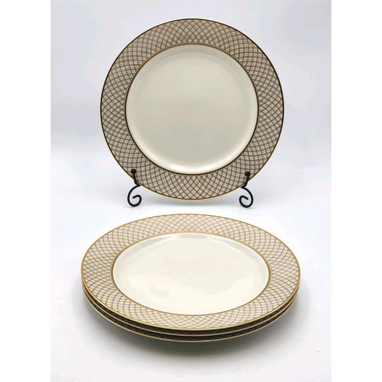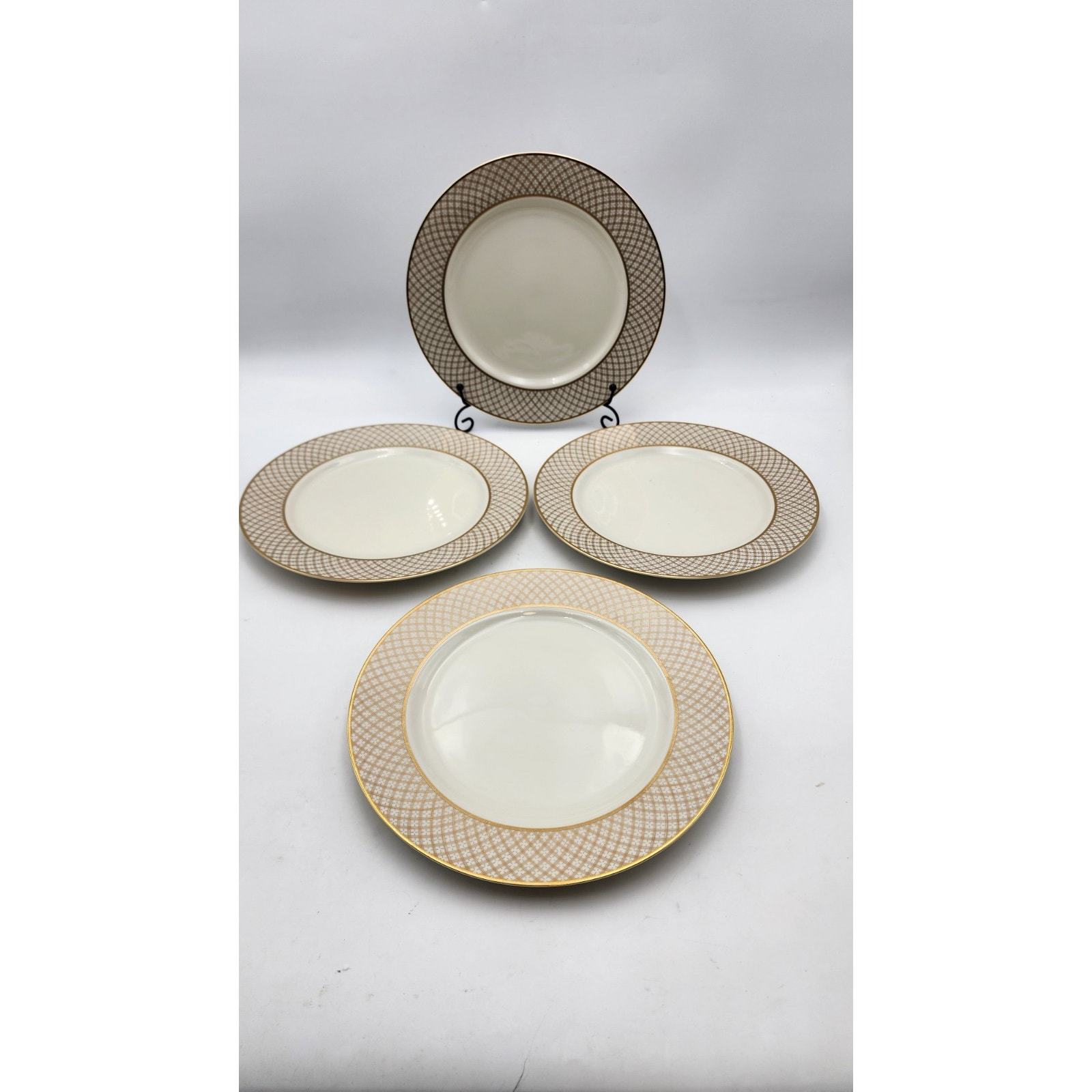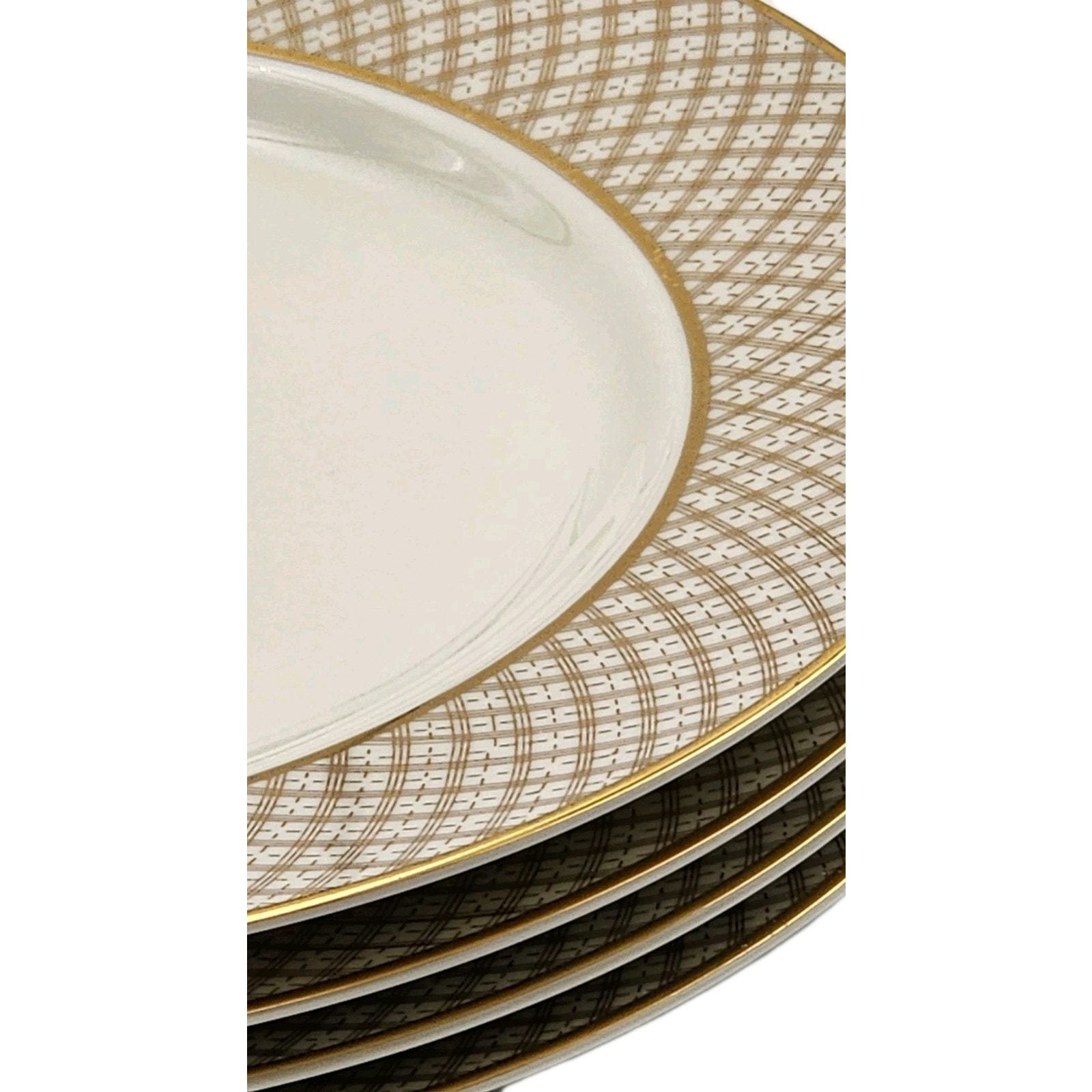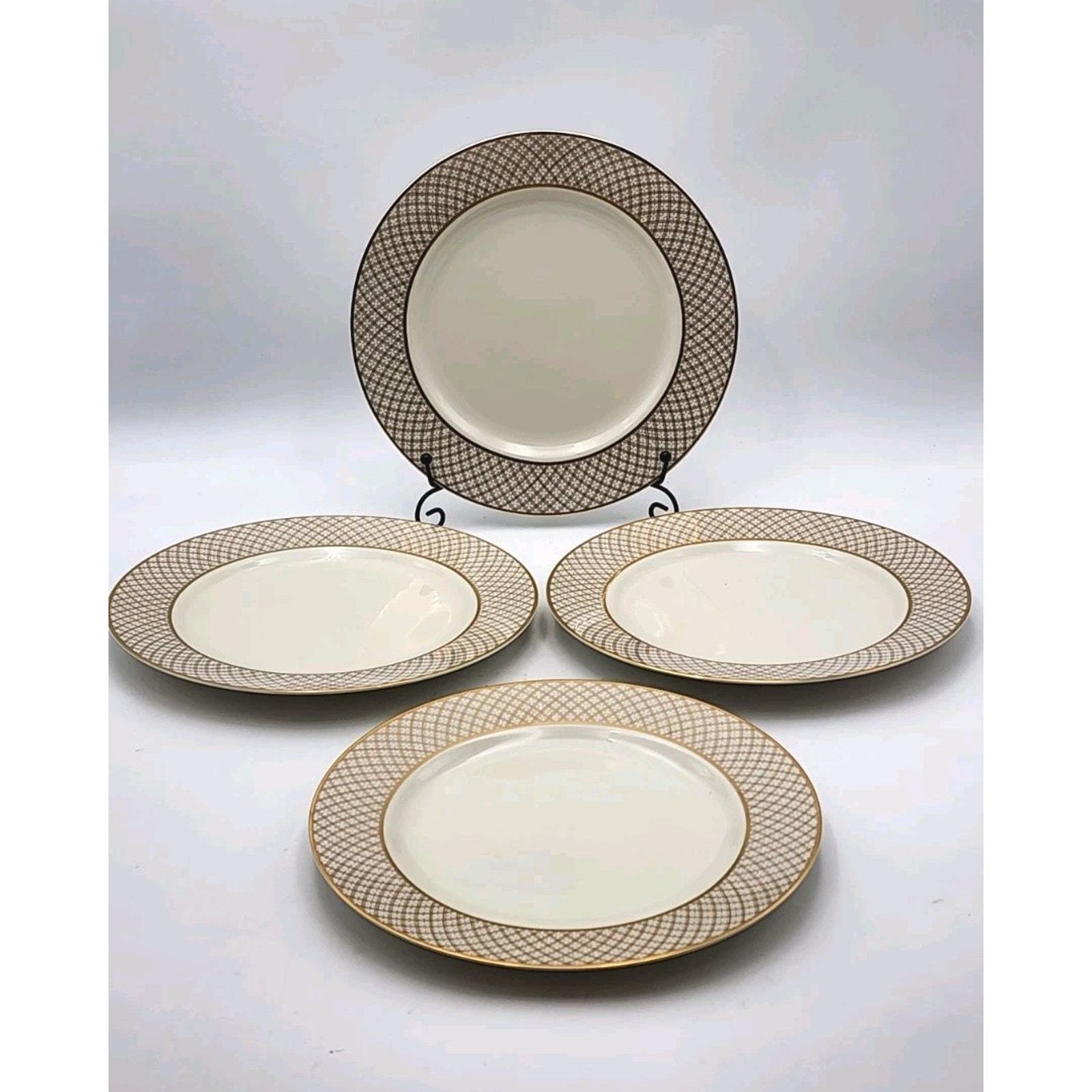 Fitz and Floyd Dynasty 10 1/4" Dinner Plates Set of 4 Gold and White VTG 1985