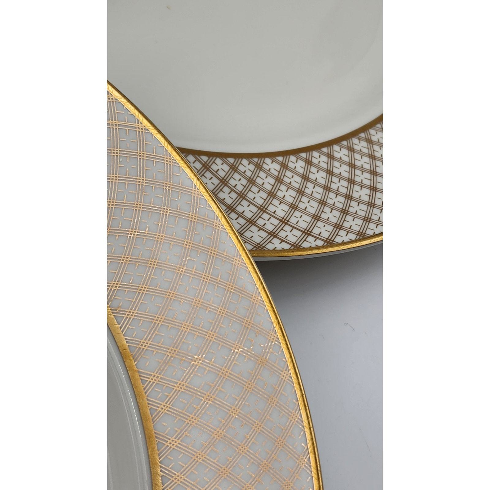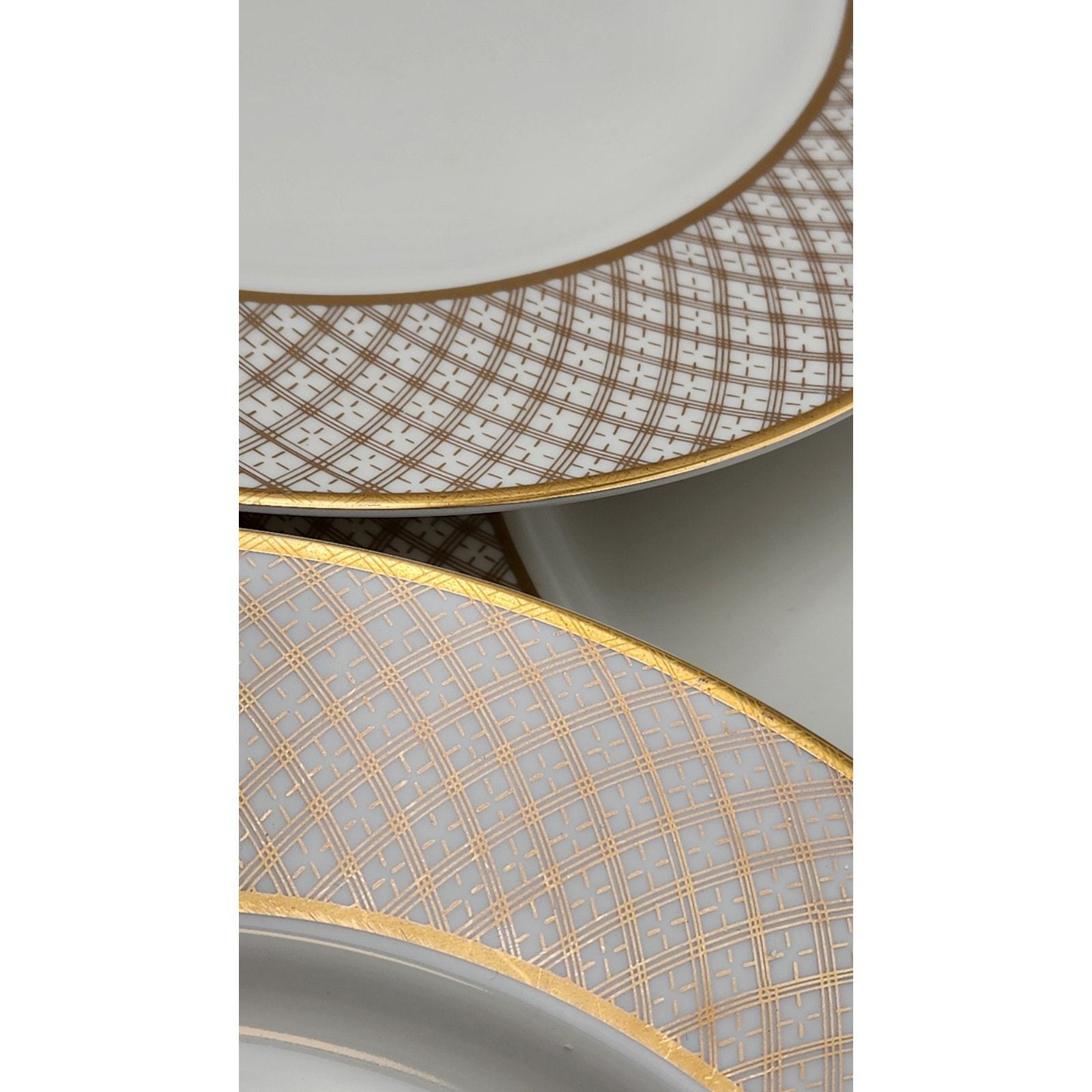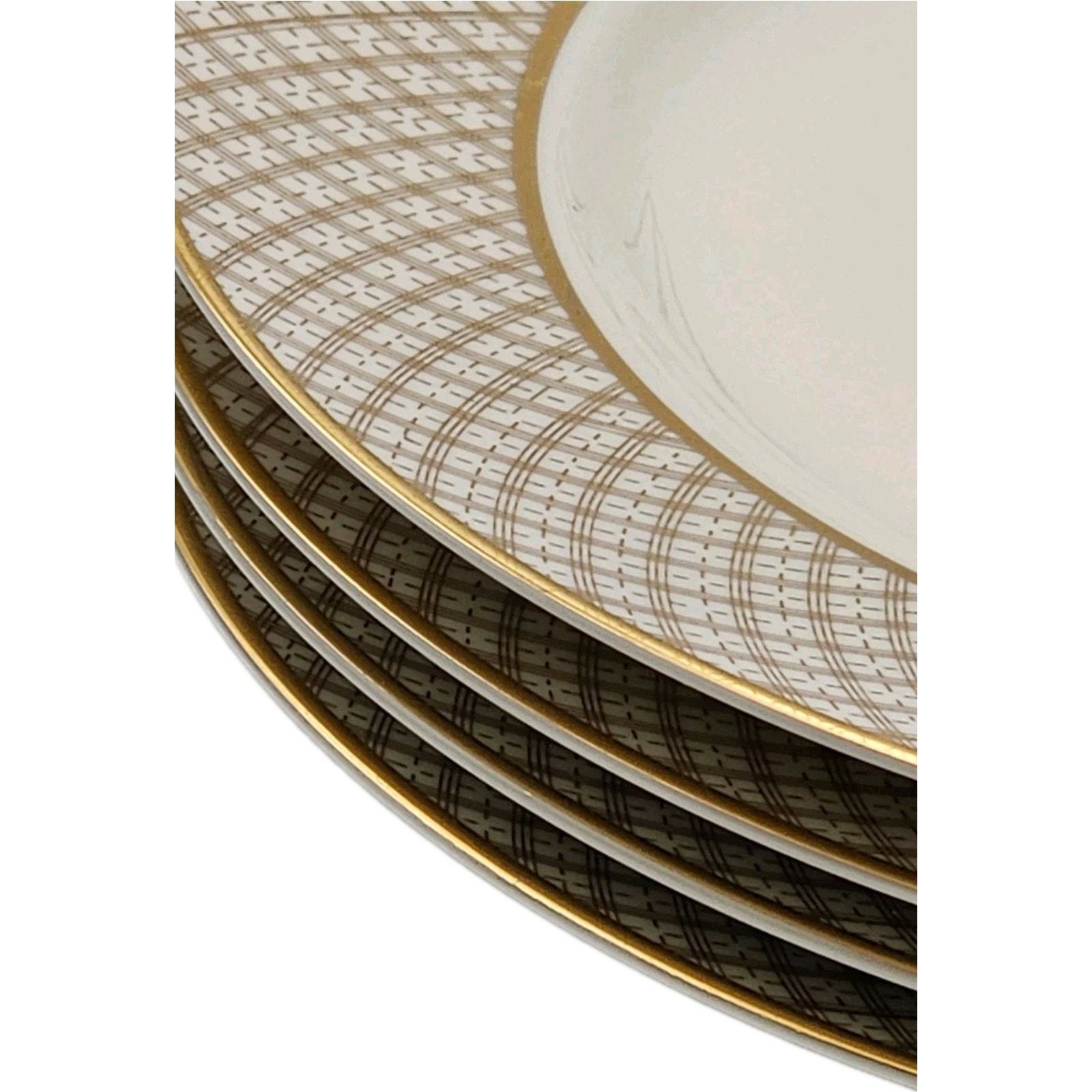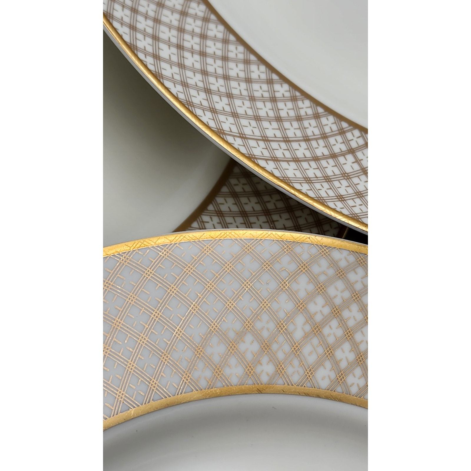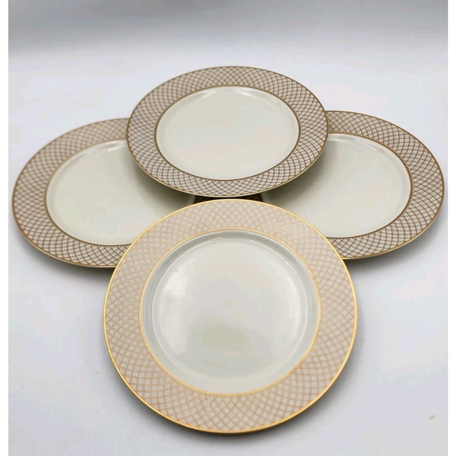 Fitz and Floyd Dynasty 10 1/4" Dinner Plates Set of 4 Gold and White VTG 1985