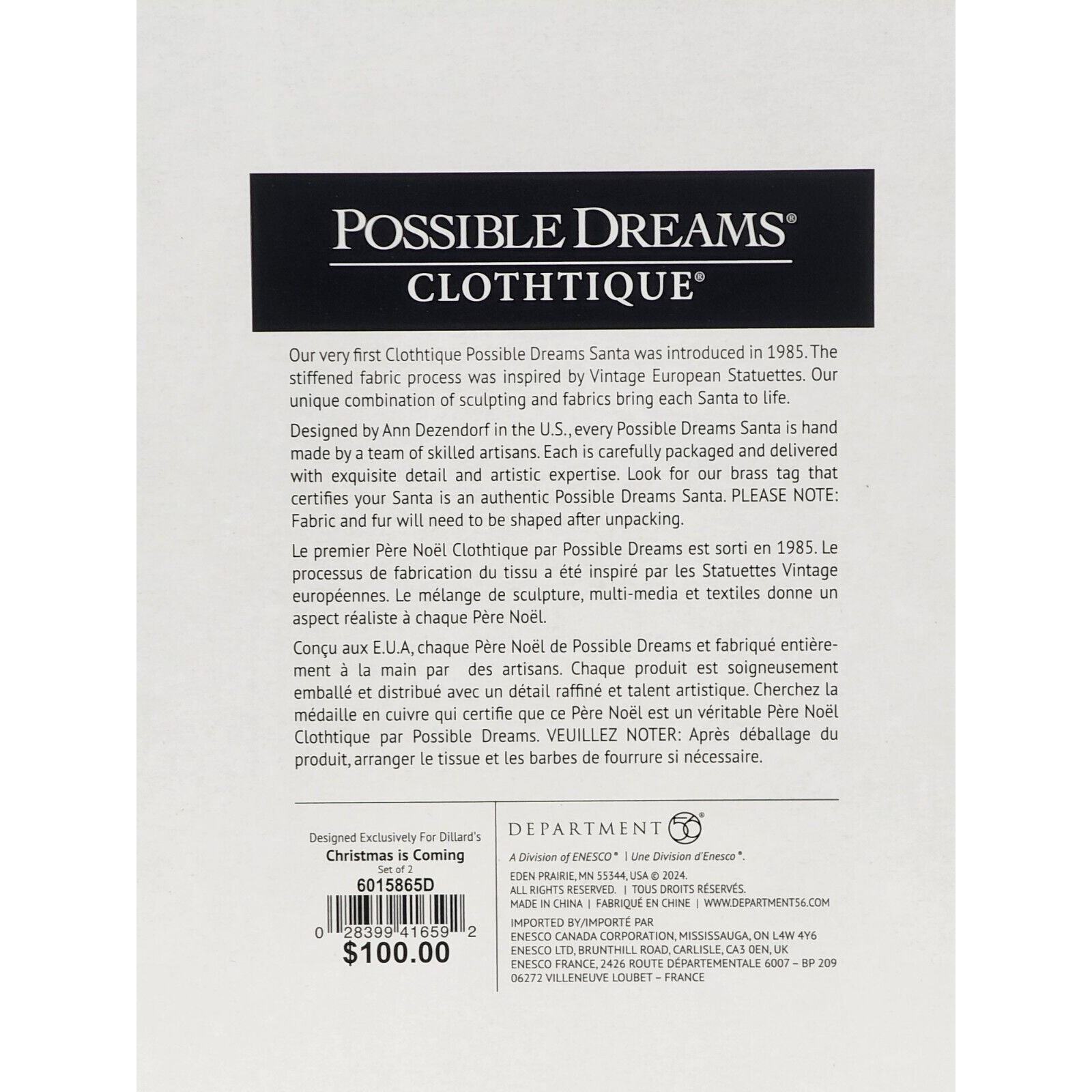 Dept. 56 Possible Dreams Clothtique Christmas Is Coming 6015856D Brand New Boxed
