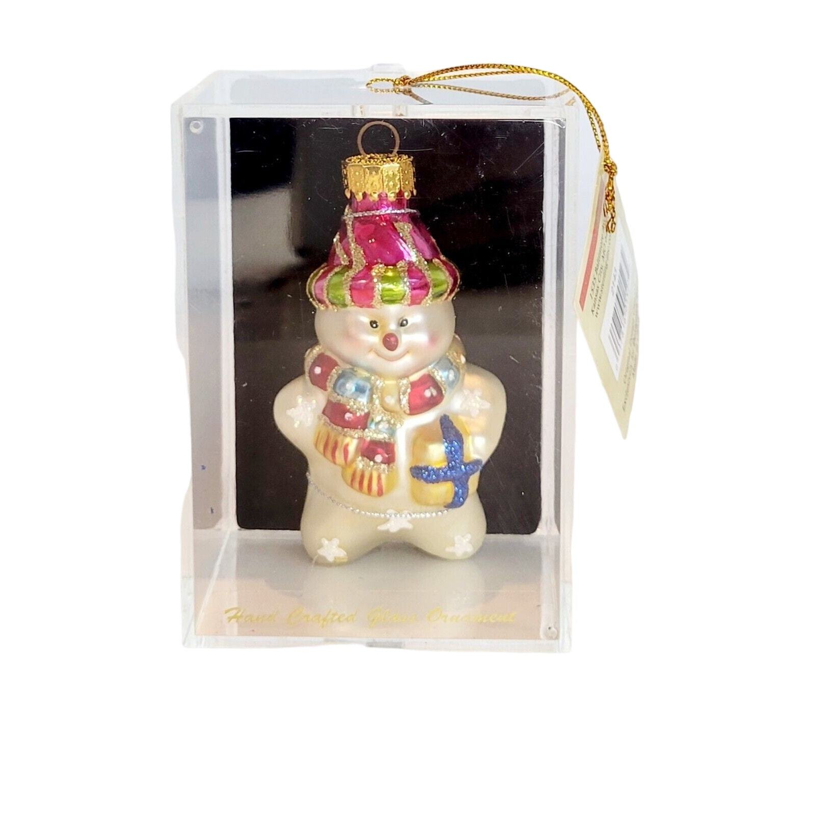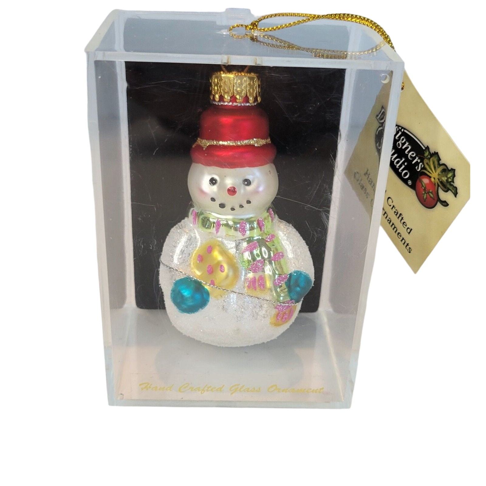 VTG Designers Studio CHRISTMAS SNOWMAN Hand Crafted Glass Ornaments LOT OF 4