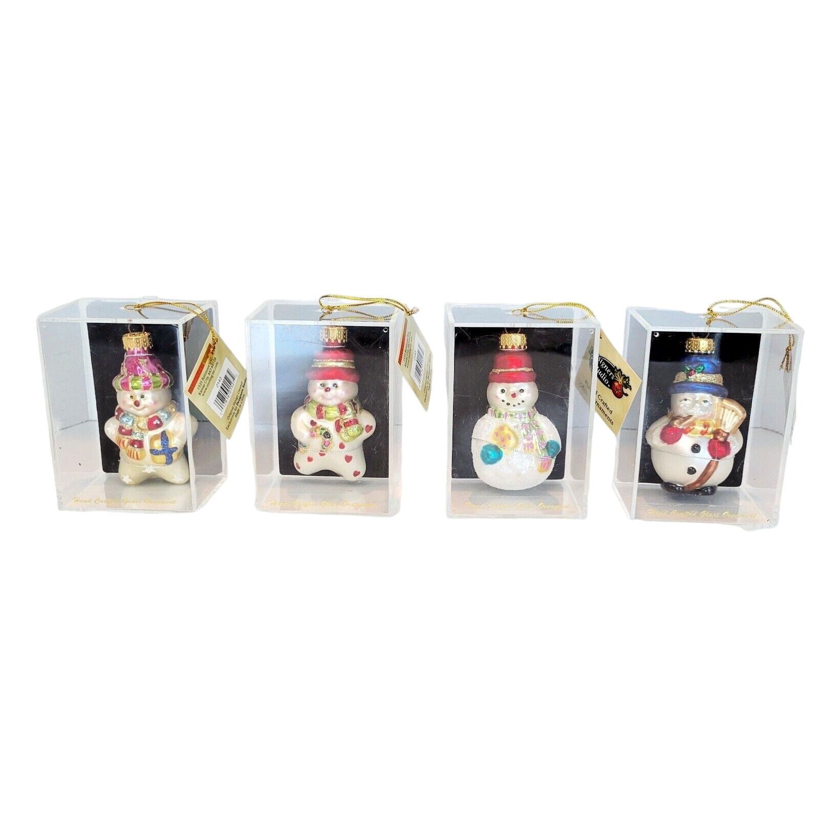 Vintage Designers Studio Hand Crafted Glass Ornaments - Set of 4. Snowmen