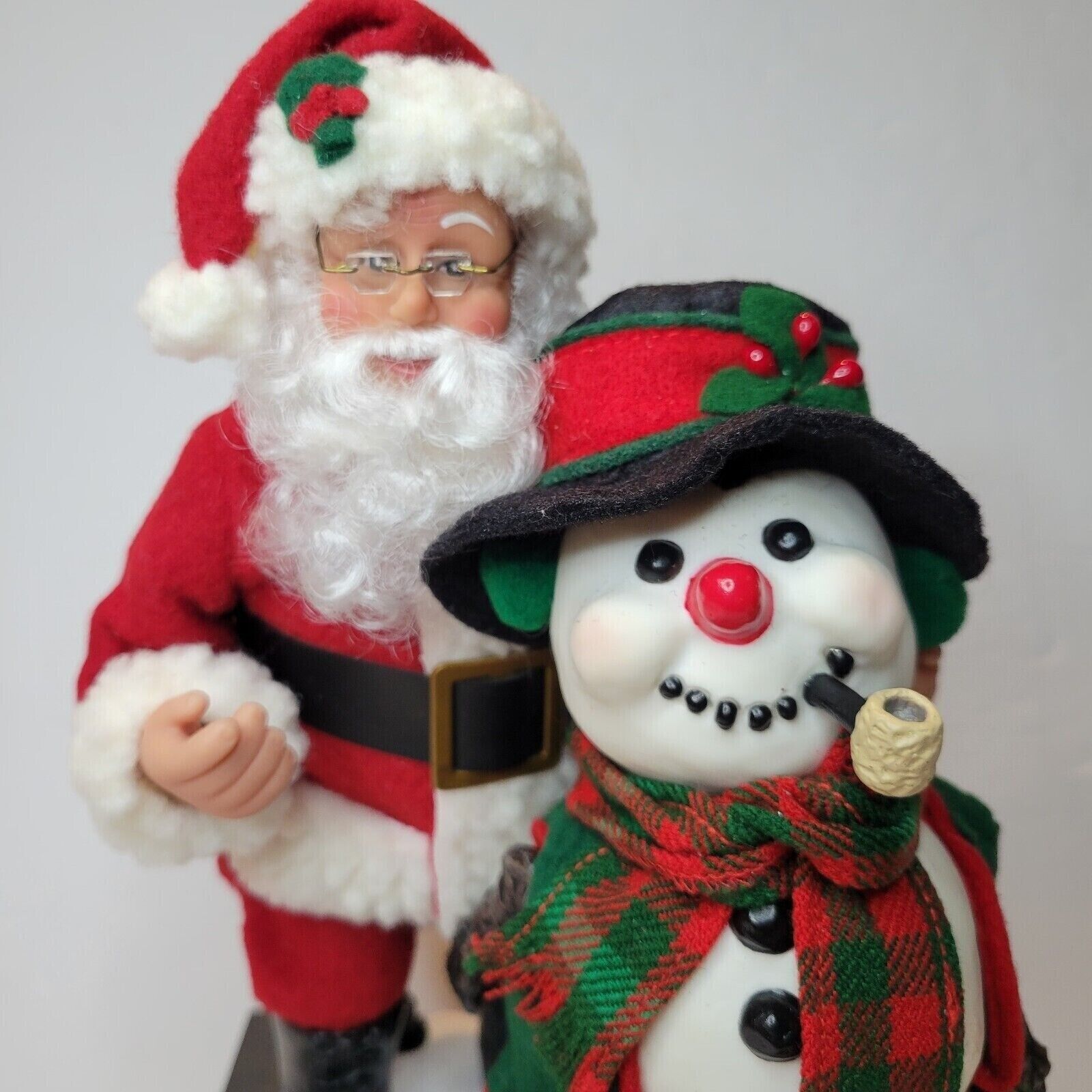 Holiday Creations Scene Santa & Snowman Musical Lights Up Plays Music Vintage