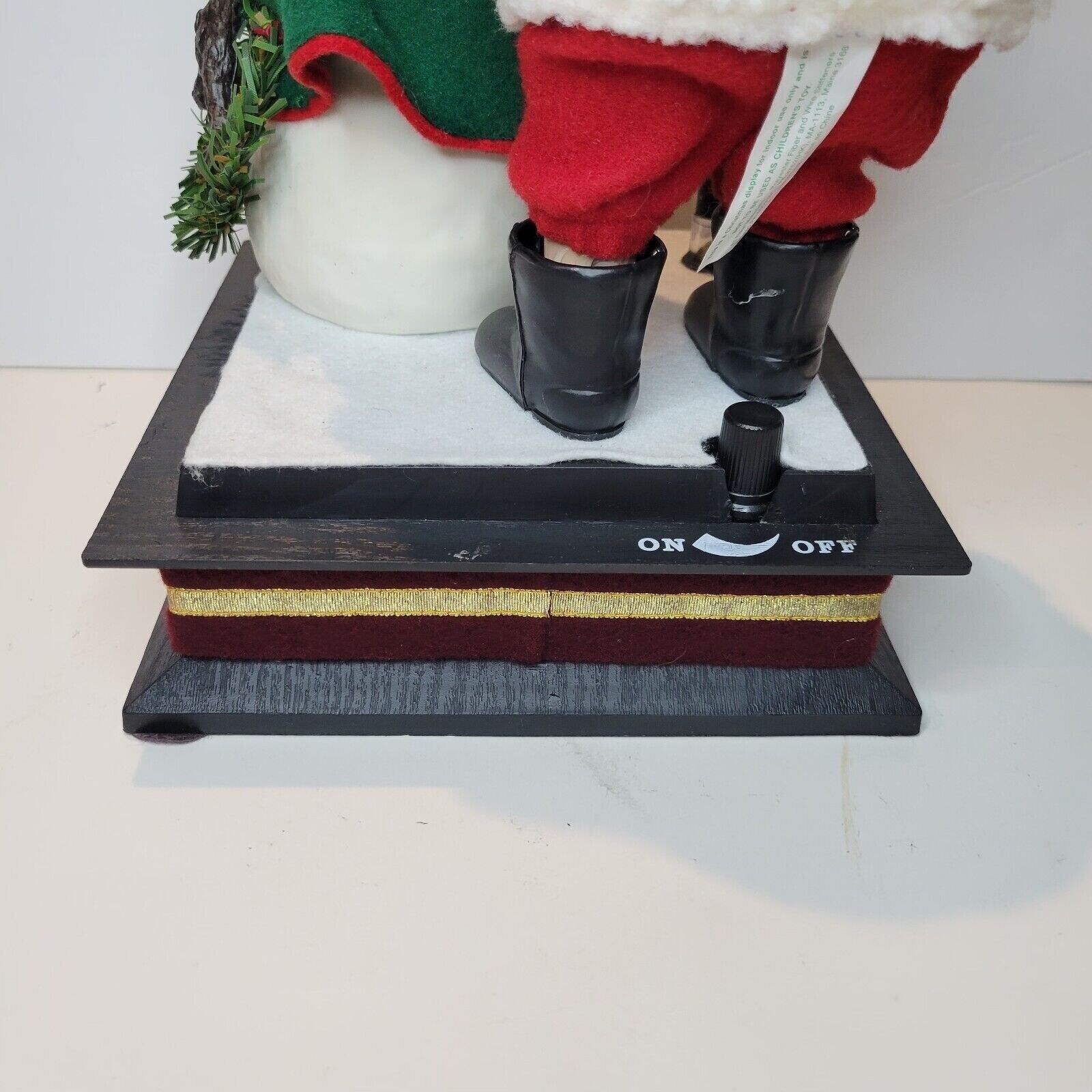 Vintage Musical Holiday Scene Santa And Snowman. Condition is "Used?. Santa with snowman has lamp on platform that lights up. Plays 18 Christmas tunes, takes 2 C batteries , and has on and off switch. Excellent condition! No Box