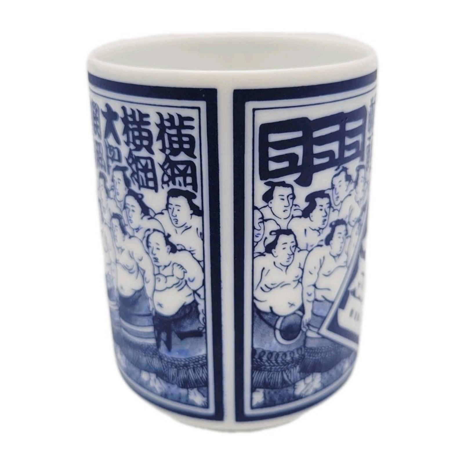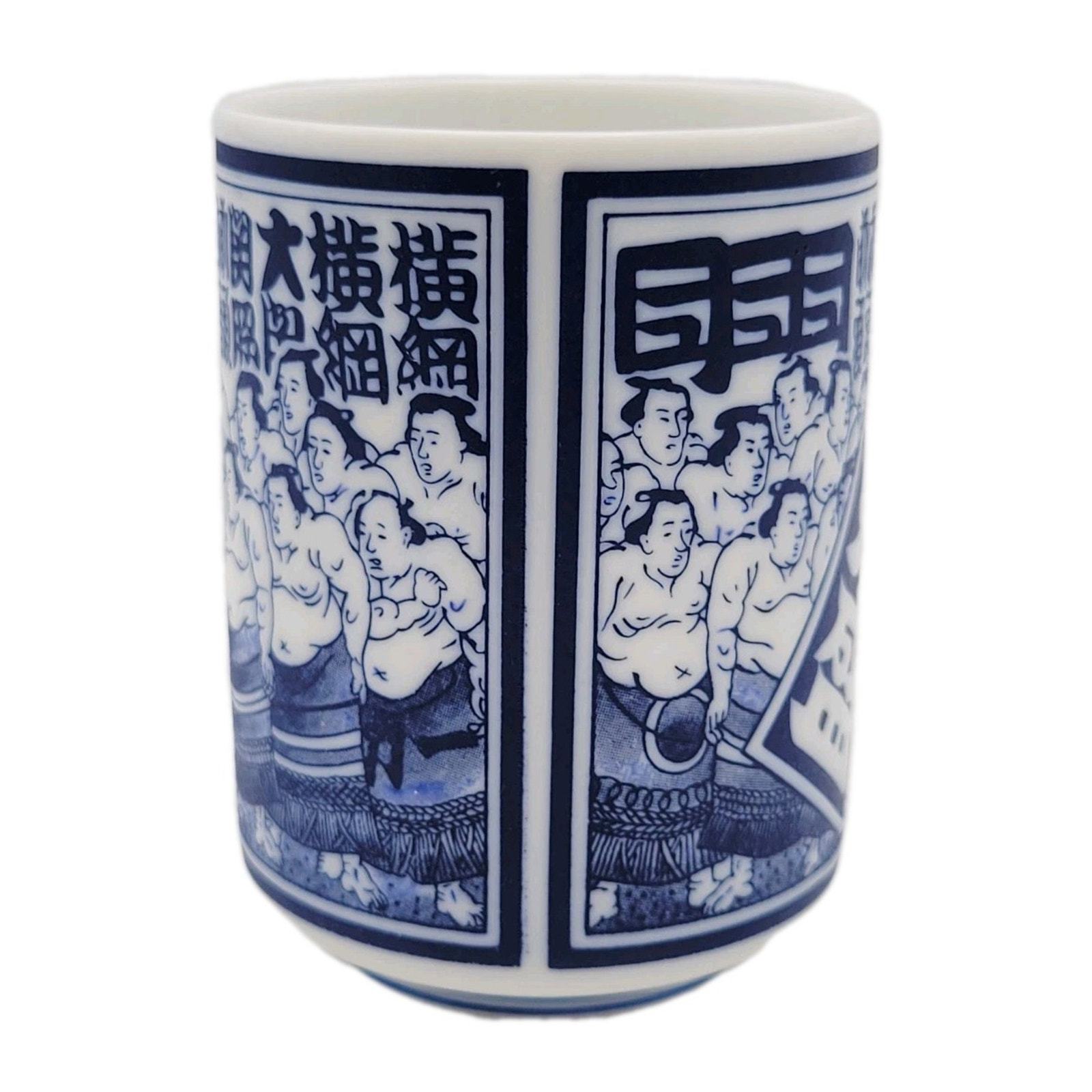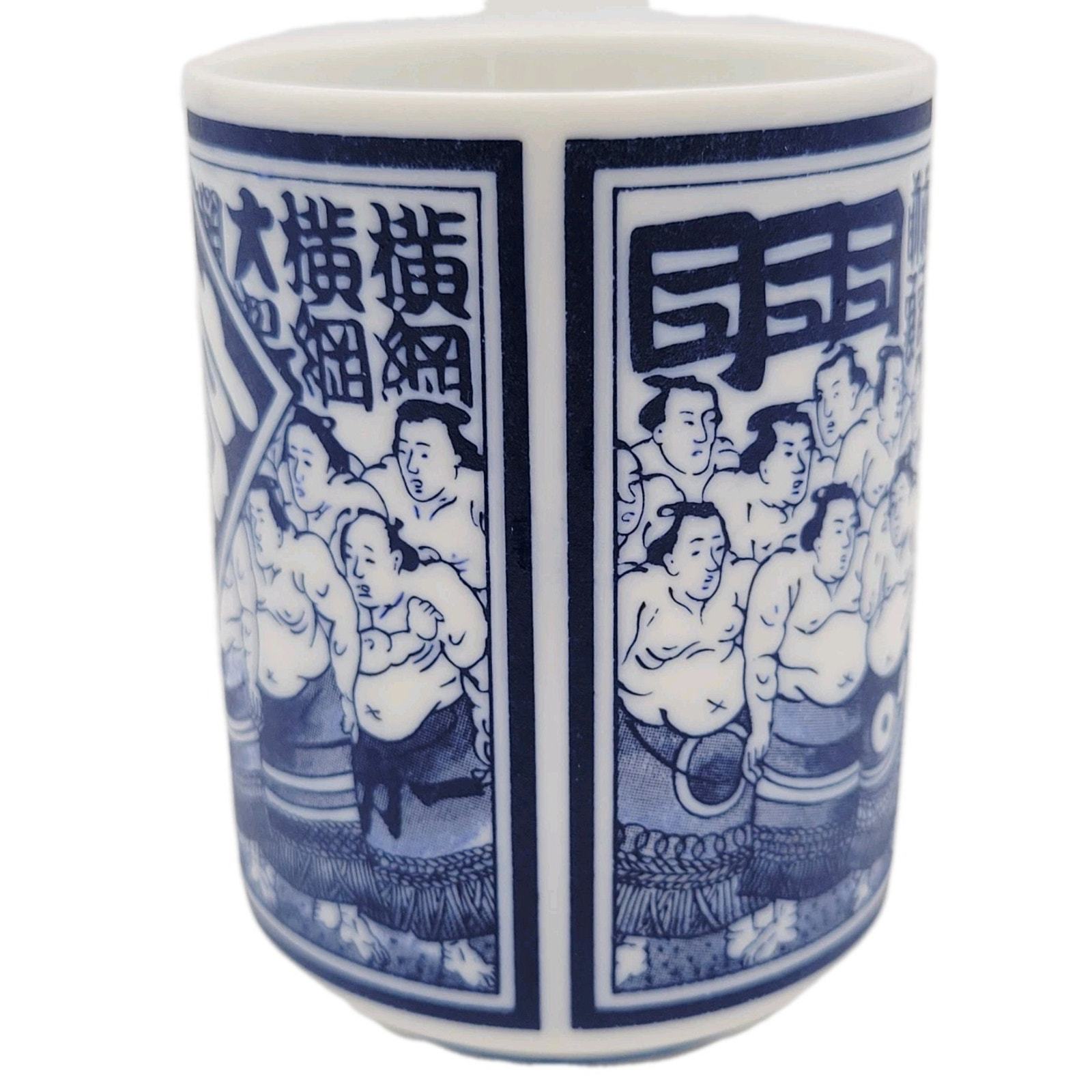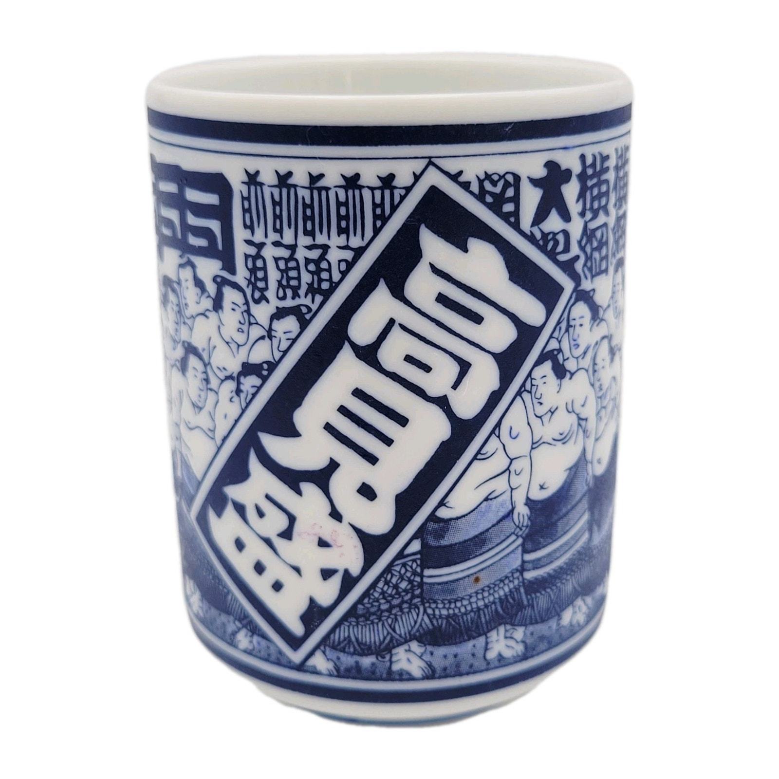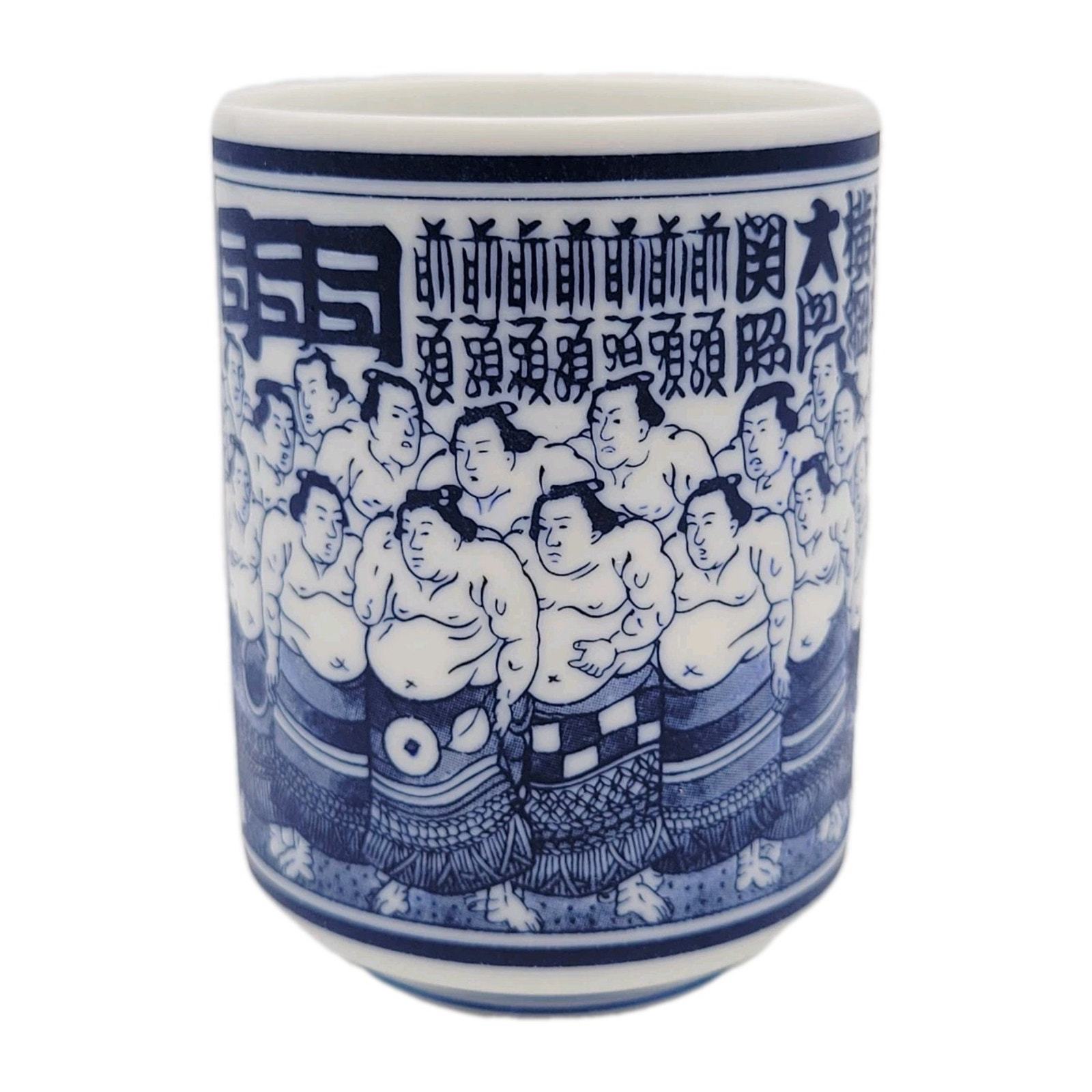 This vintage tea cup from Japan is handmade and features intricate designs inspired by sumo wrestler Takanonami. With its unique craftsmanship and cultural significance, this teacup would make a valuable addition to any collection of Japanese collectibles. Made by an unknown brand in Japan, this piece embodies the traditional artistry and craftsmanship of Japanese culture.