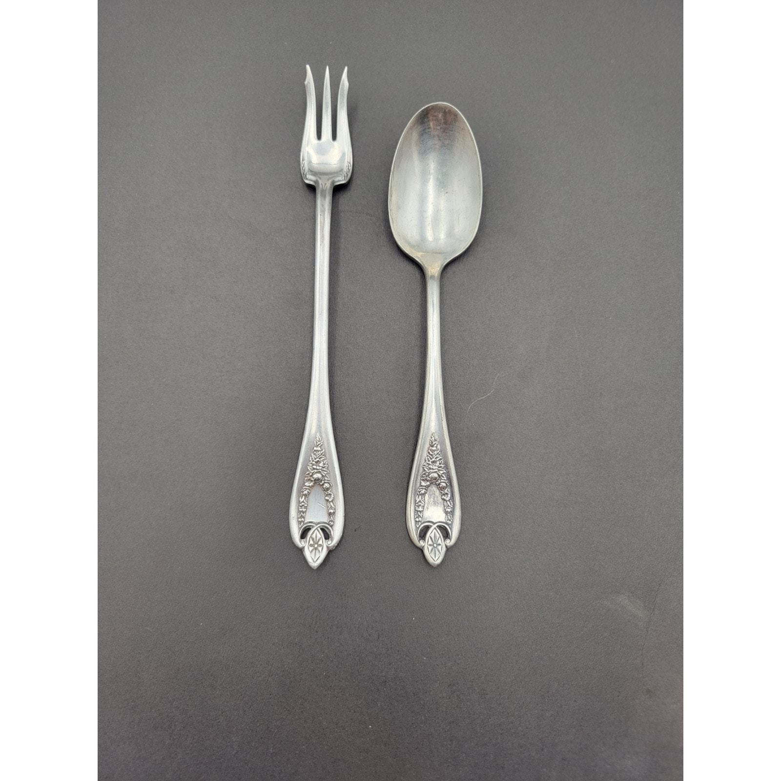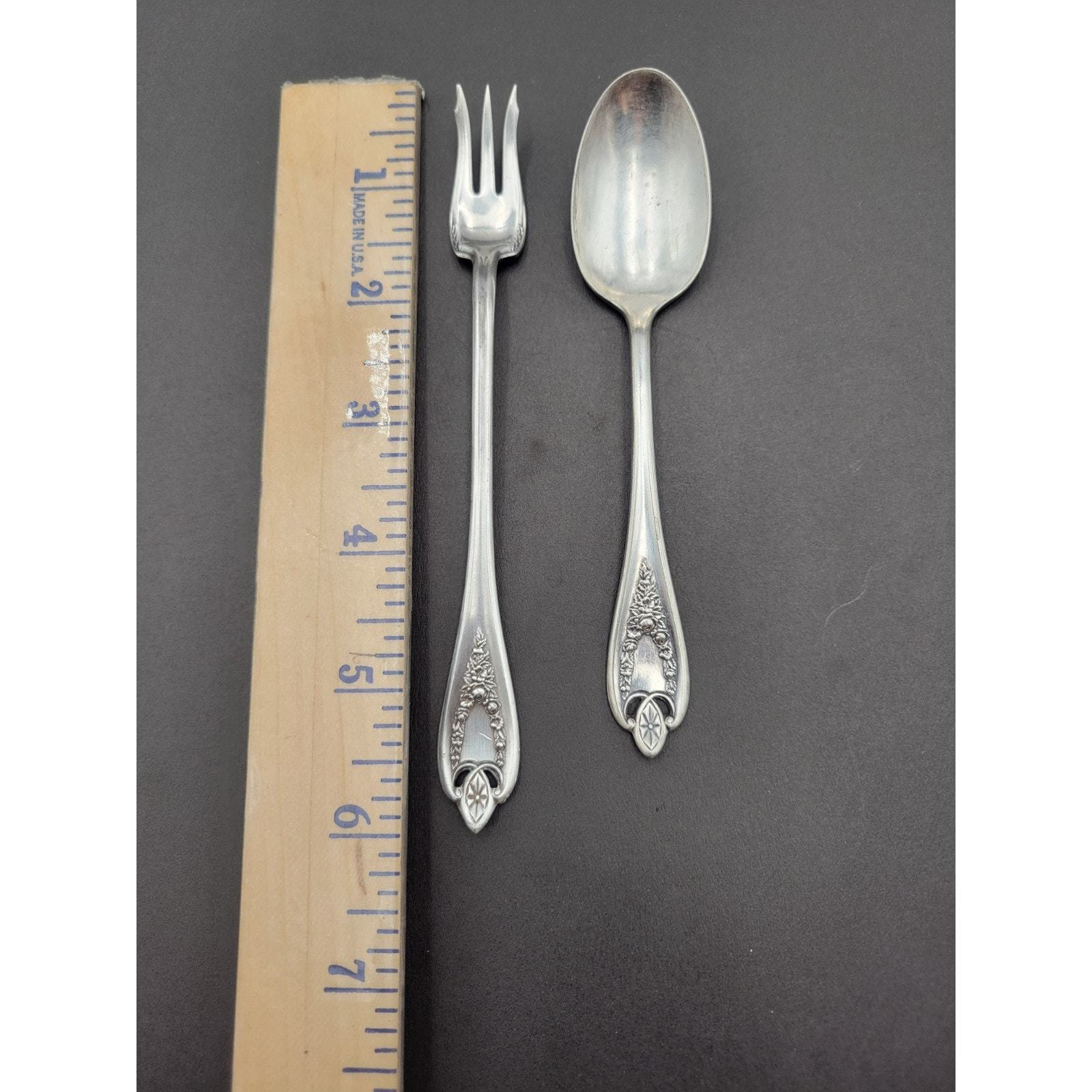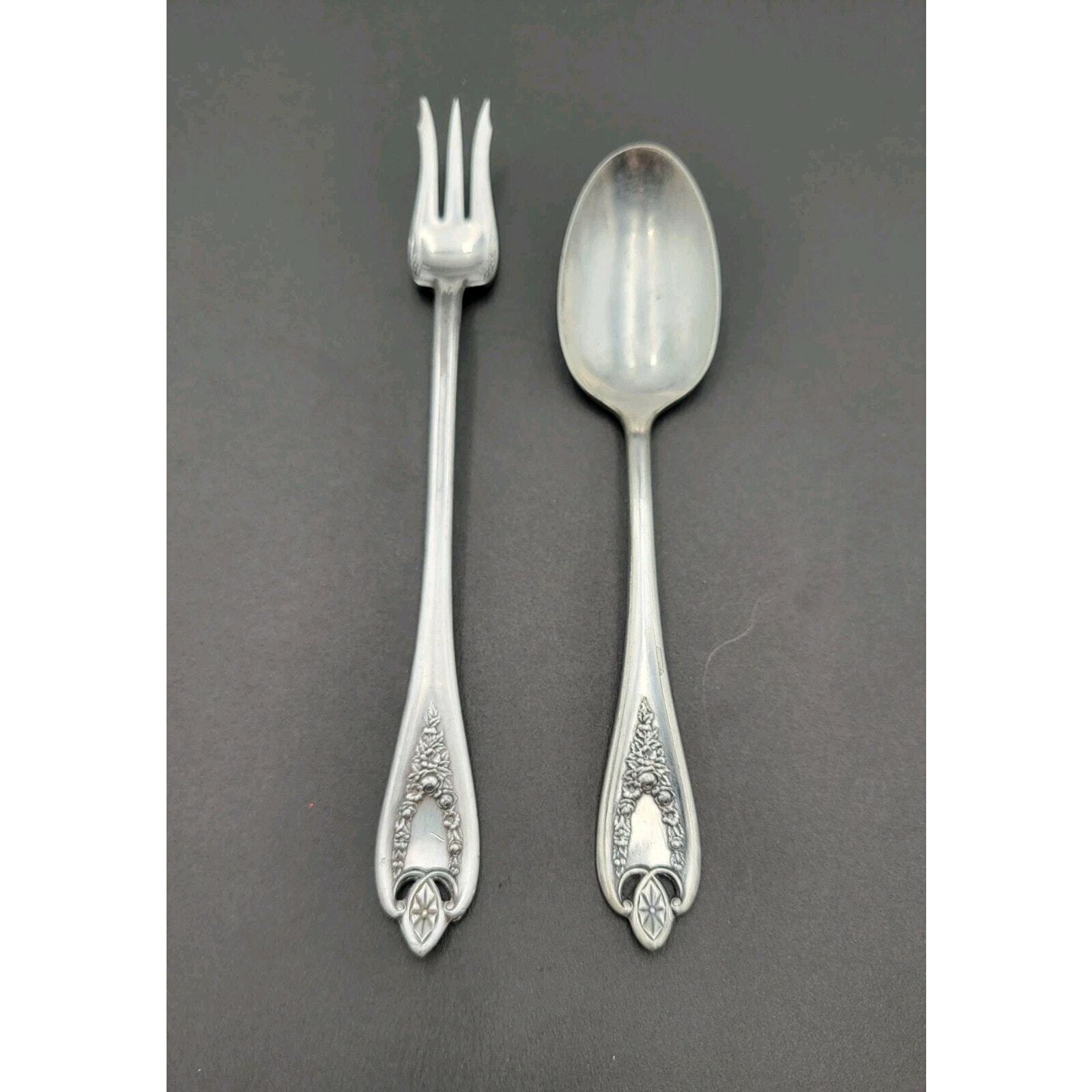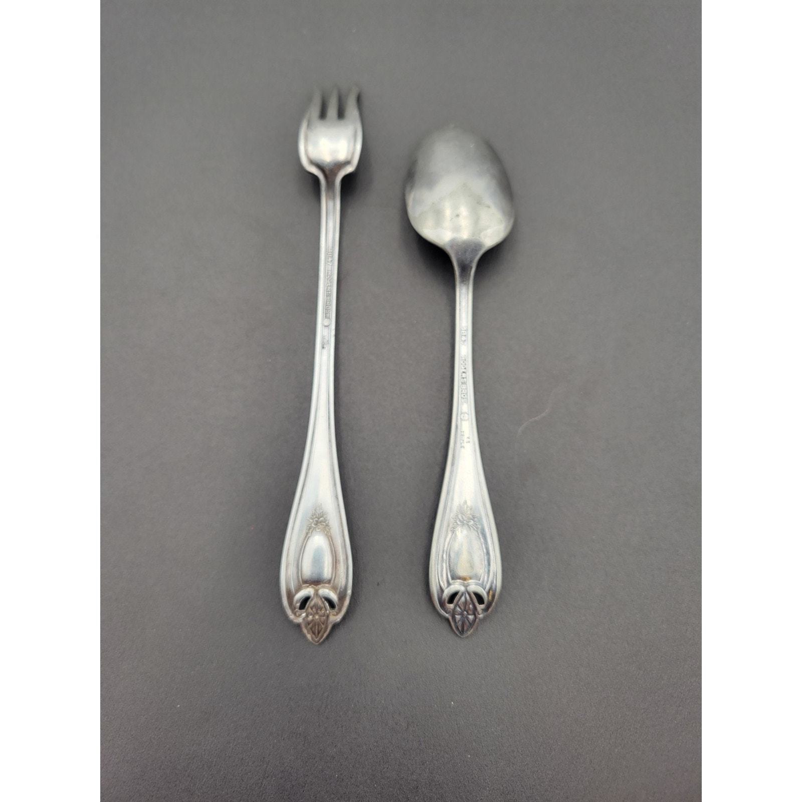 1847 Rogers Bros XS Triple Old Colony Pattern Set 2 Cocktail Fork & Spoon Vtg