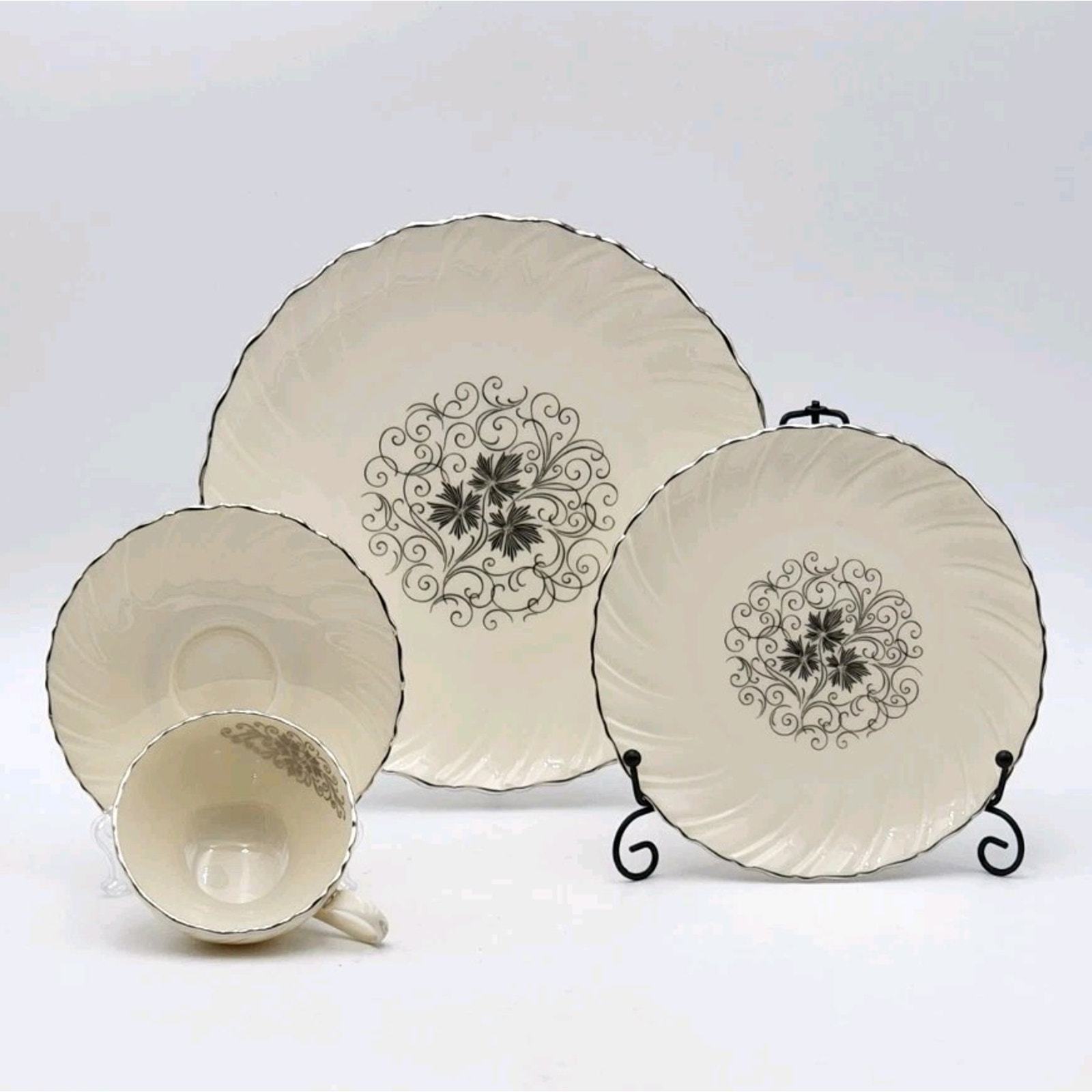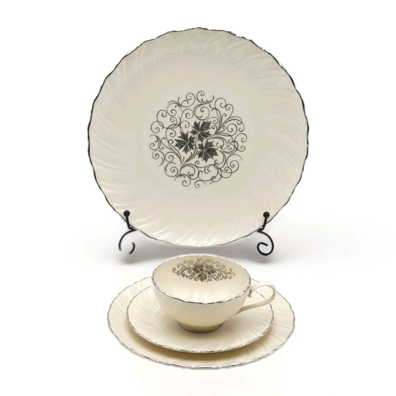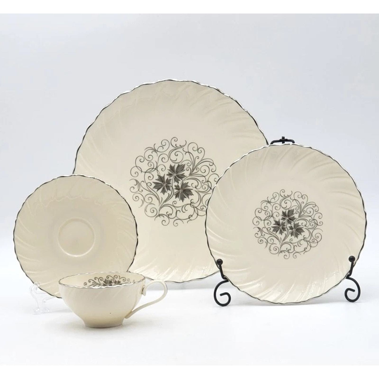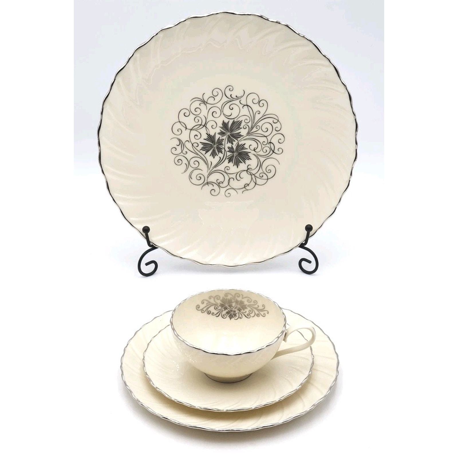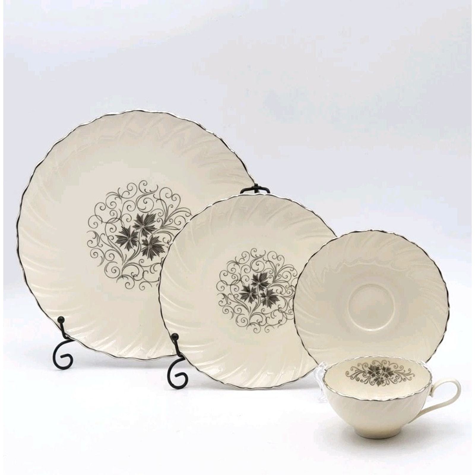 Lenox Valera 4 Piece Place Setting Platinum Trim 1961-77 Fine Porcelain
