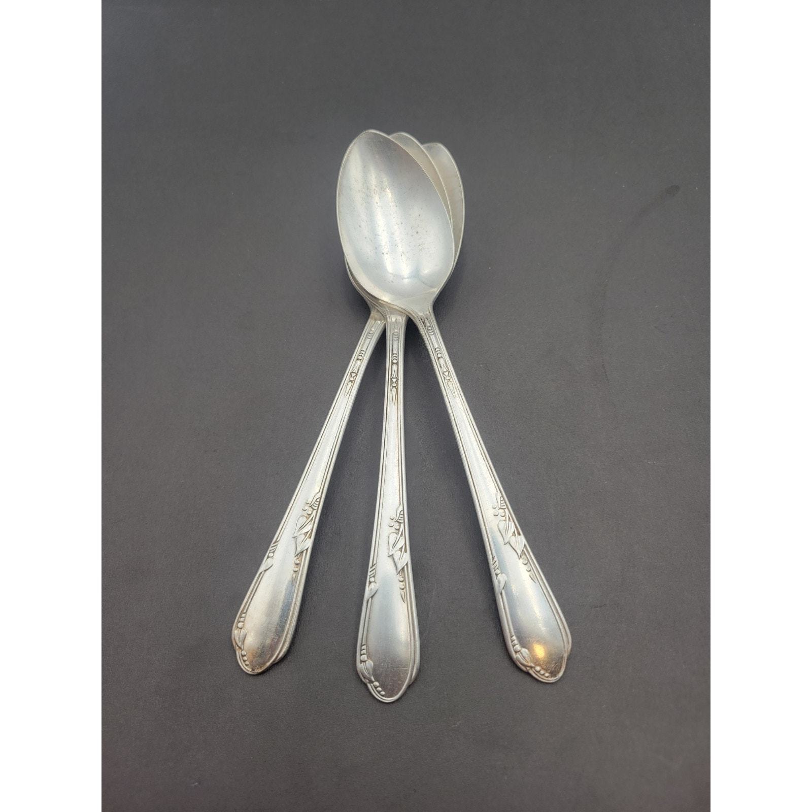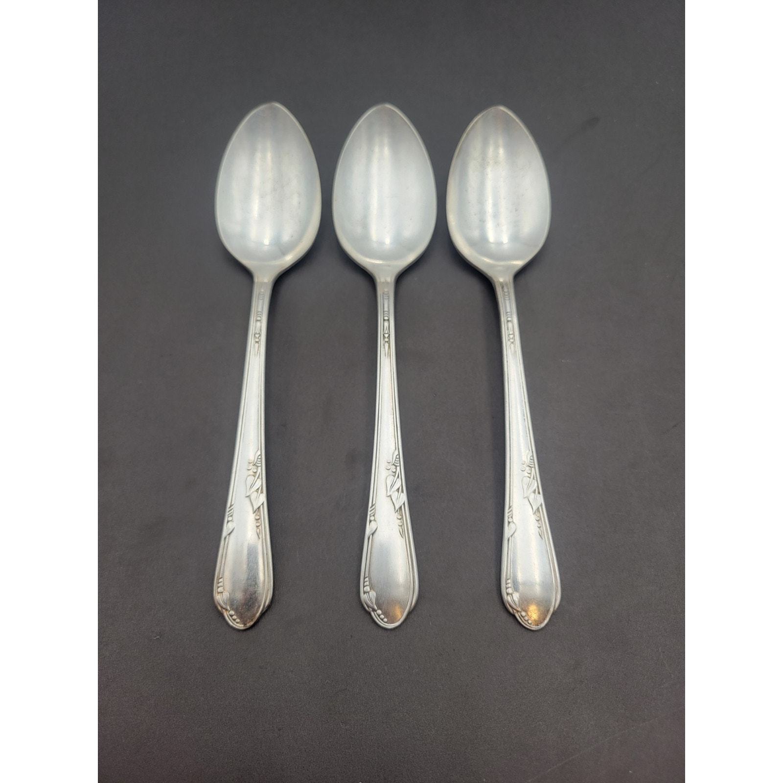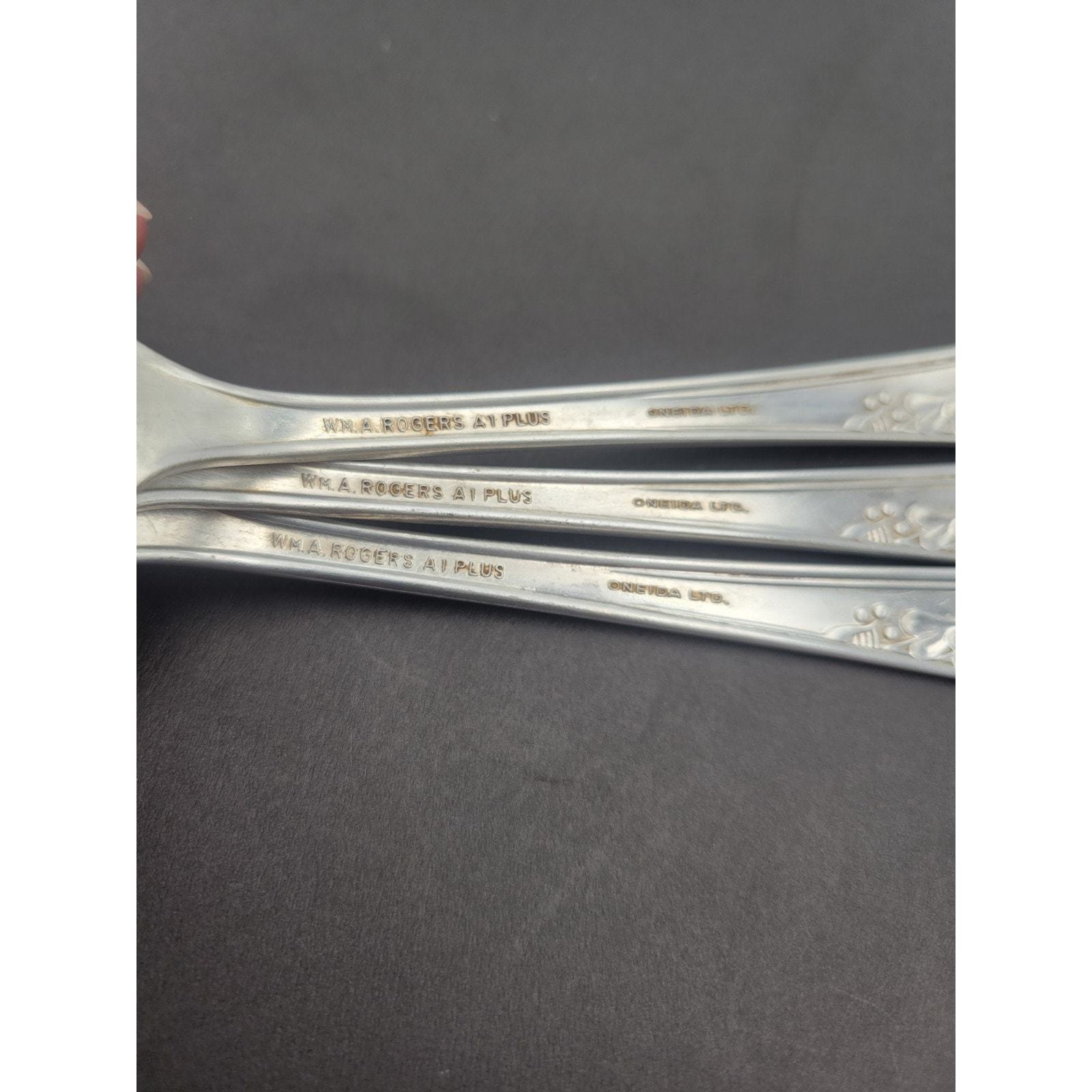 Wm. Rogers A1+ Oneida Ltd 1936 Meadowbrook Heather Silverplate Oval Spoon SET 3