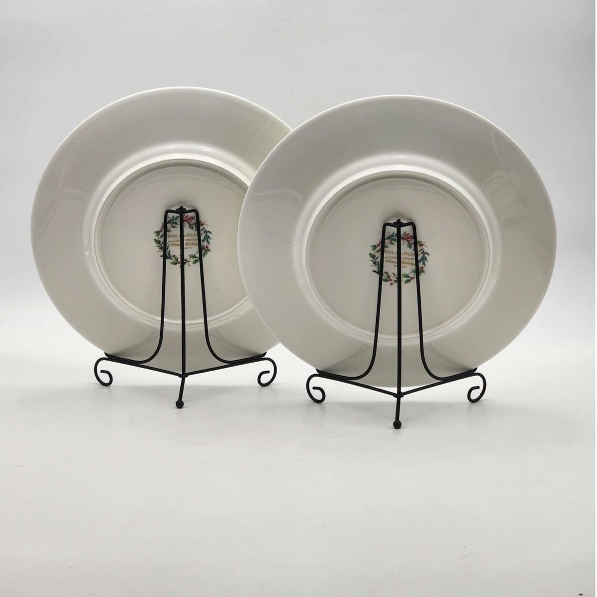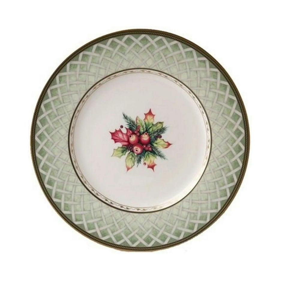 Add a touch of holiday cheer to your table with this set of 2 Fitz and Floyd 12 inch serving plates. Featuring a beautiful wreath design, these plates are perfect for your Christmas and winter meals. Made by a renowned brand, these plates are of high quality and will last for years to come.