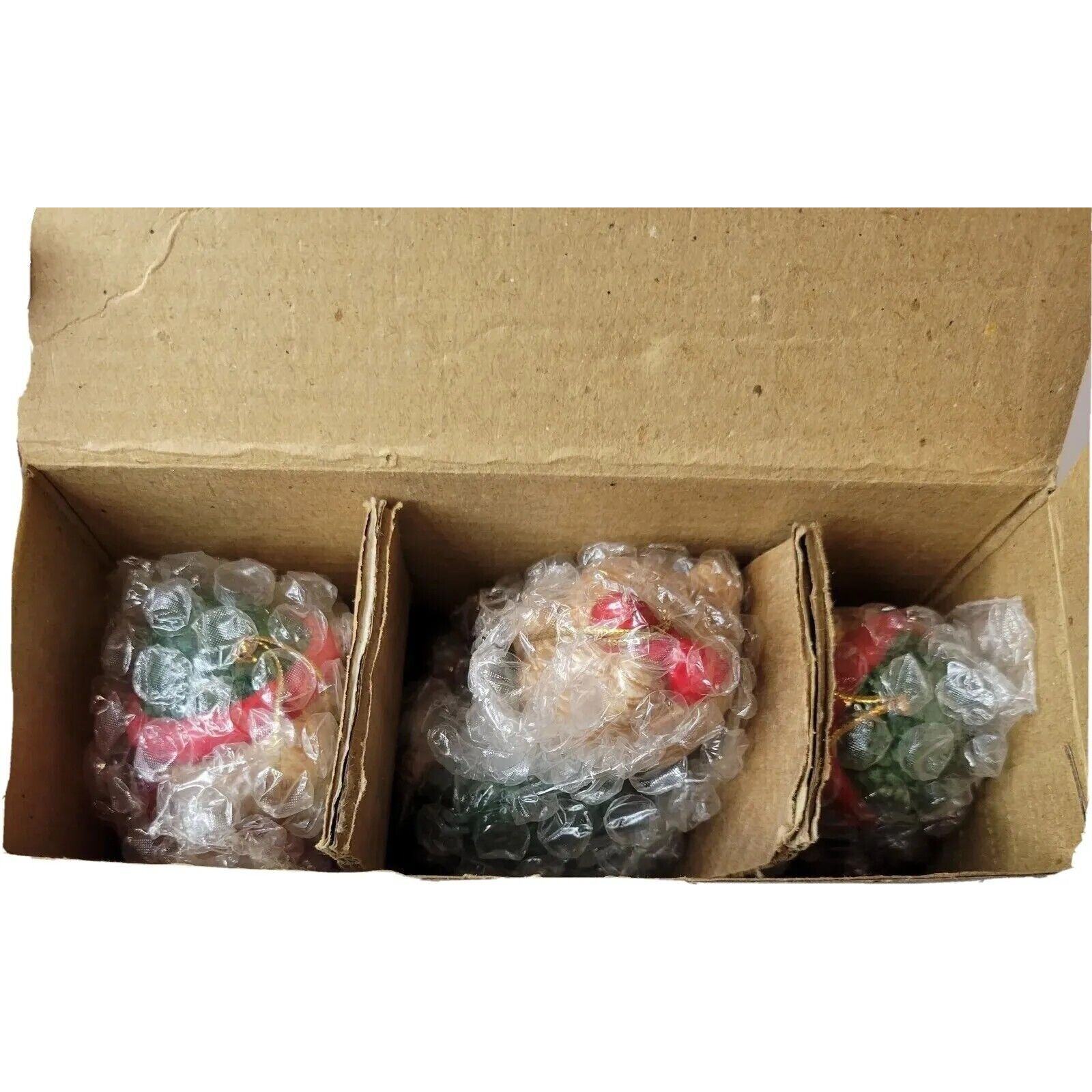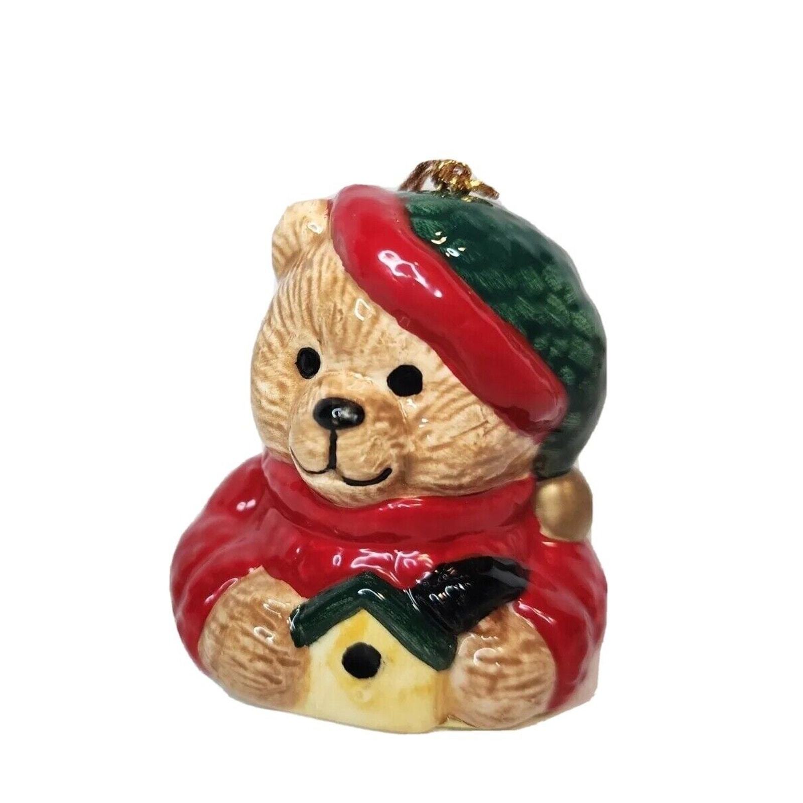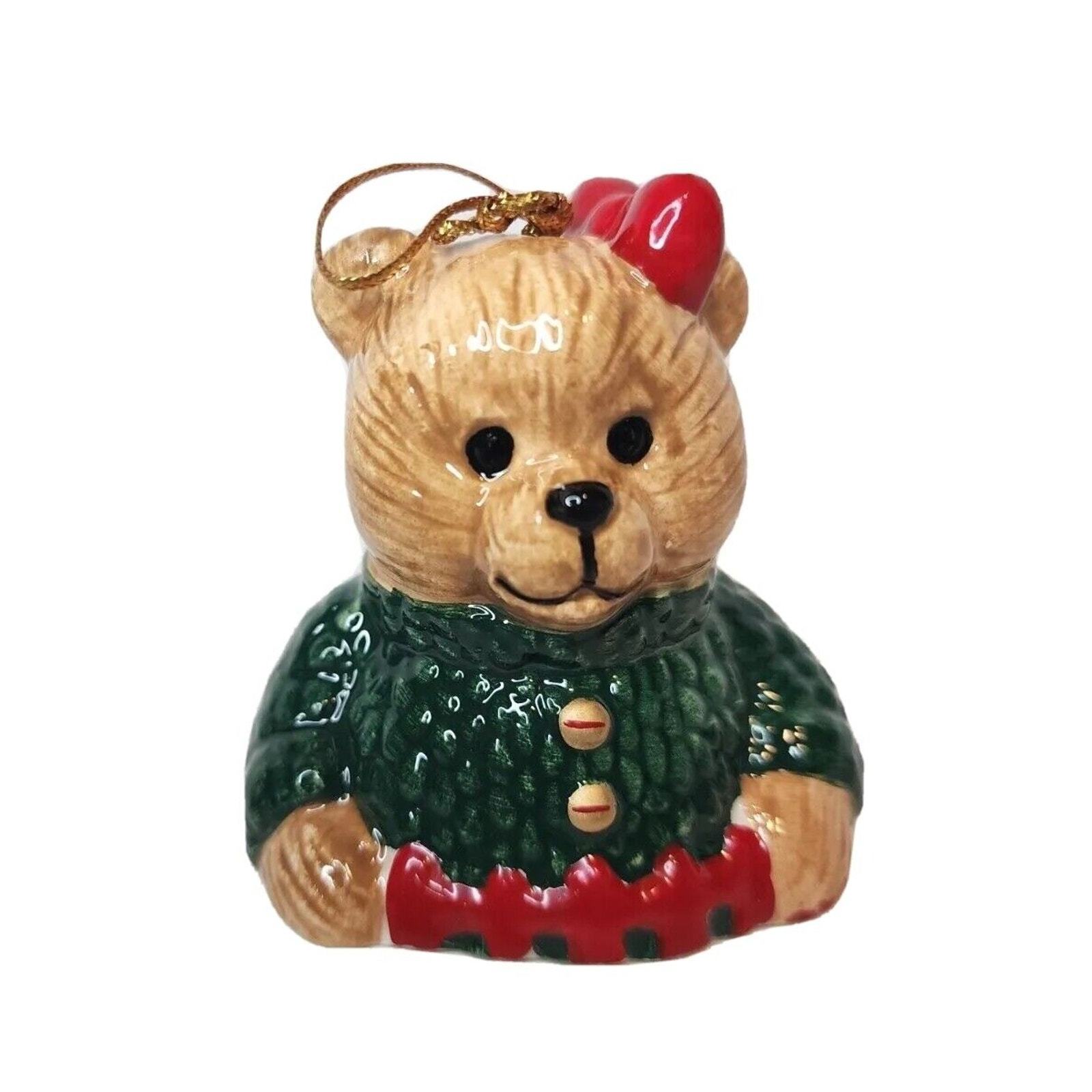 1996 Vintage Christmas Bear Bell Ornaments Set Of 3 Hand Decorated Ceramic Boxed.